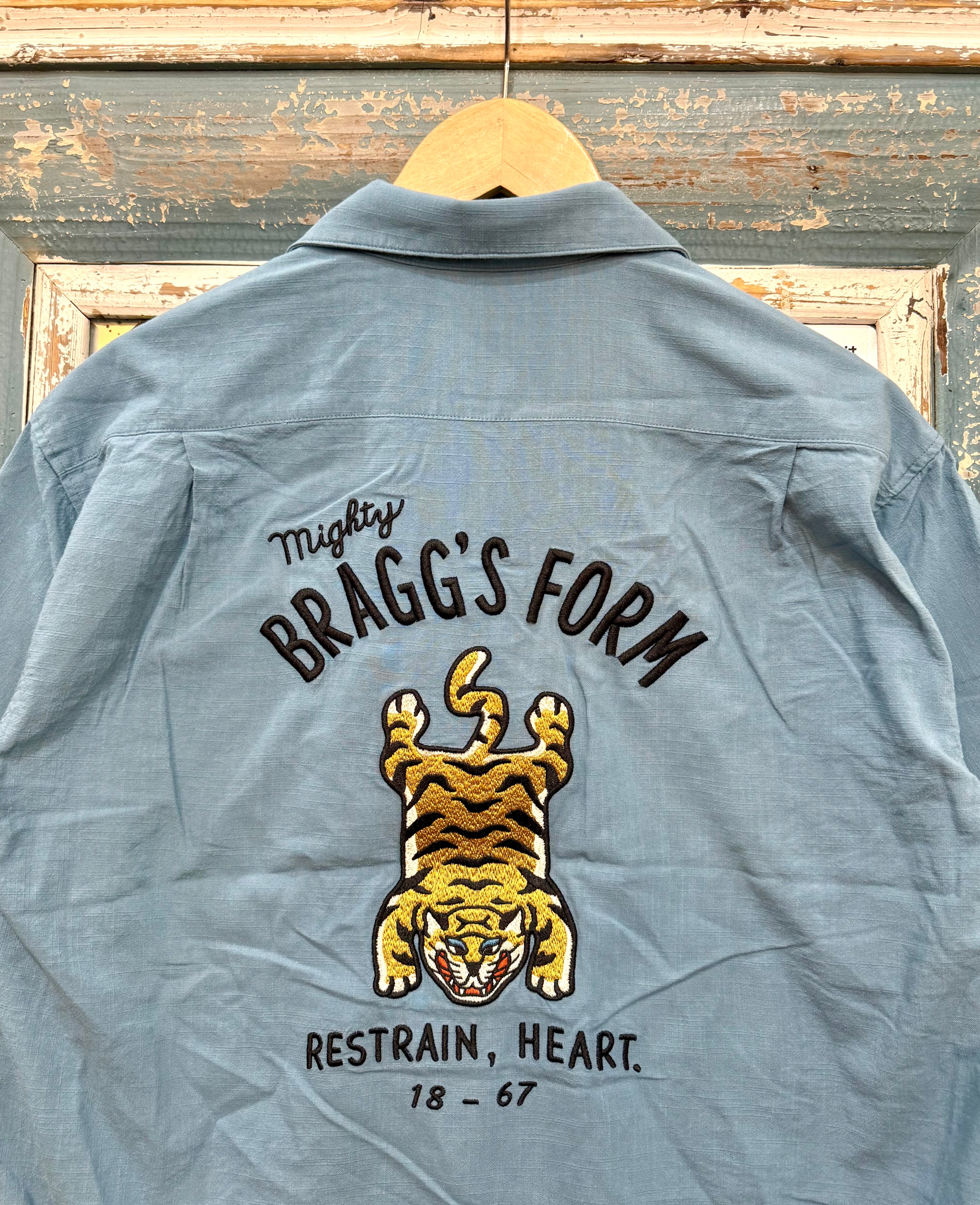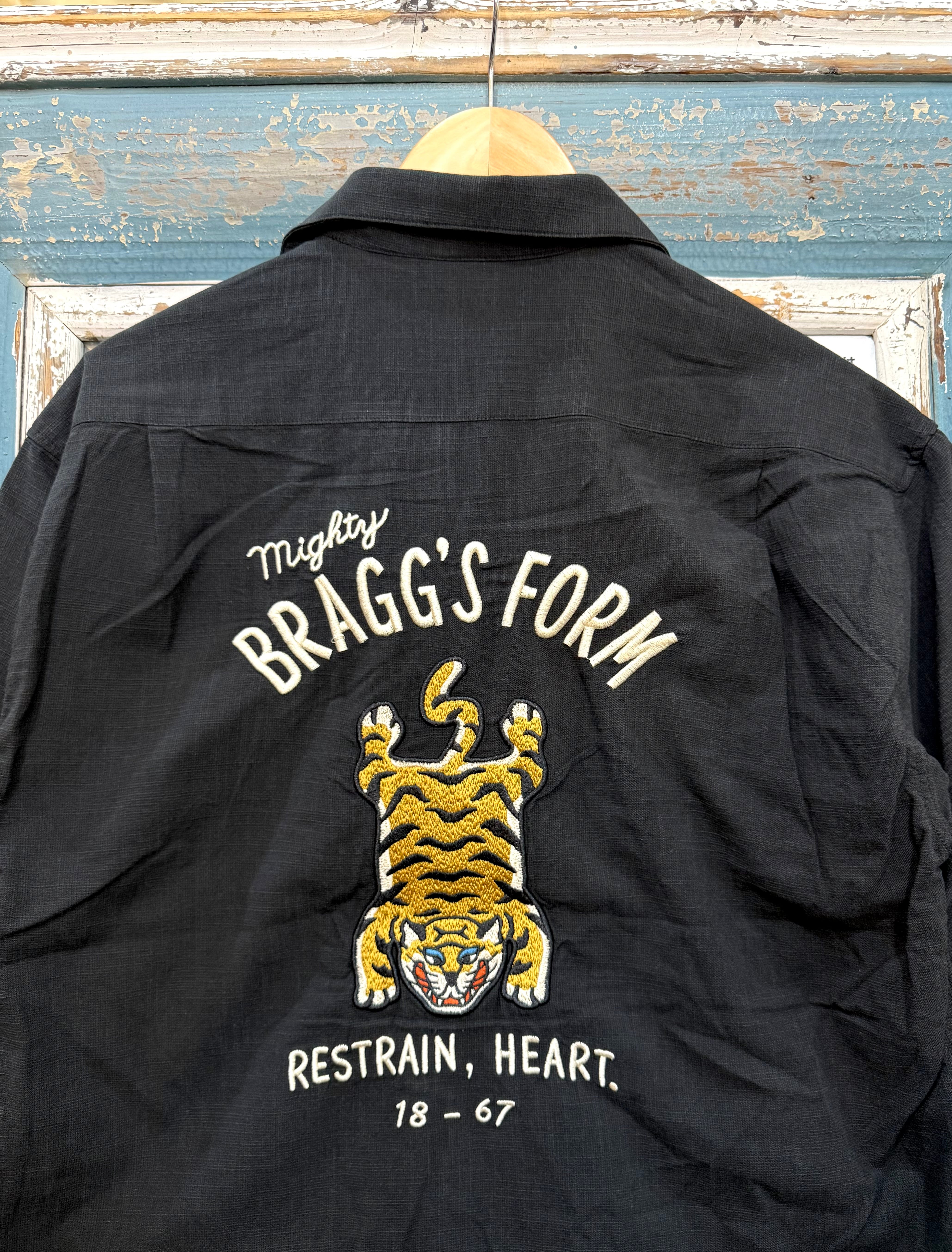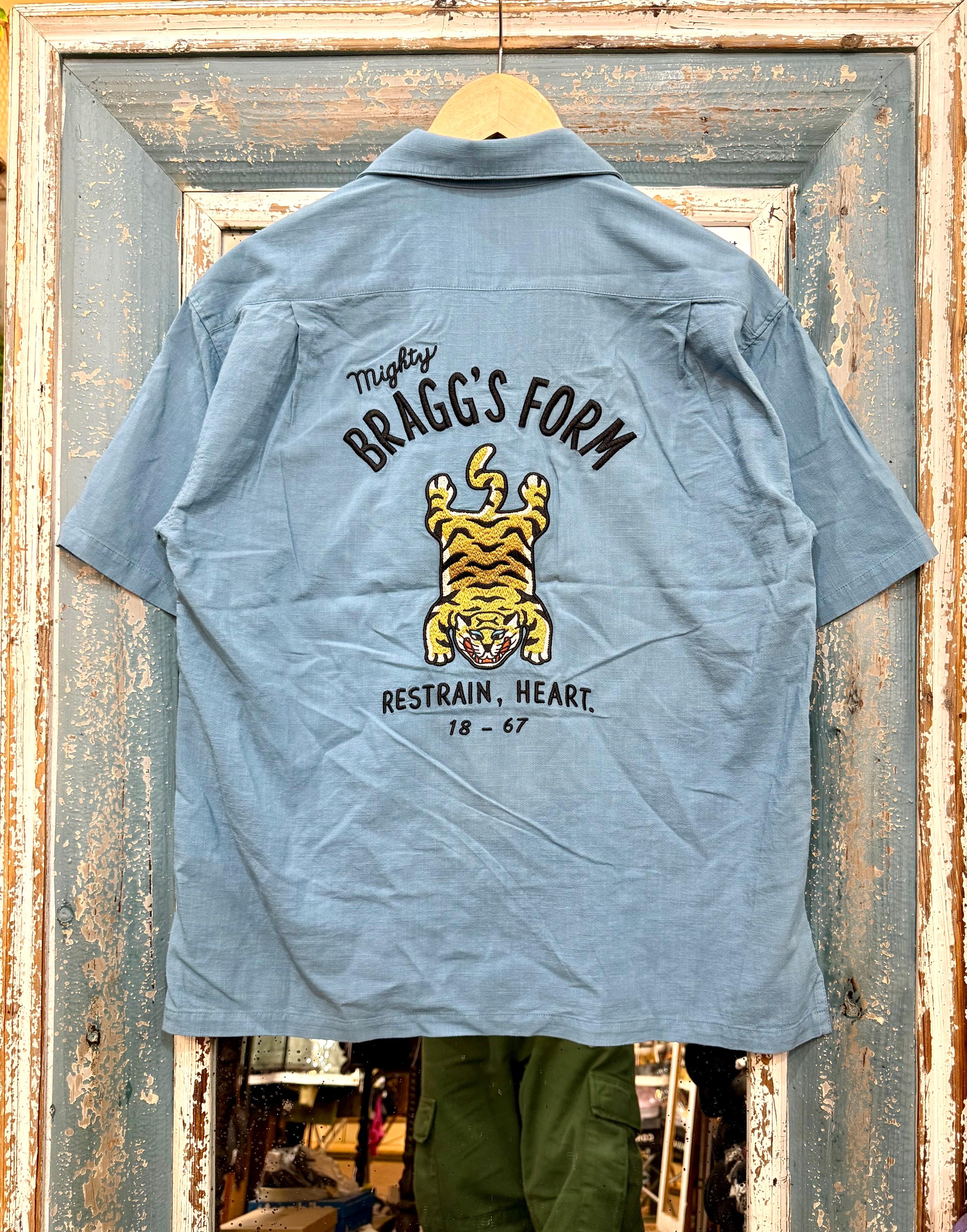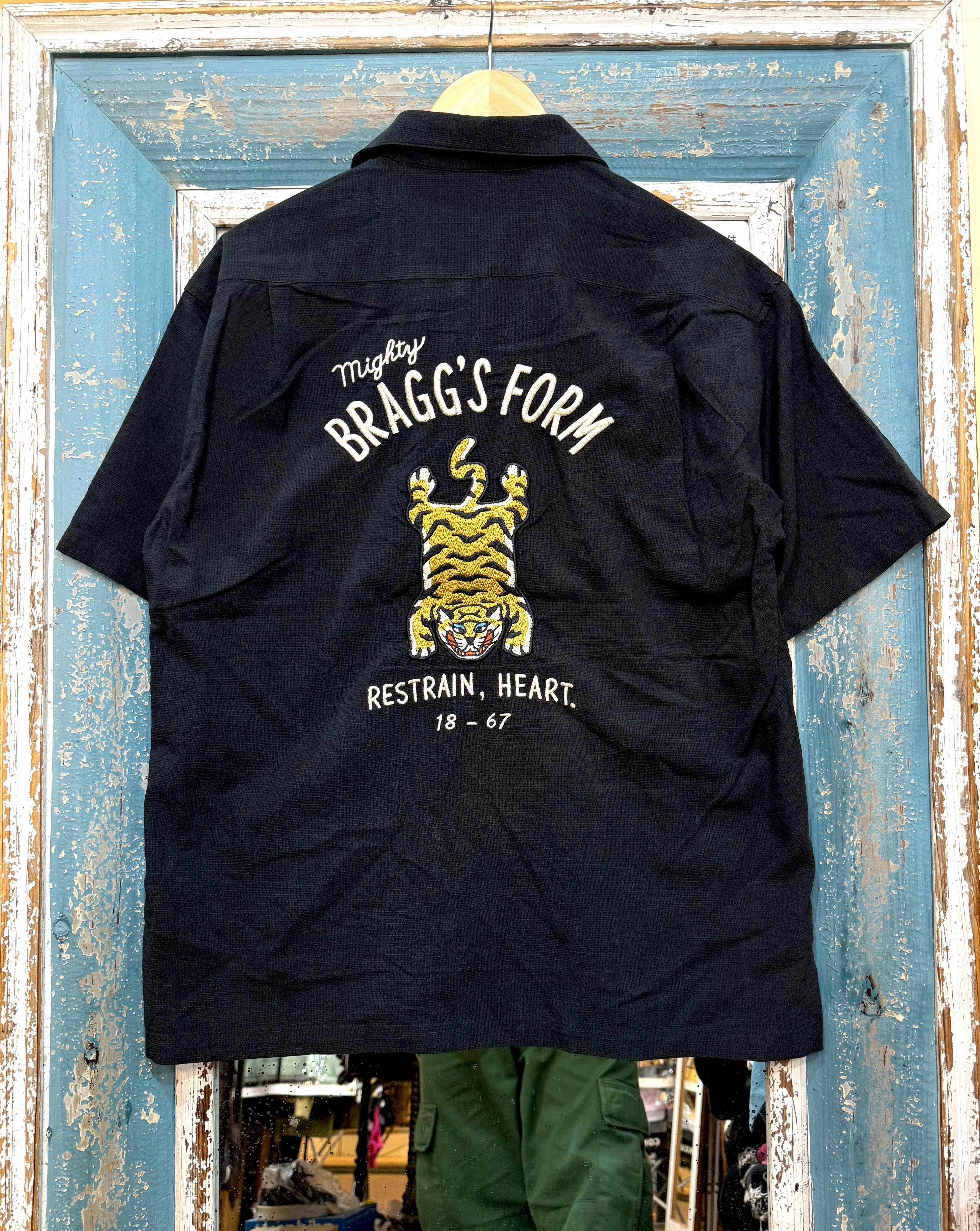 麻ライクな清涼感ある素材を使用したチベタンタイガー刺繍シャツ