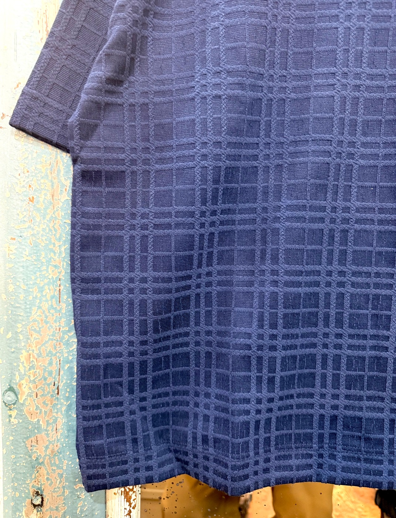 チェック柄フクレジャガードスキッパーポロシャツ