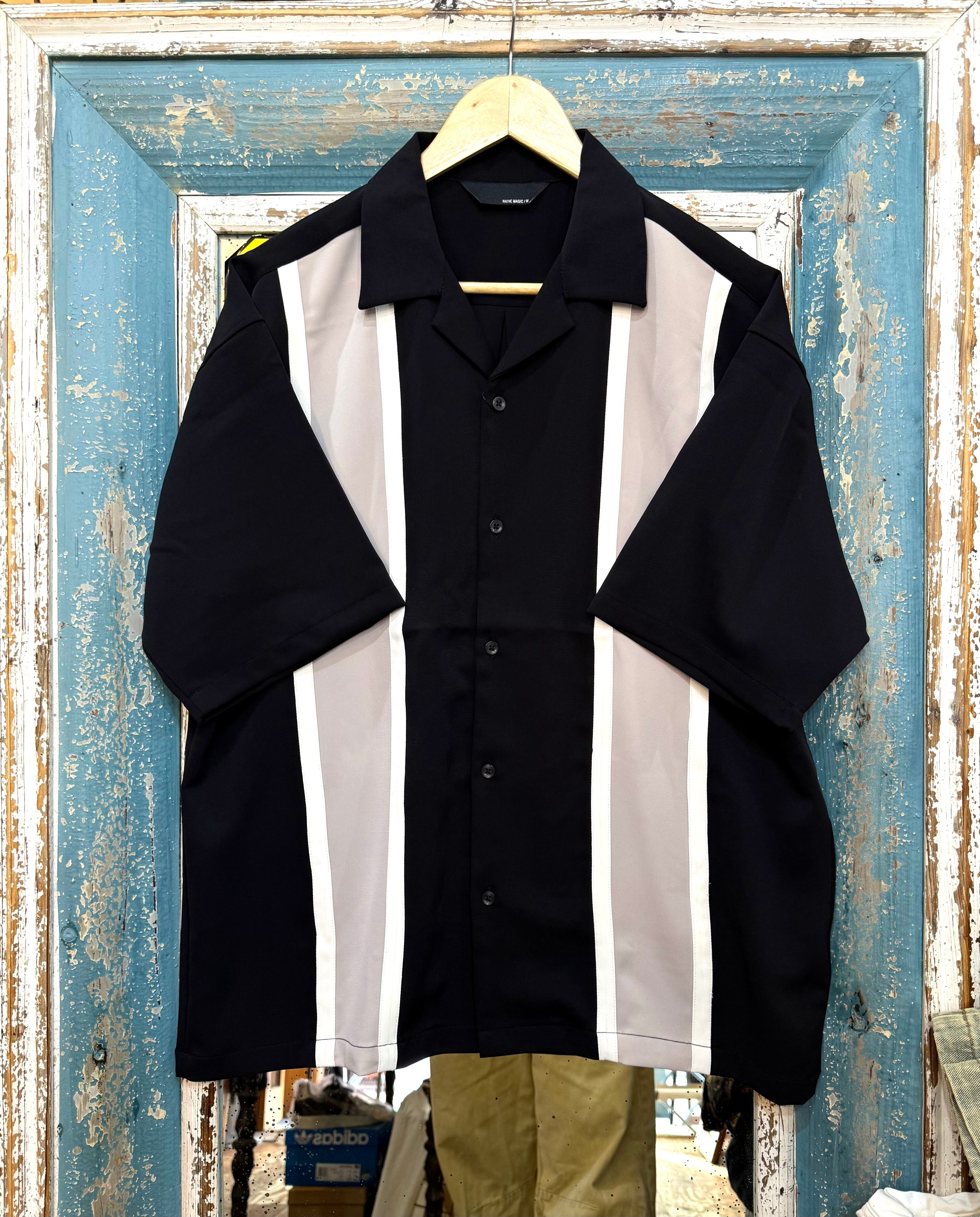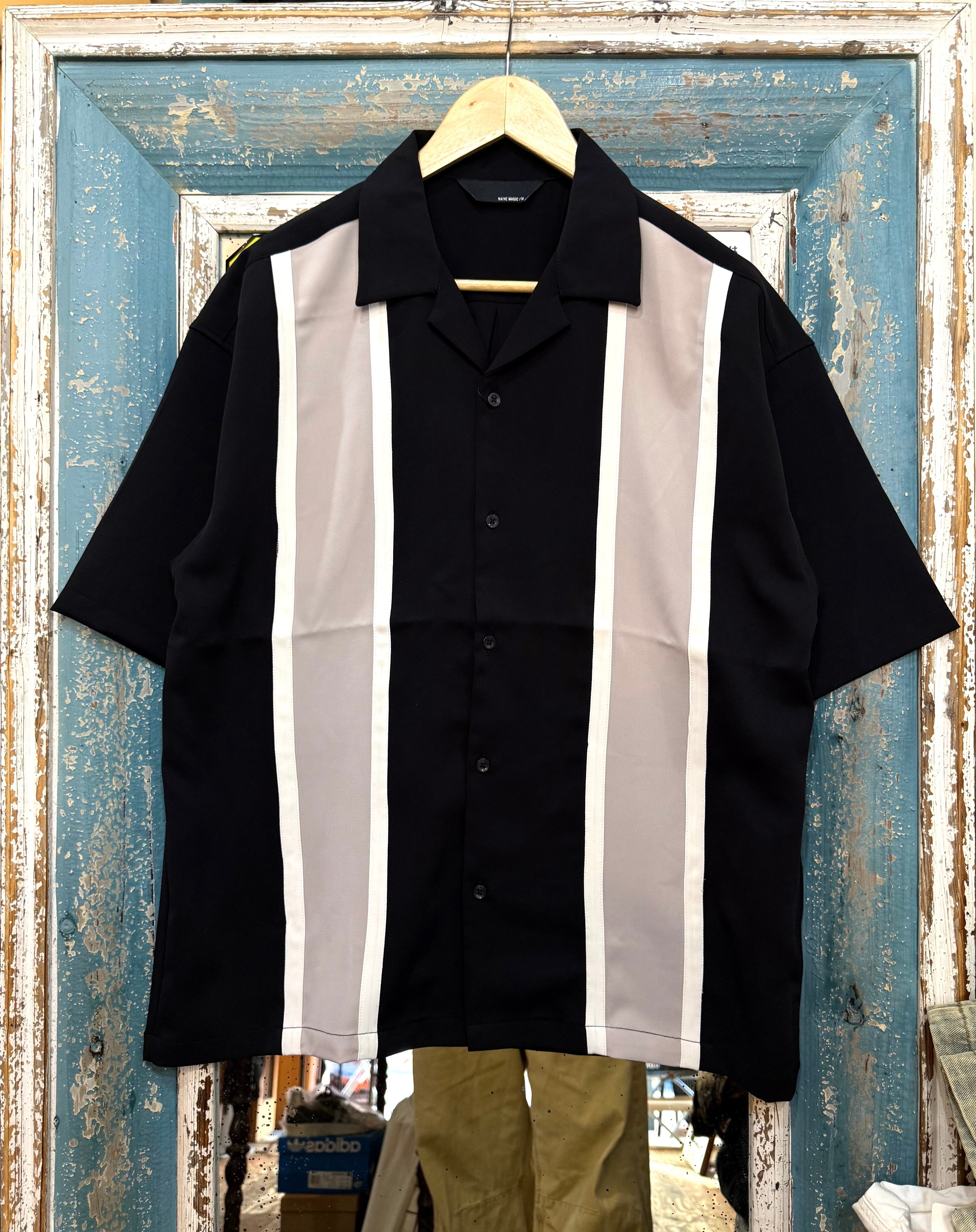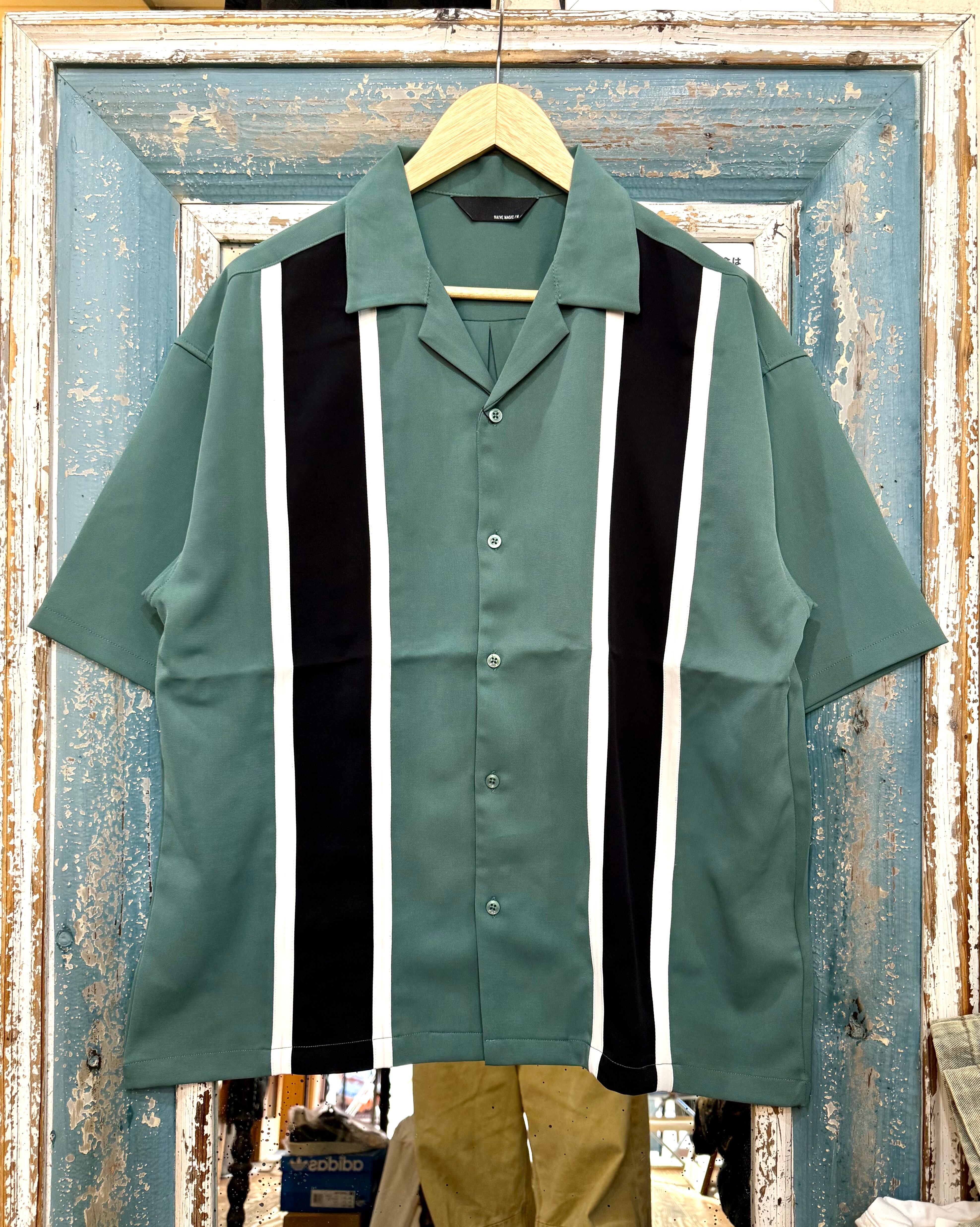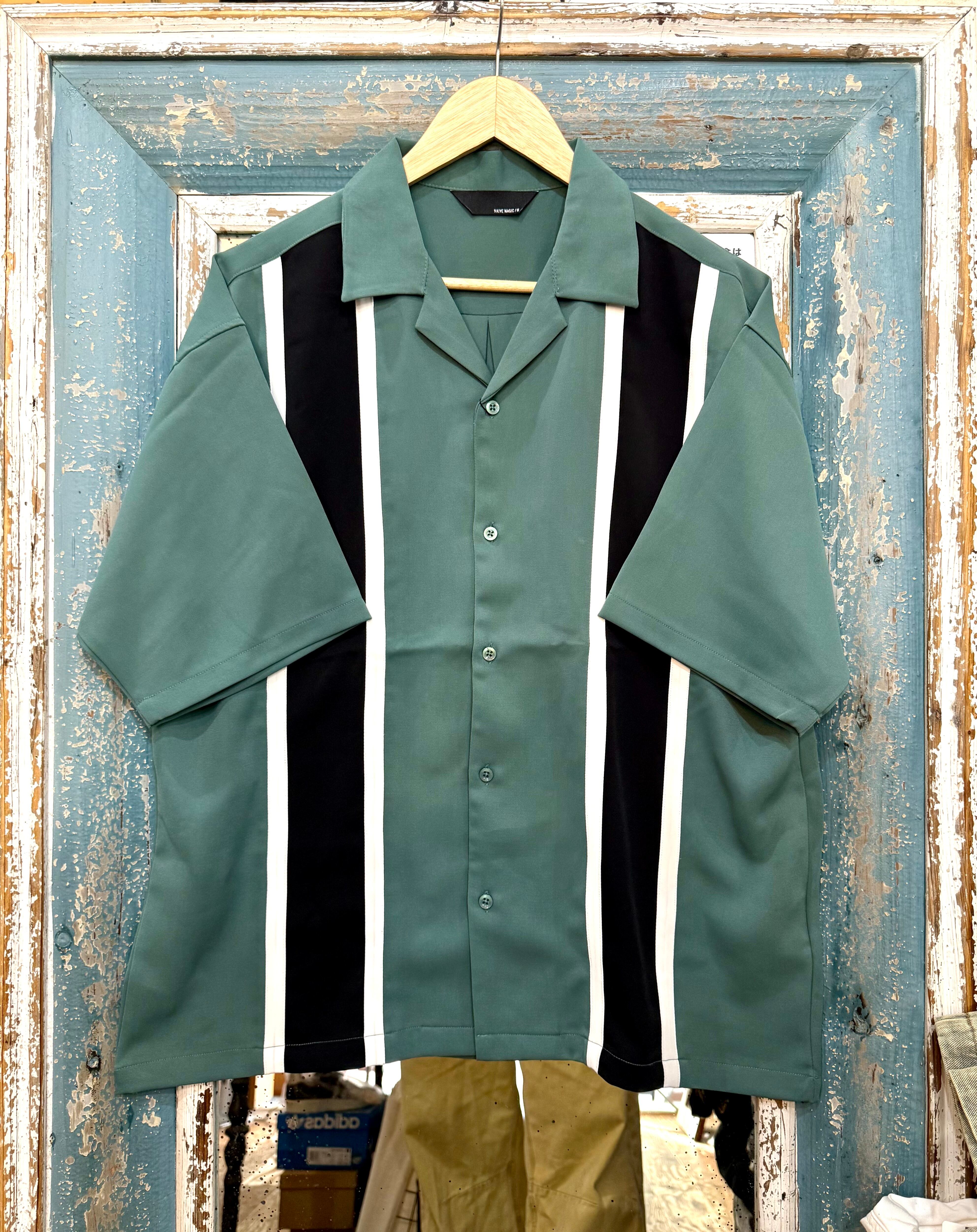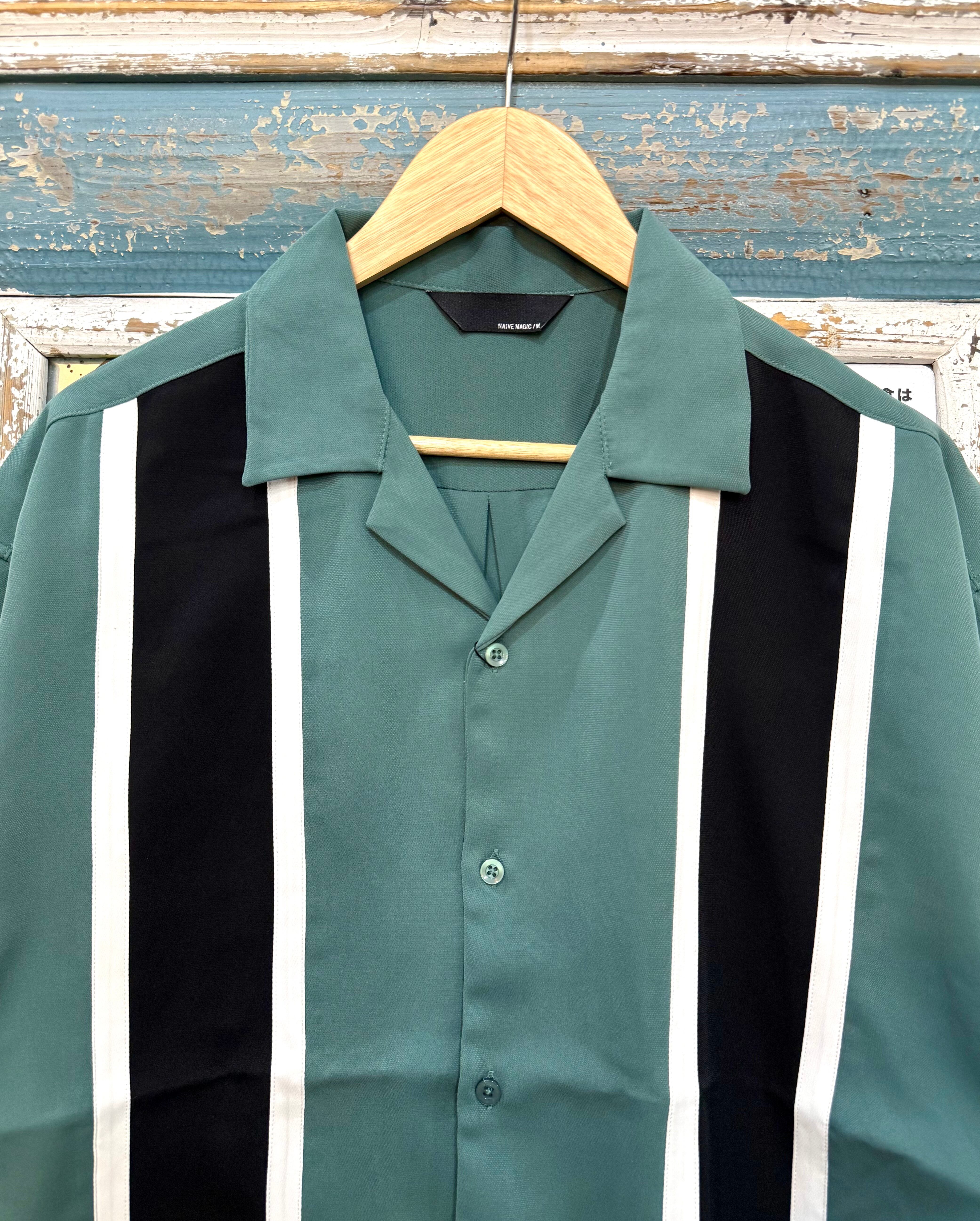 大胆な縦切替、オープンカラーでオシャレを格上げ。
