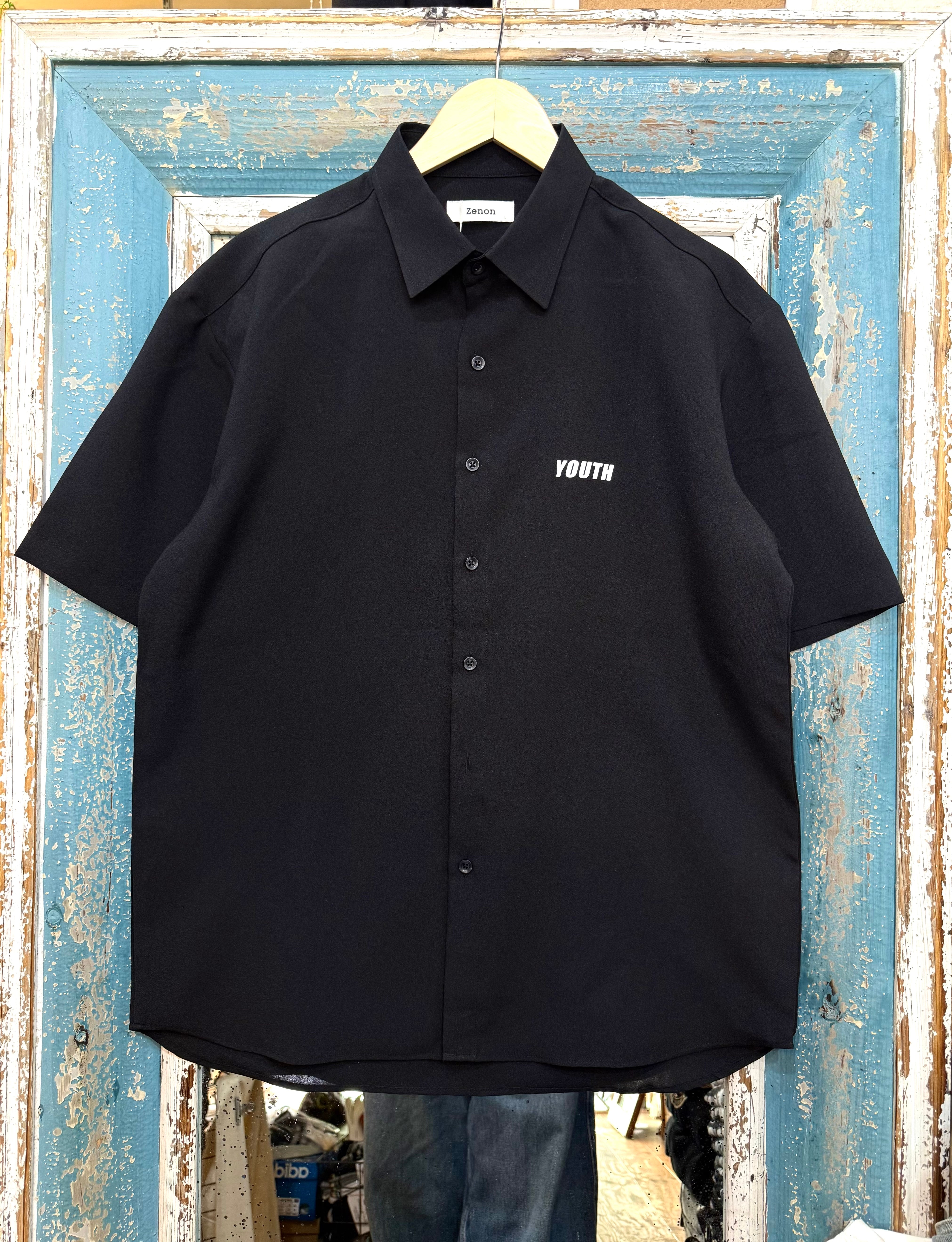 バック ロゴプリント 半袖シャツの登場です!シンプルながらもスタイリッシュなデザインが魅力のこのシャツは、さまざまなシーンで活躍すること間違いなしのアイテムです。