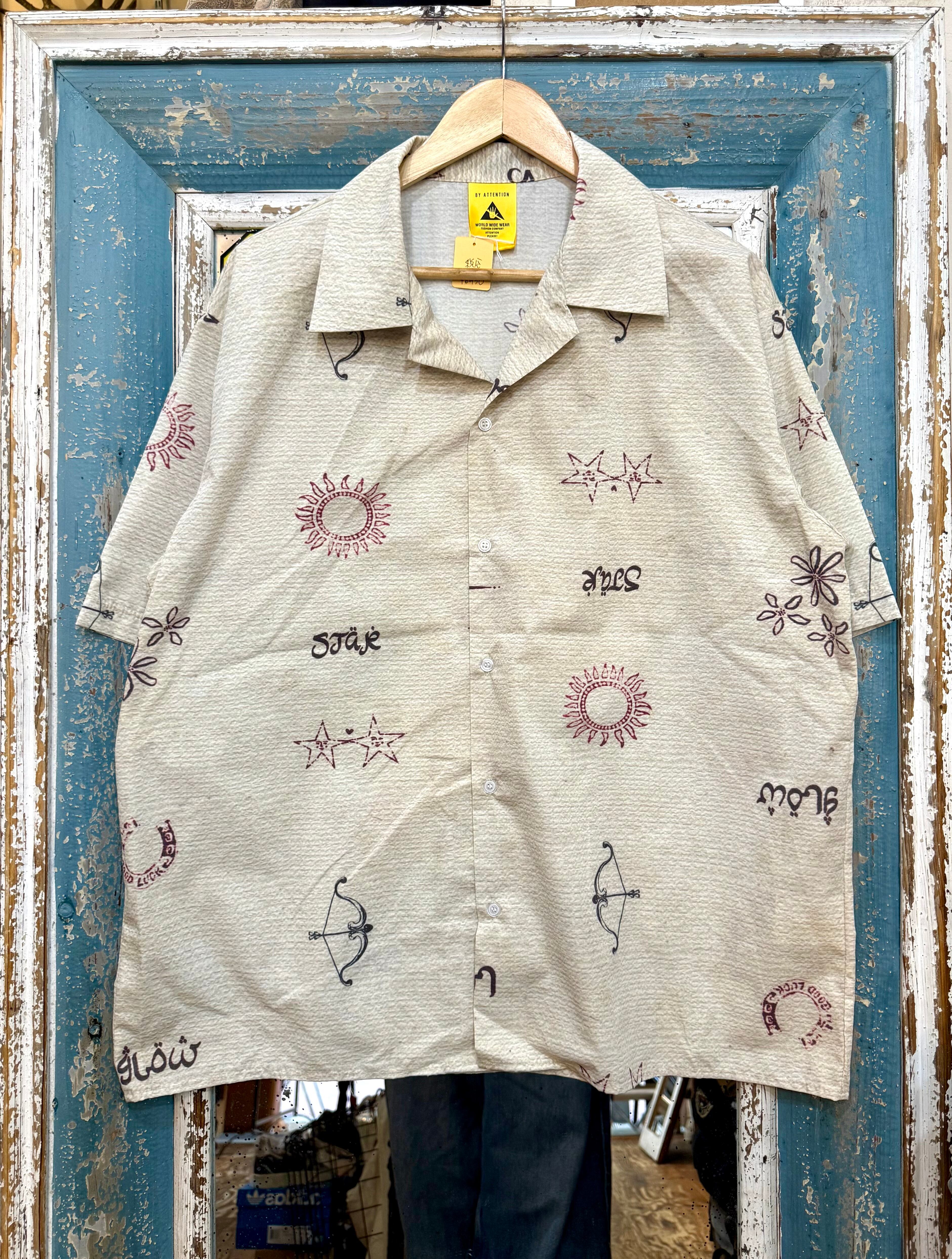 エスニック柄 半袖シャツの登場です!独特のエスニック総柄が魅力のこのシャツは、さまざまなシーンで活躍すること間違いなしのアイテムです。