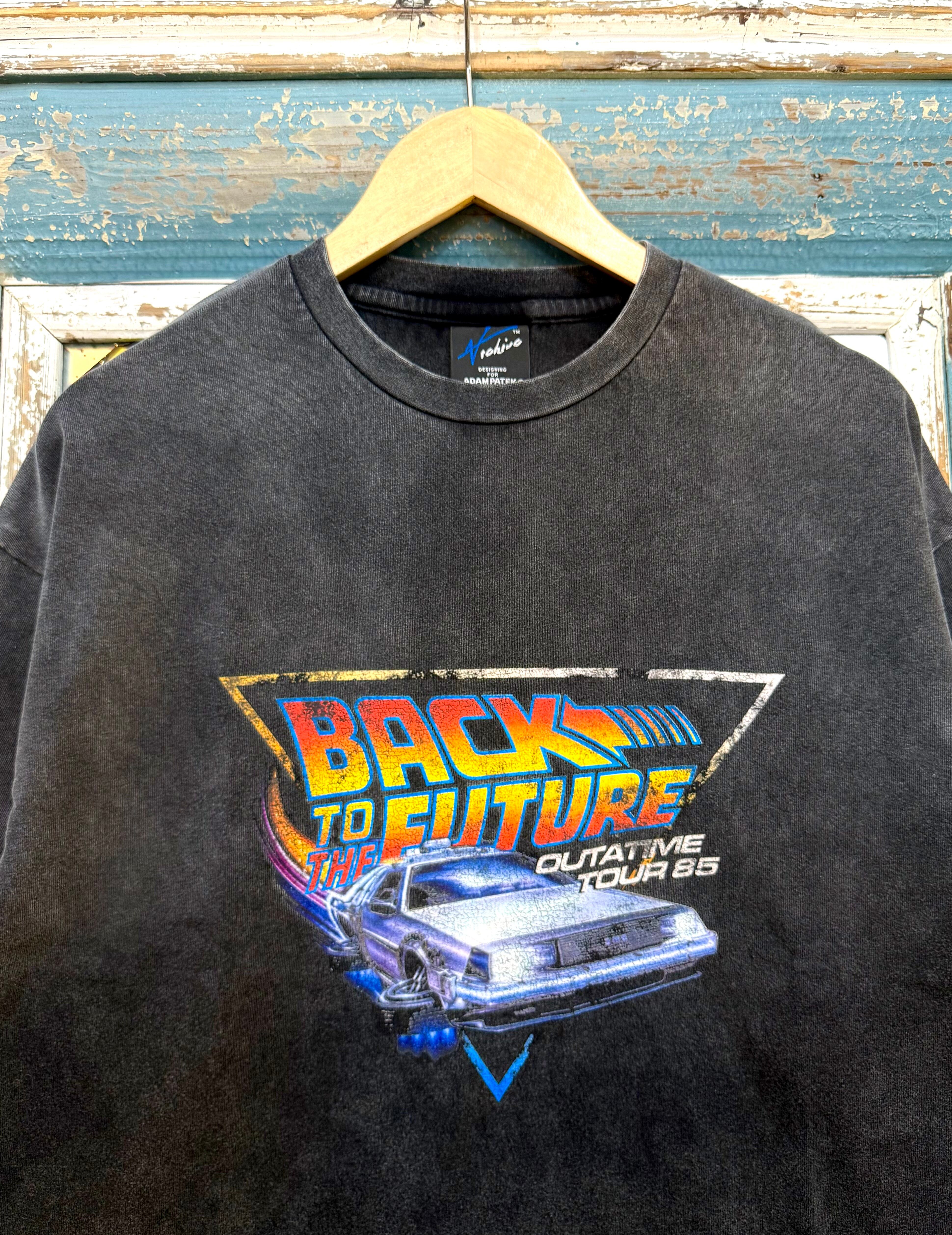 劇中に登場するデロリアンをモチーフにヴィンテージライクに拘ったプリント手法やエイジング加工を施した特別な仕様。