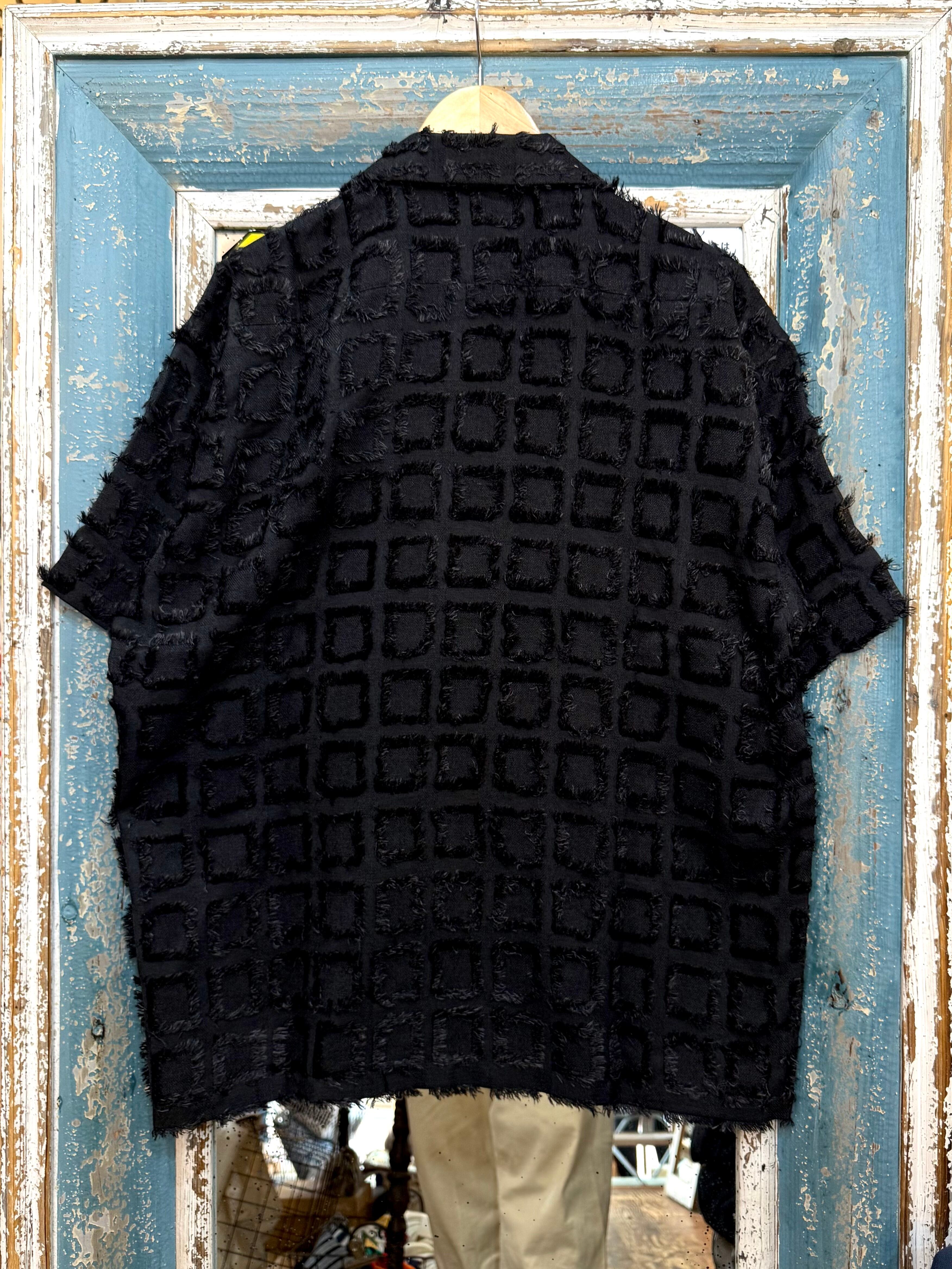 毛足のあるフリンジジャガード半袖シャツフリンジが目を惹く華やかな1枚ゆるっと着れるシルエットがこなれ感のある仕上がり。