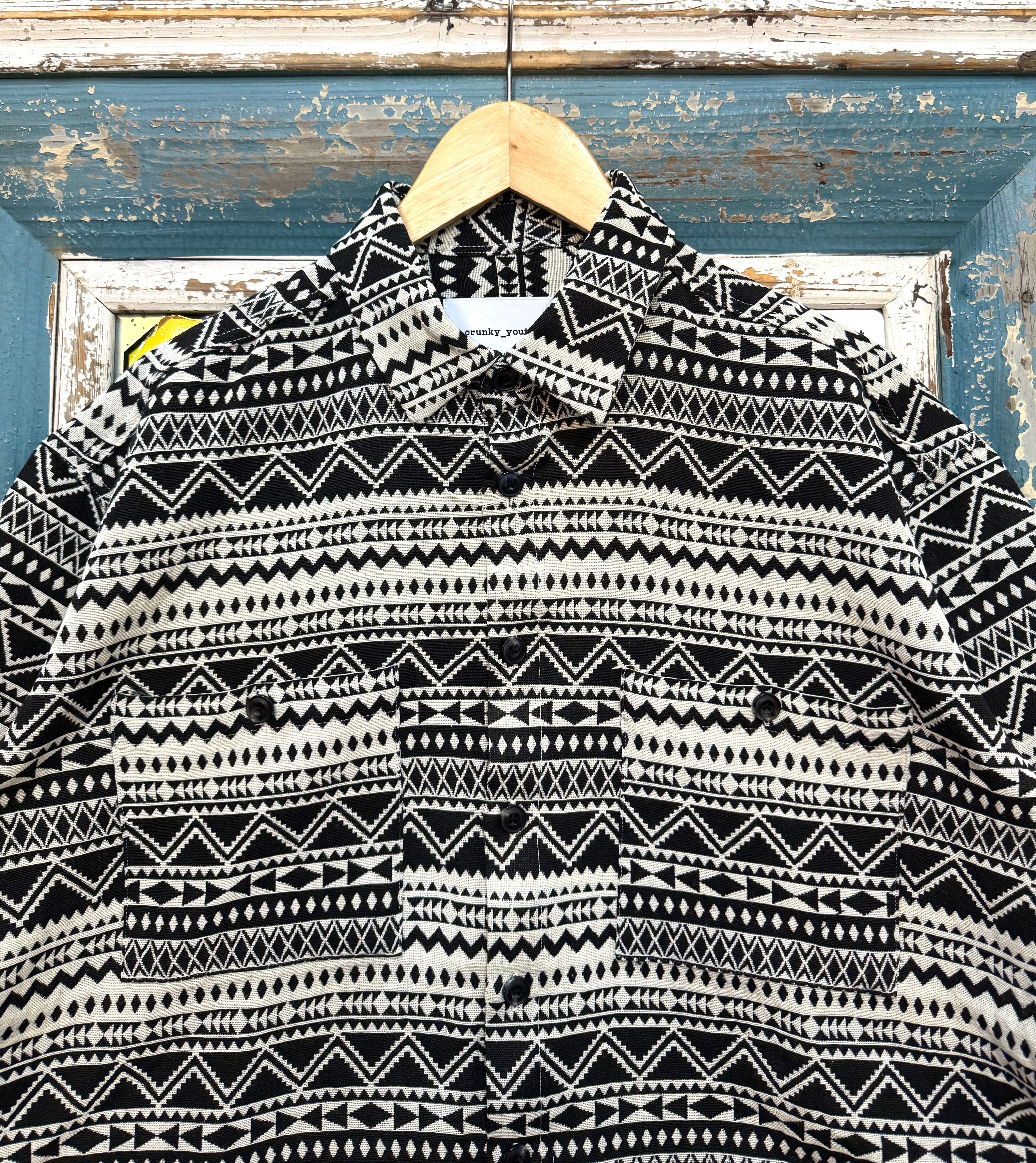 今季注目のクロップド丈エスニック柄シャツが入荷しました!個性的なデザインが、ワイドなボトムスと絶妙に調和し、今年らしいシルエットを引き立てるアイテムです。このシャツはカジュアルな日常のコーディネートはもちろん、特別な日のお出かけにもぴったり。スタイリングを楽しむあなたに、新しいスタイルを提案する一品です!