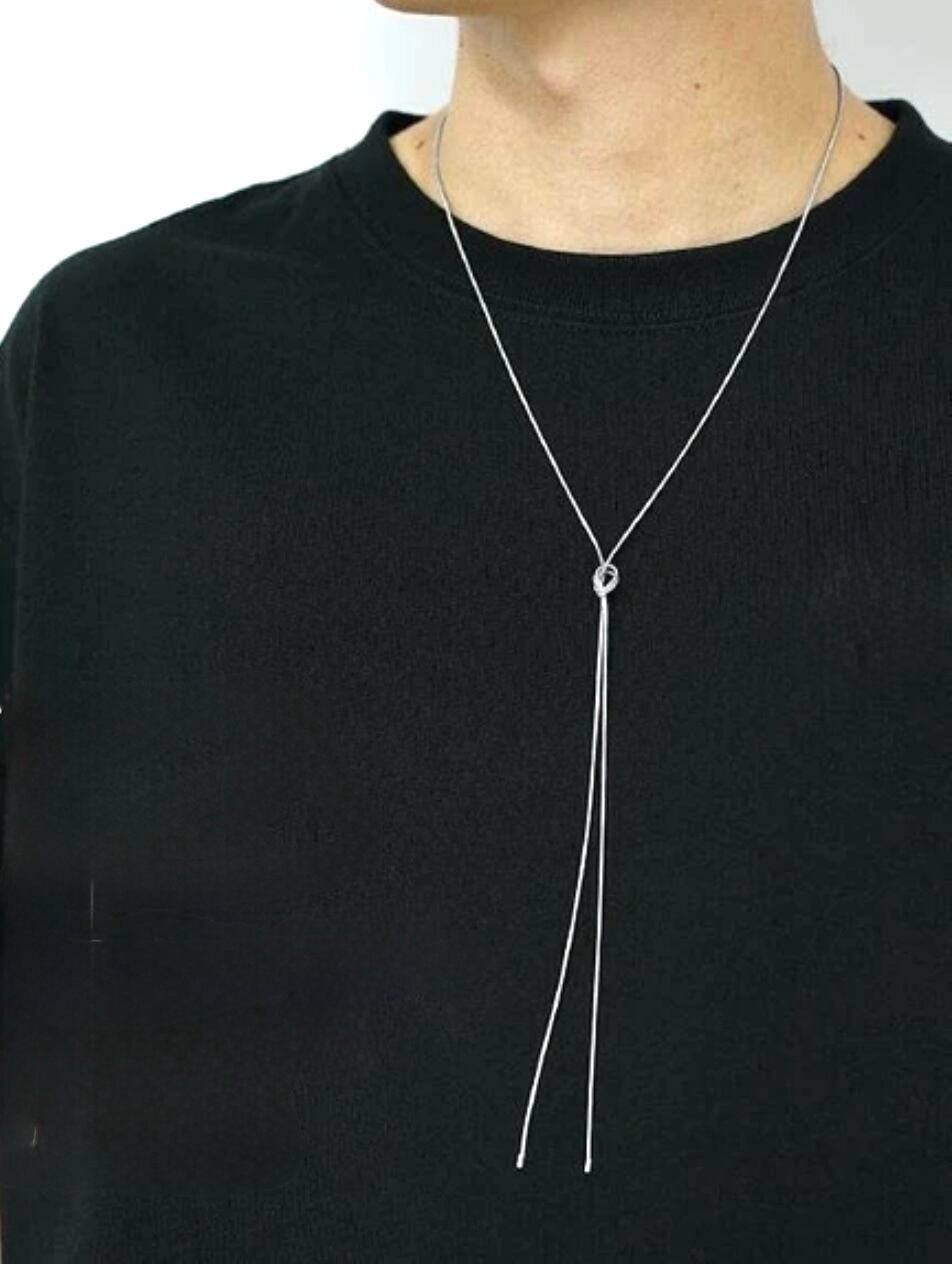 ネクタイのような首元で締めても、トップを下げて付けても格好良くまとまり、お好みや気分でスタイルを楽しめるアイテムです