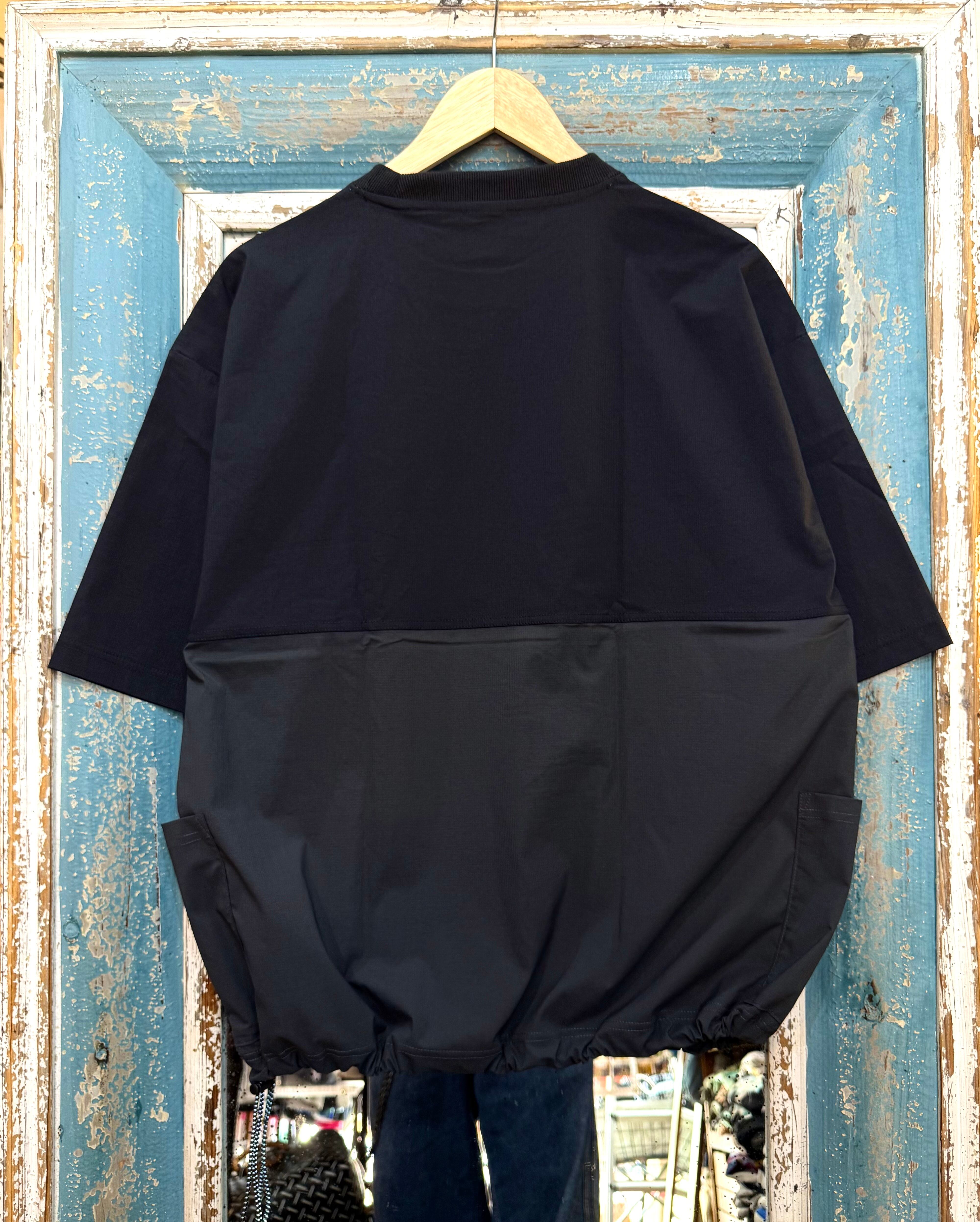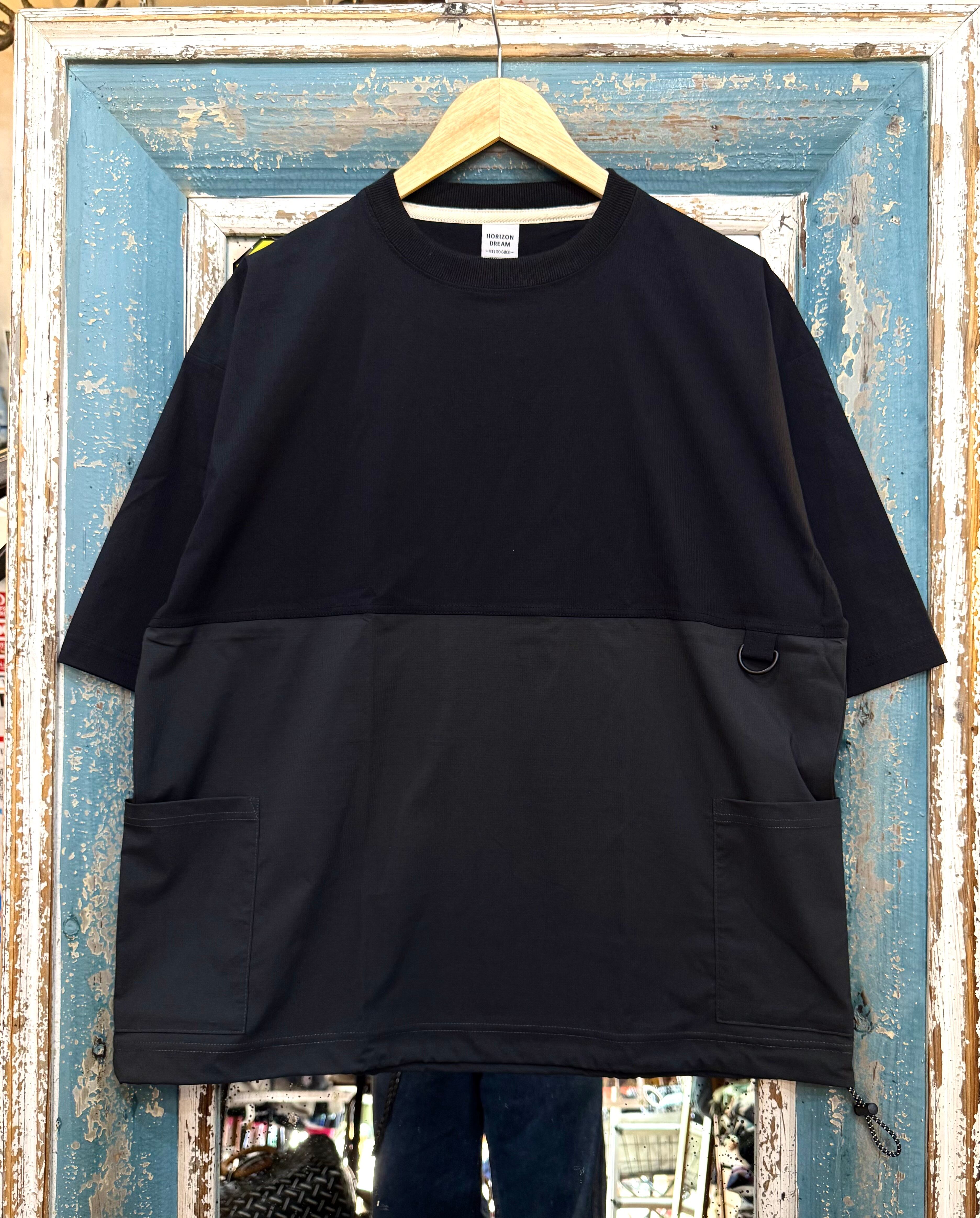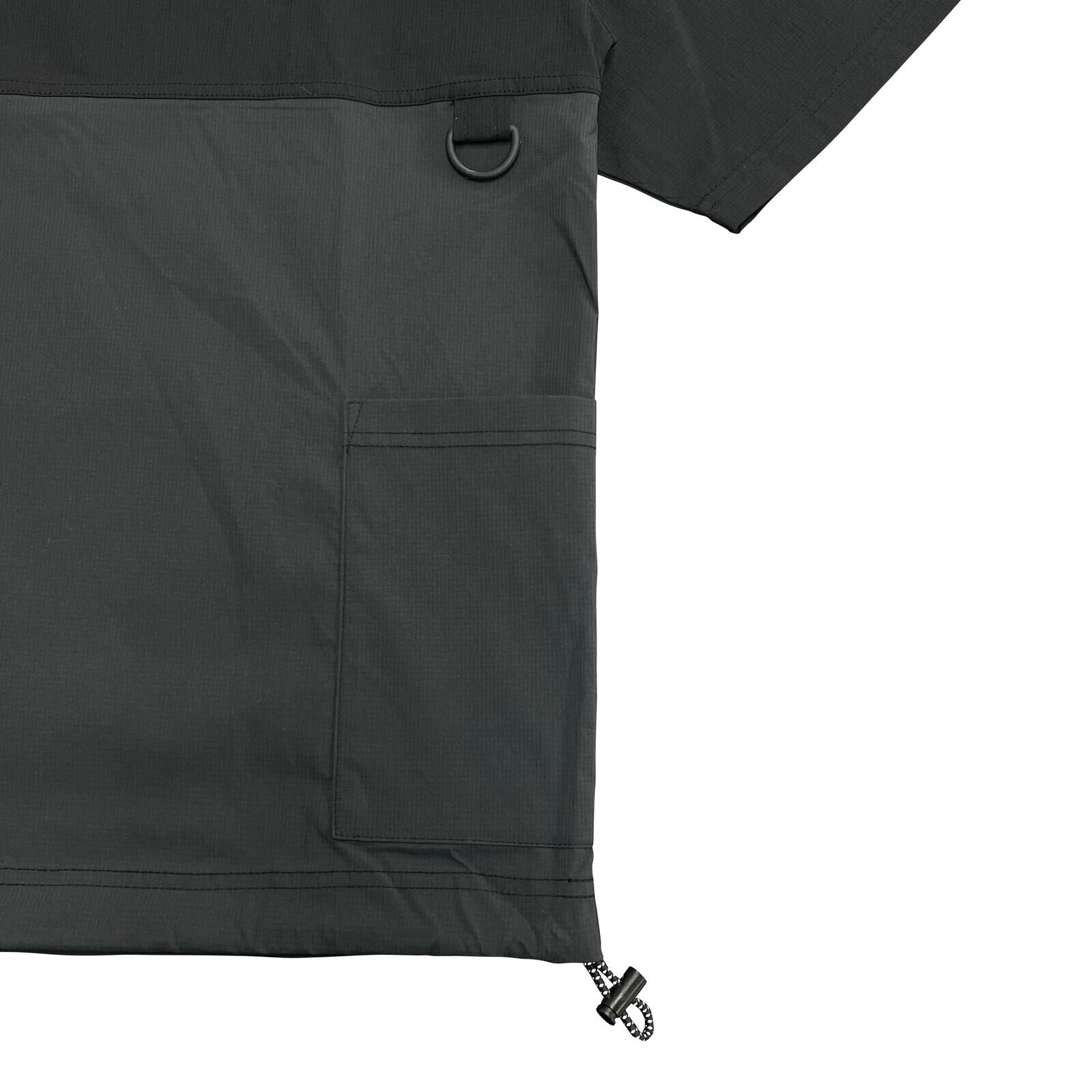 特にアクティブな動きに対応できるため、アウトドアやスポーツなどの活動にぴったりです。4Dリップストップは、縦横のストレッチ性を持ち、動きやすく快適な着心地を提供します。また、サイドに配置された大きなポケットは、実用性が高く、スマートフォンや小物を収納するのに便利です。ポケットはデザイン性を損なうことなく機能性を持たせており、カジュアルなアウトドアスタイルにぴったりです。さらに、TシャツのディテールにはDリングが使用されており、これがさりげないアクセントとなっています。このDリングは、カラビナやキーリングを取り付けることができ、アウトドア活動やちょっとしたアクセサリーの取り付けにも便利です。全体的に、機能性とデザインが融合したアイテムで、アウトドアや日常のカジュアルシーンで活躍する一枚です。高機能でありながら、シンプルで洗練されたデザインが特徴的なため、普段使いにも非常に適しています。