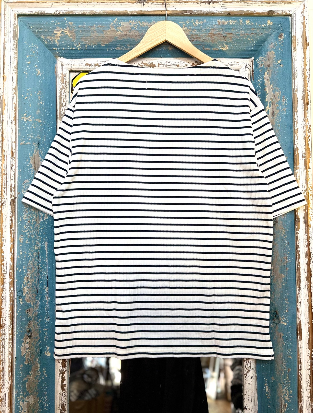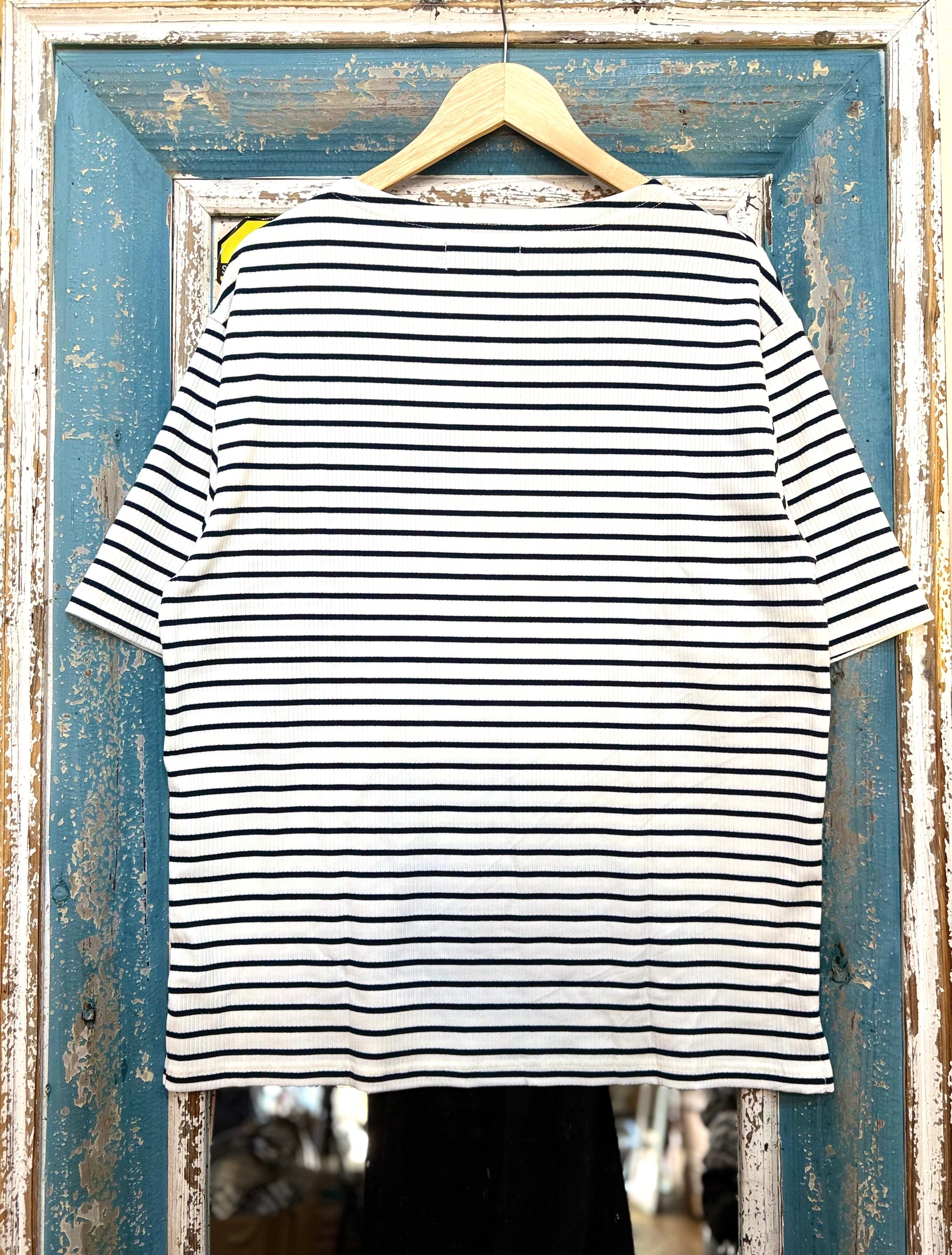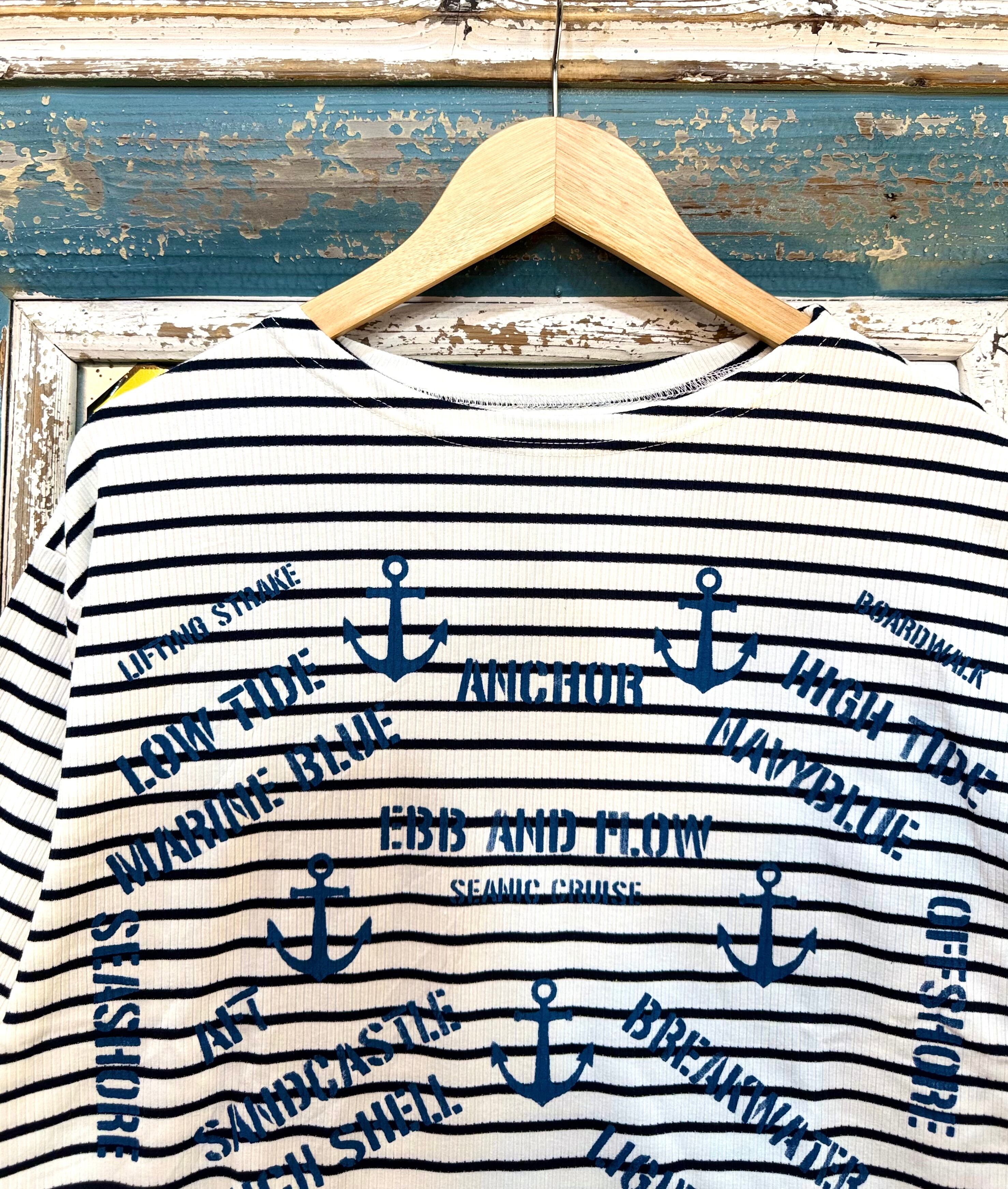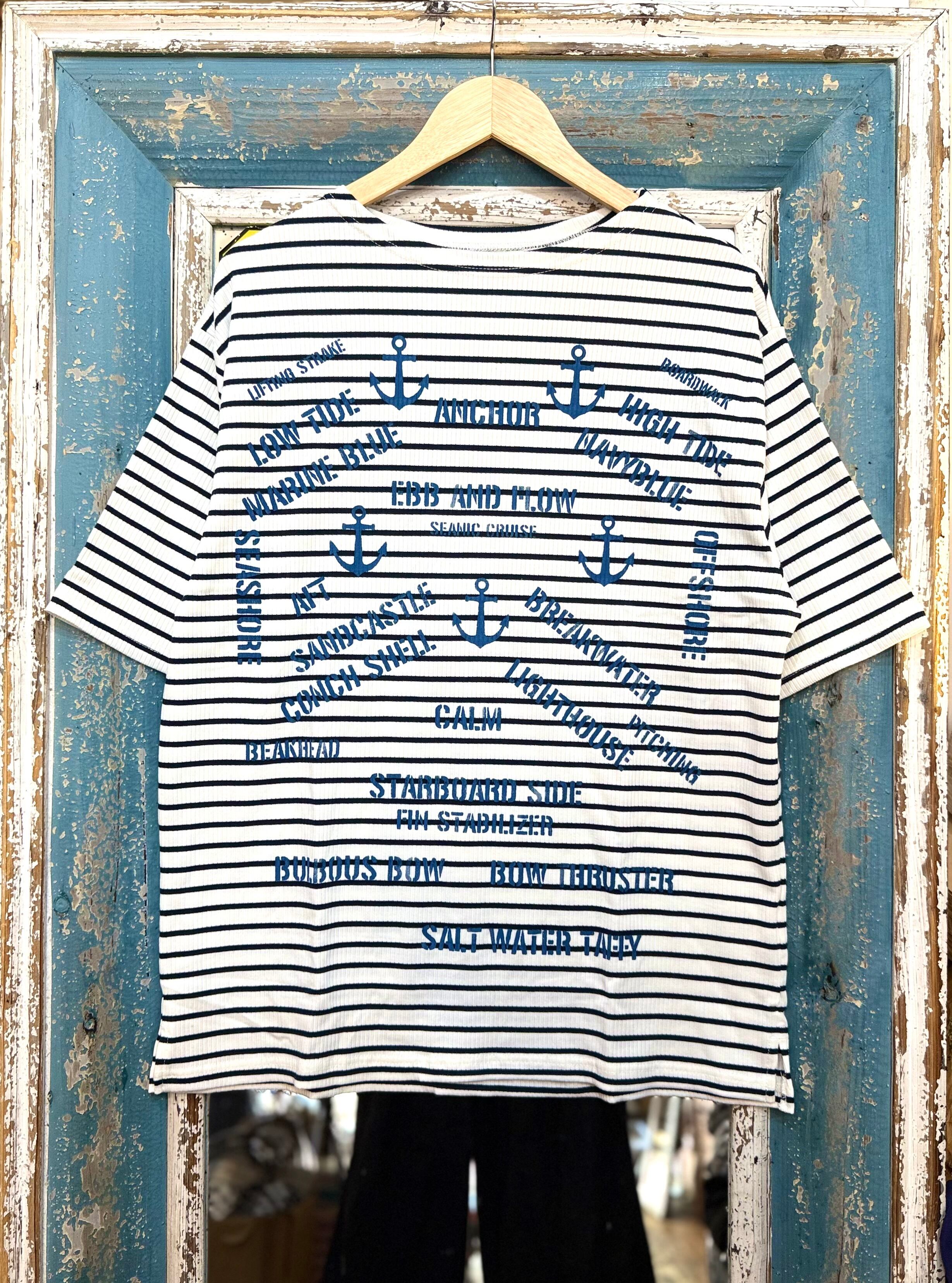 【Many men many minds】メニーメンメニーマインズ/ルーズシルエットテレコリブボーダーマリンプリントボートネックTEE