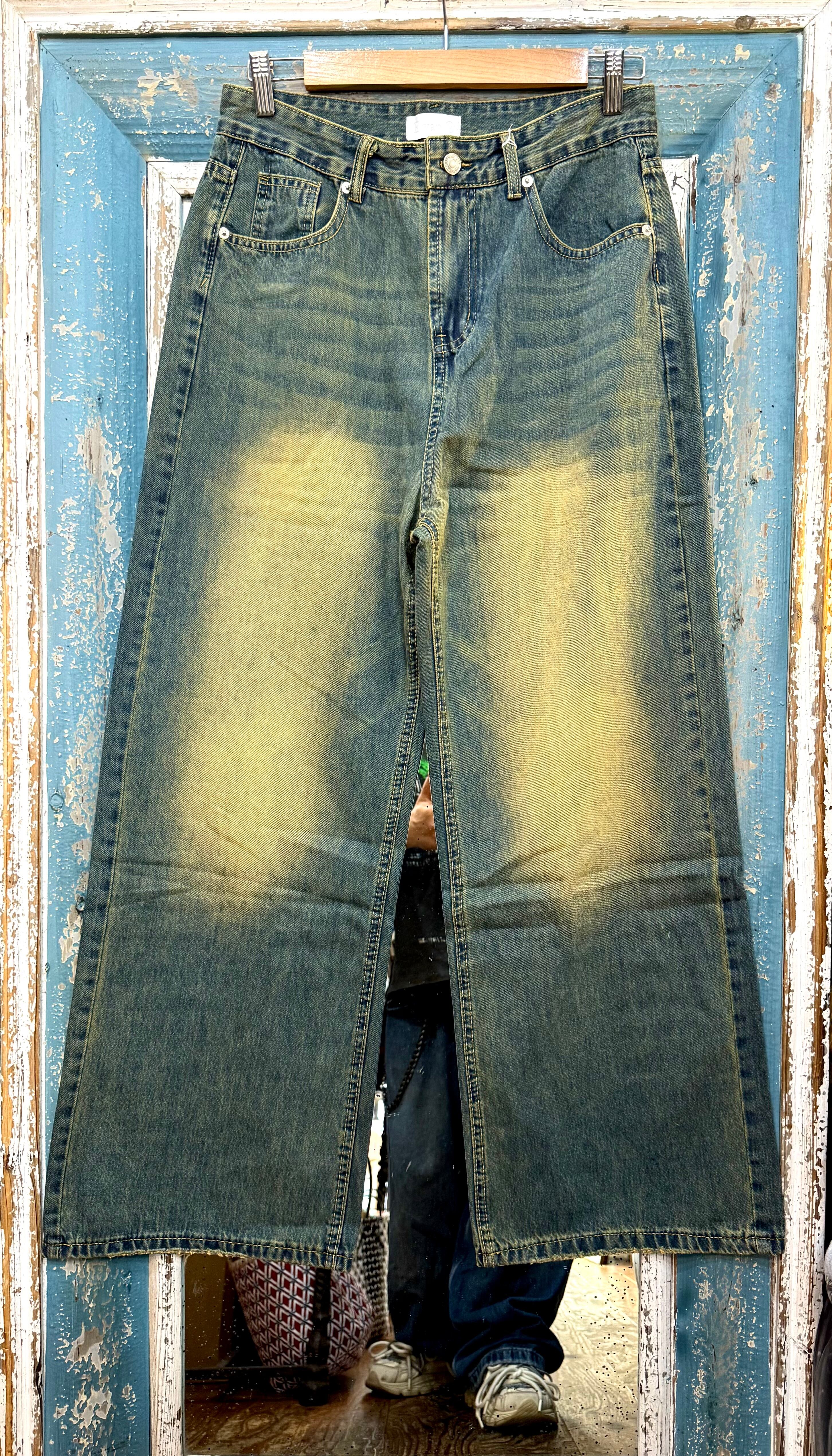 サンドウォッシュされたカラーとワイドなシルエットが特徴です。