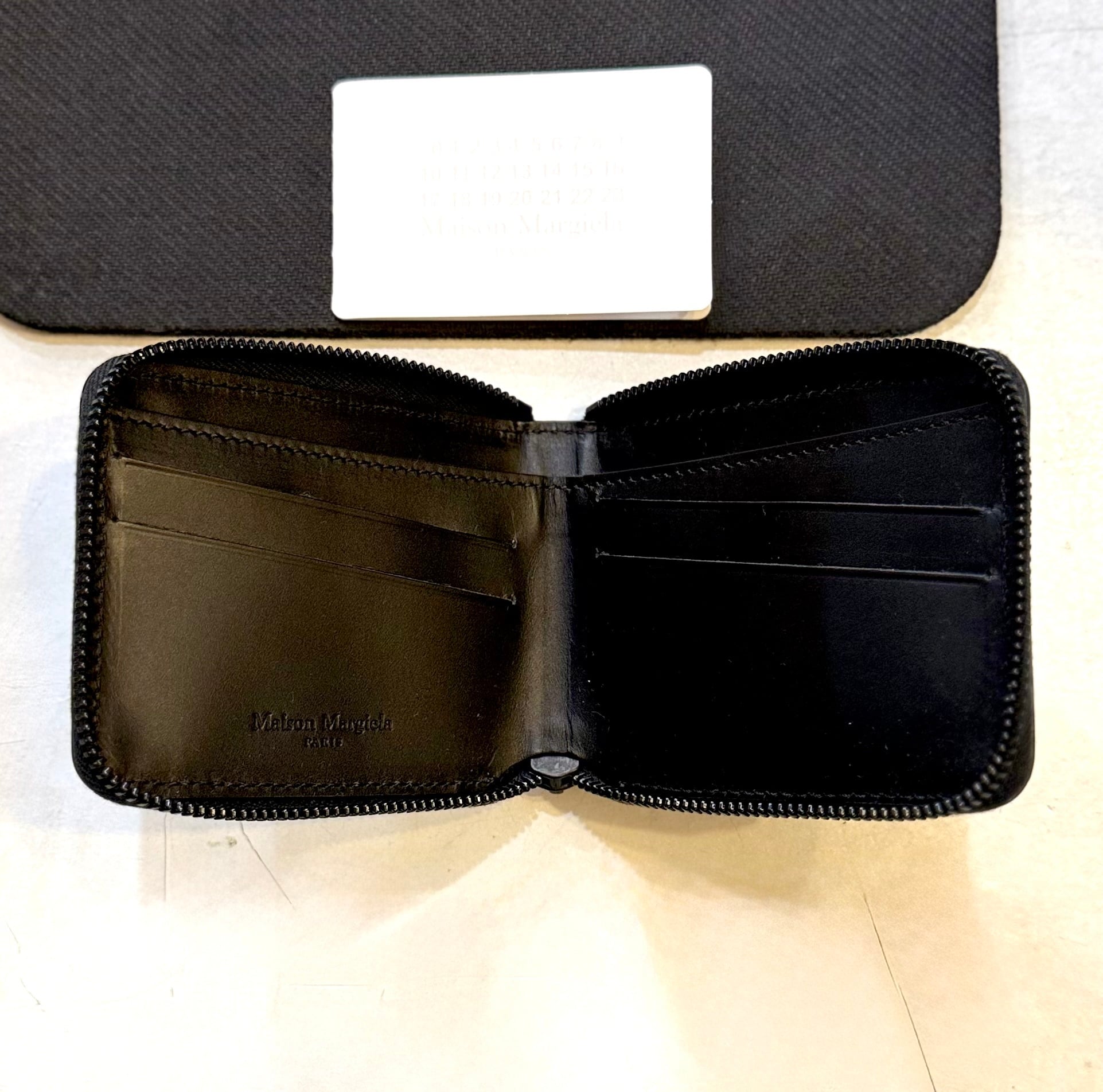 Maison Margielaの二つ折ファスナー付き財布が登場です!海外より厳選して買い付けされたこのアイテムは、エレガントさと実用性を兼ね備えています。こちらの財布の最大のポイントは、アイコンの刺繍。シンプルながらもエレガント、存在感があり、他では味わえない特別感を演出しています。
