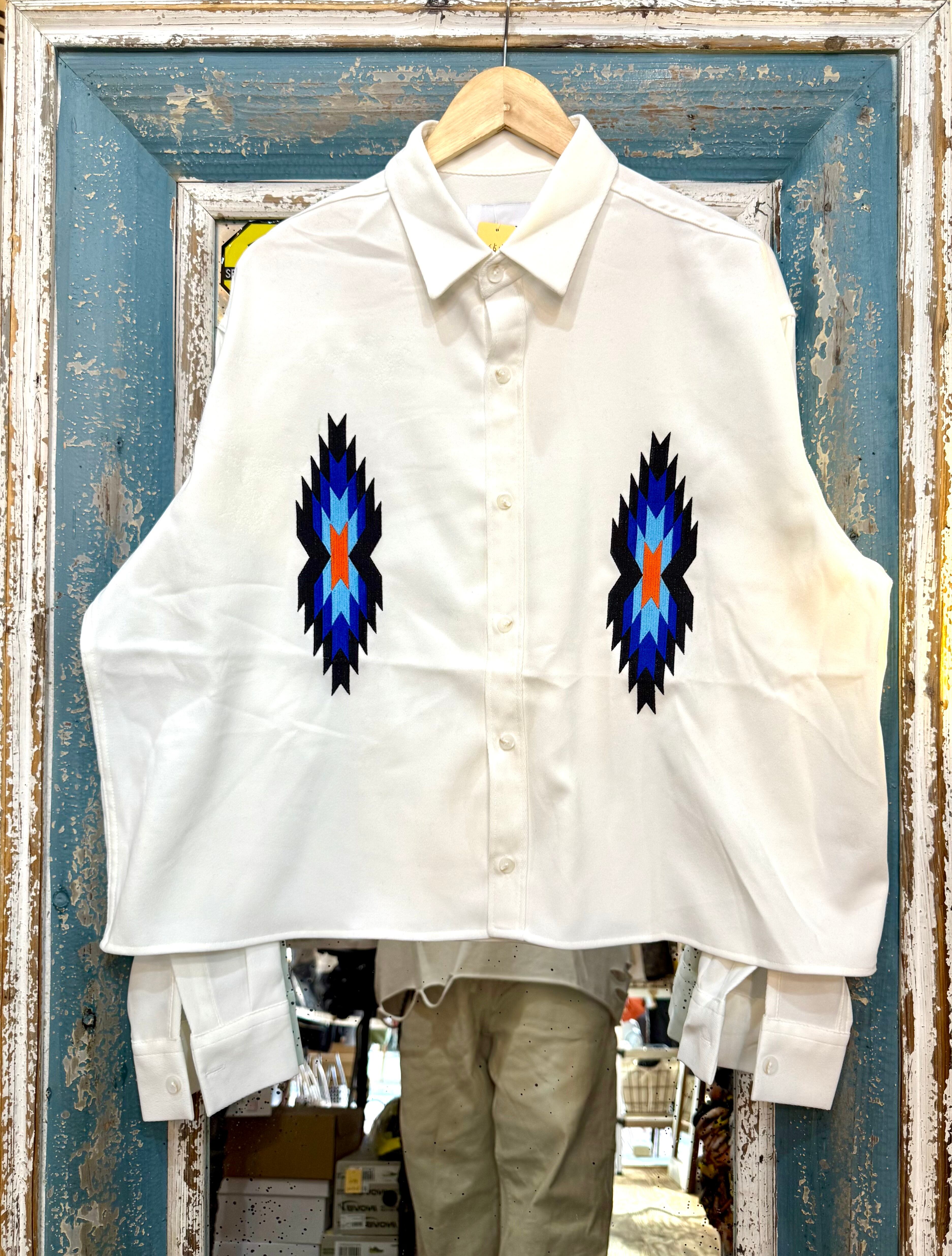 【オルテガ柄刺繍 クロップド丈 起毛シャツ】