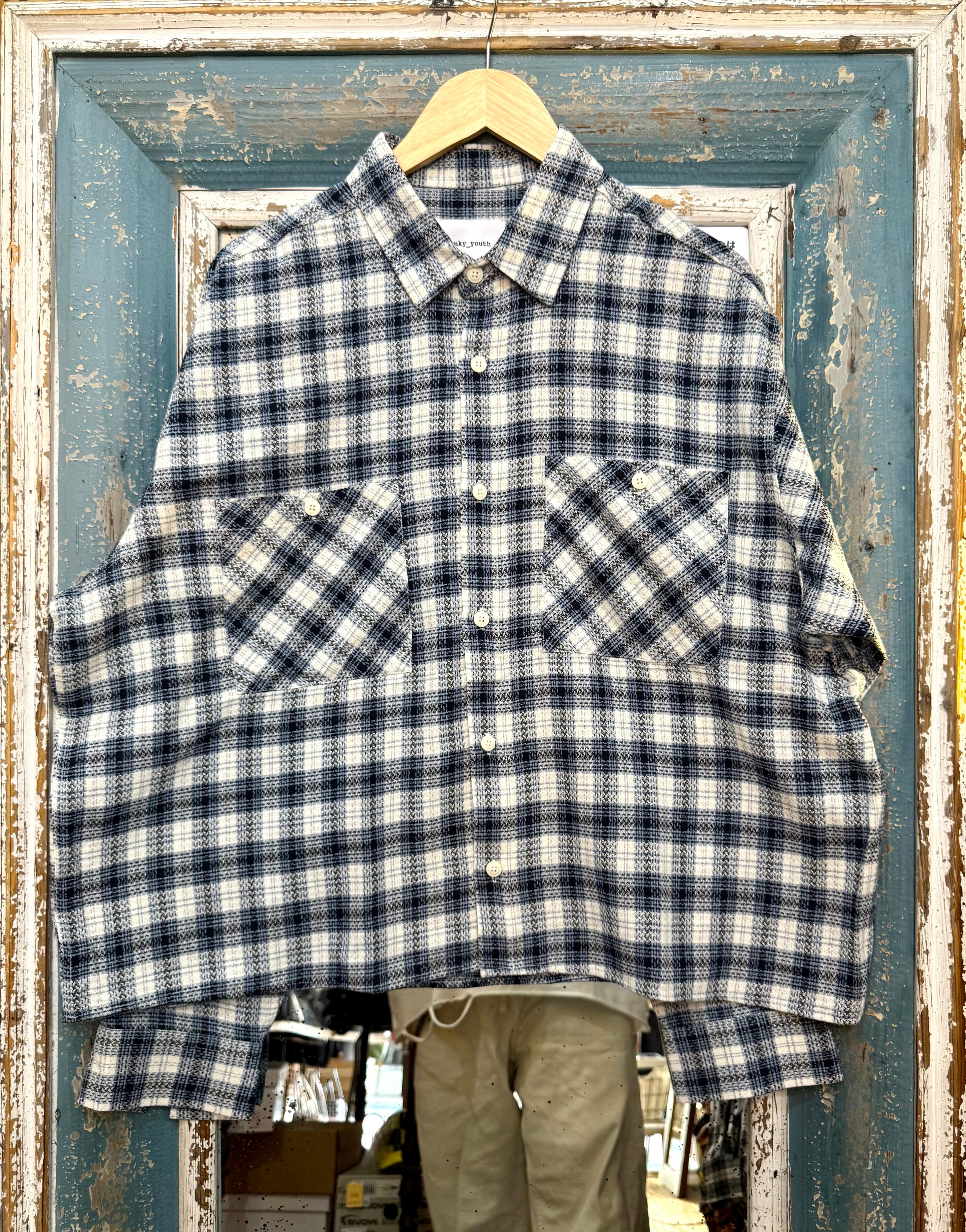 【ブルーチェック クロップド丈シャツ】