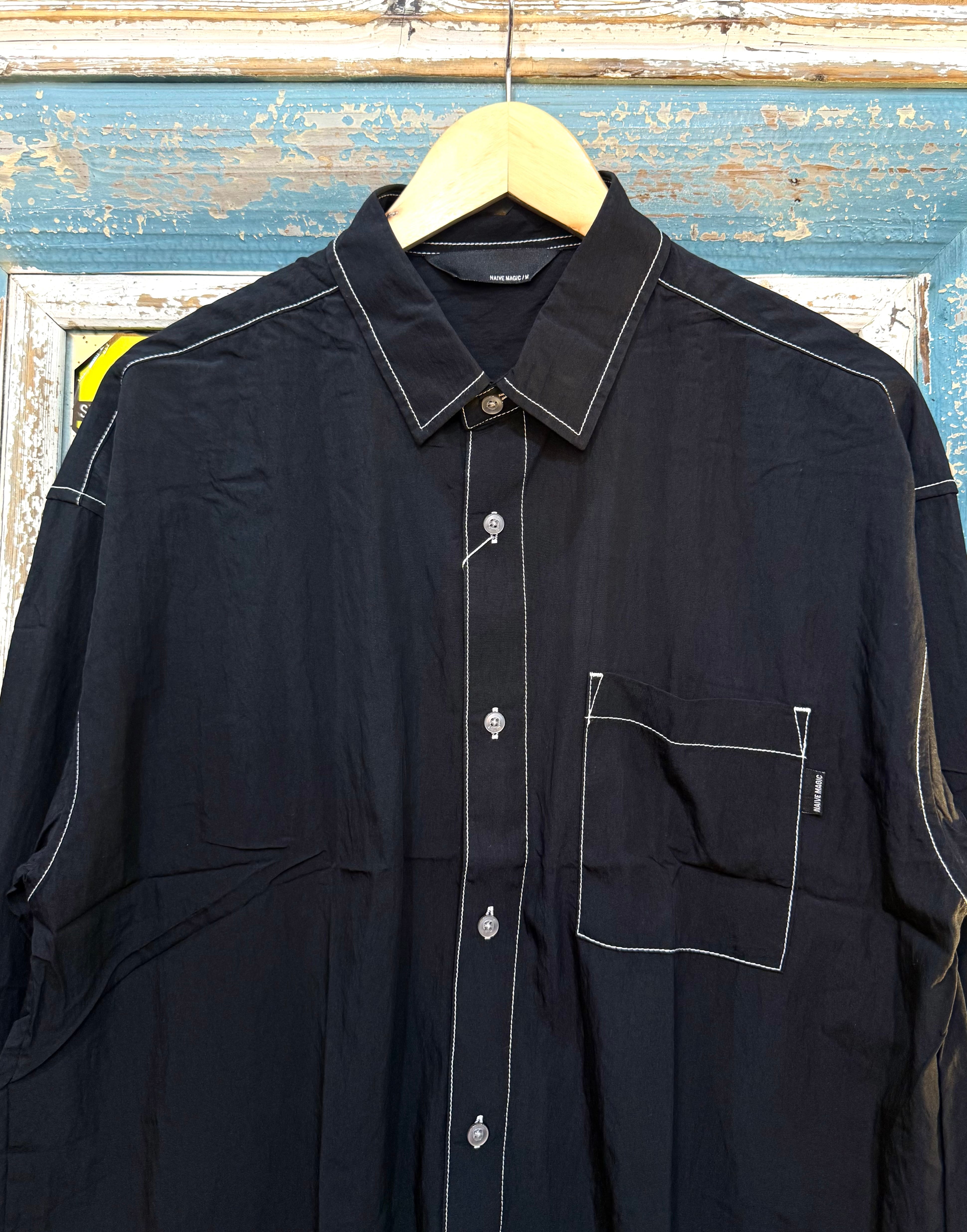 レーヨンにナイロンを混紡したタスラン生地は、ソフトで滑らかな肌触りが特徴。表面のナチュラルなシワ感、風合いが魅力的です。ステッチワークがアクセントとなっており、一枚で洗練されたオシャレを楽しめます。リラックス感のあるシルエットのため、ストレスフリーで長時間着用いただけます。