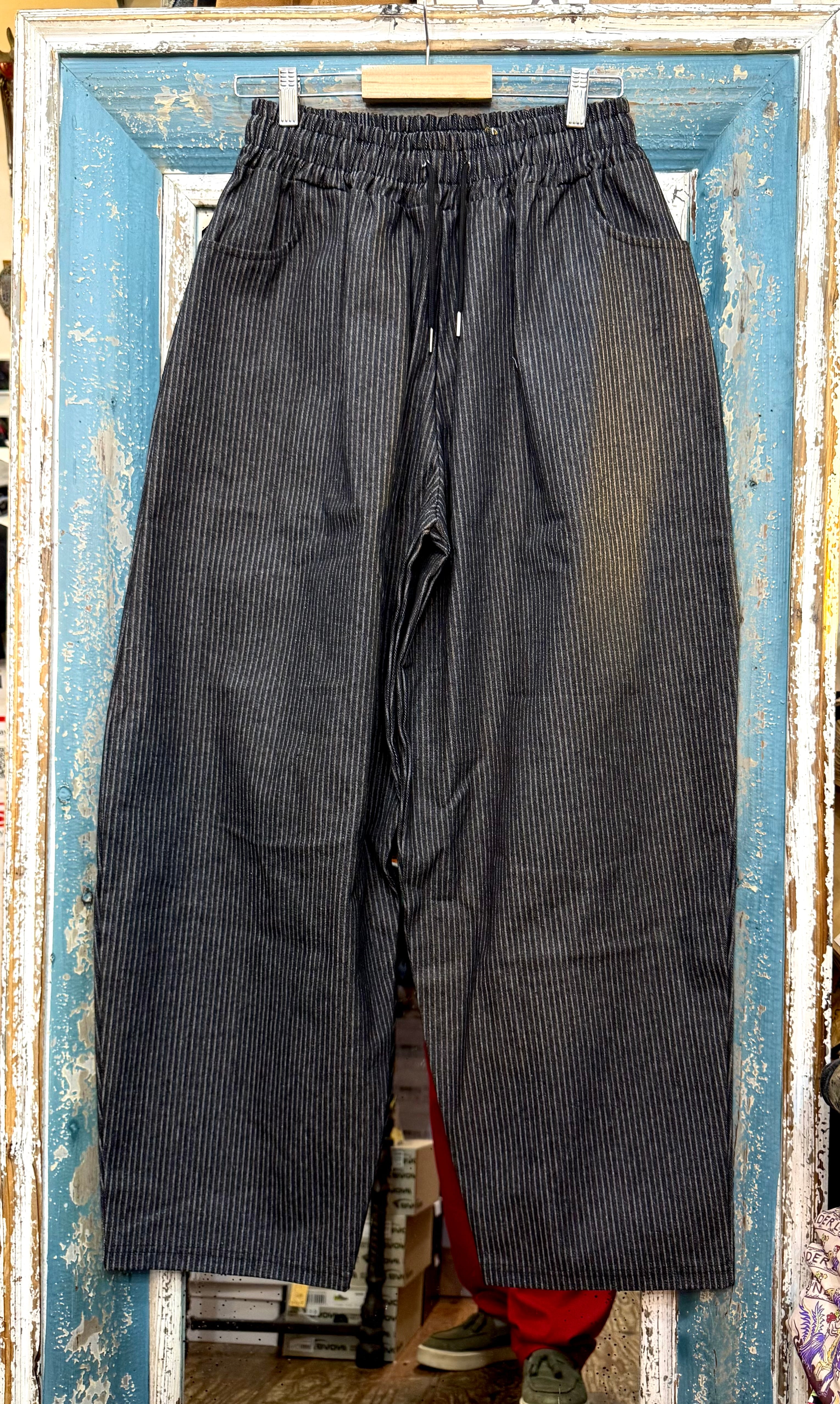 バレルレッグのシルエットで美しいラインを描くストライプデザインのデニムです。ウエストはイージー仕様で、誰でも簡単に着こなせる抜群の履き心地を提供します。バックにはさりげないロゴプリントを施し、シンプルながらもおしゃれなアクセントが魅力です。