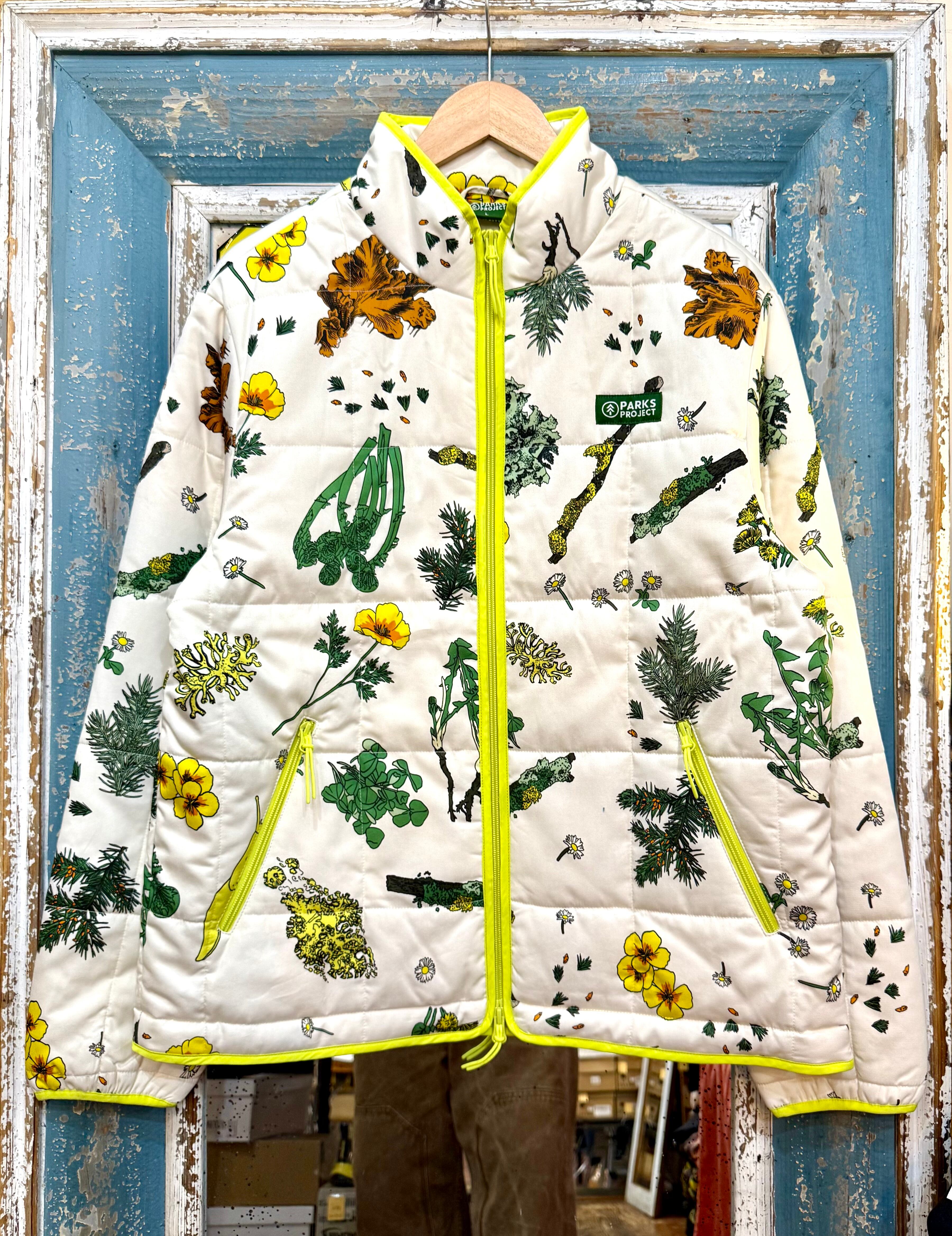 アメリカより買い付けたPARKS PROJECTの中綿ジャケットです。カリフォルニアのナショナルパークや自然環境をテーマにしたデザインが特徴で、アウトドアシーンでも映える一着!ネイチャー柄は、自然の美しさを取り入れたスタイリッシュな印象を与えます。
