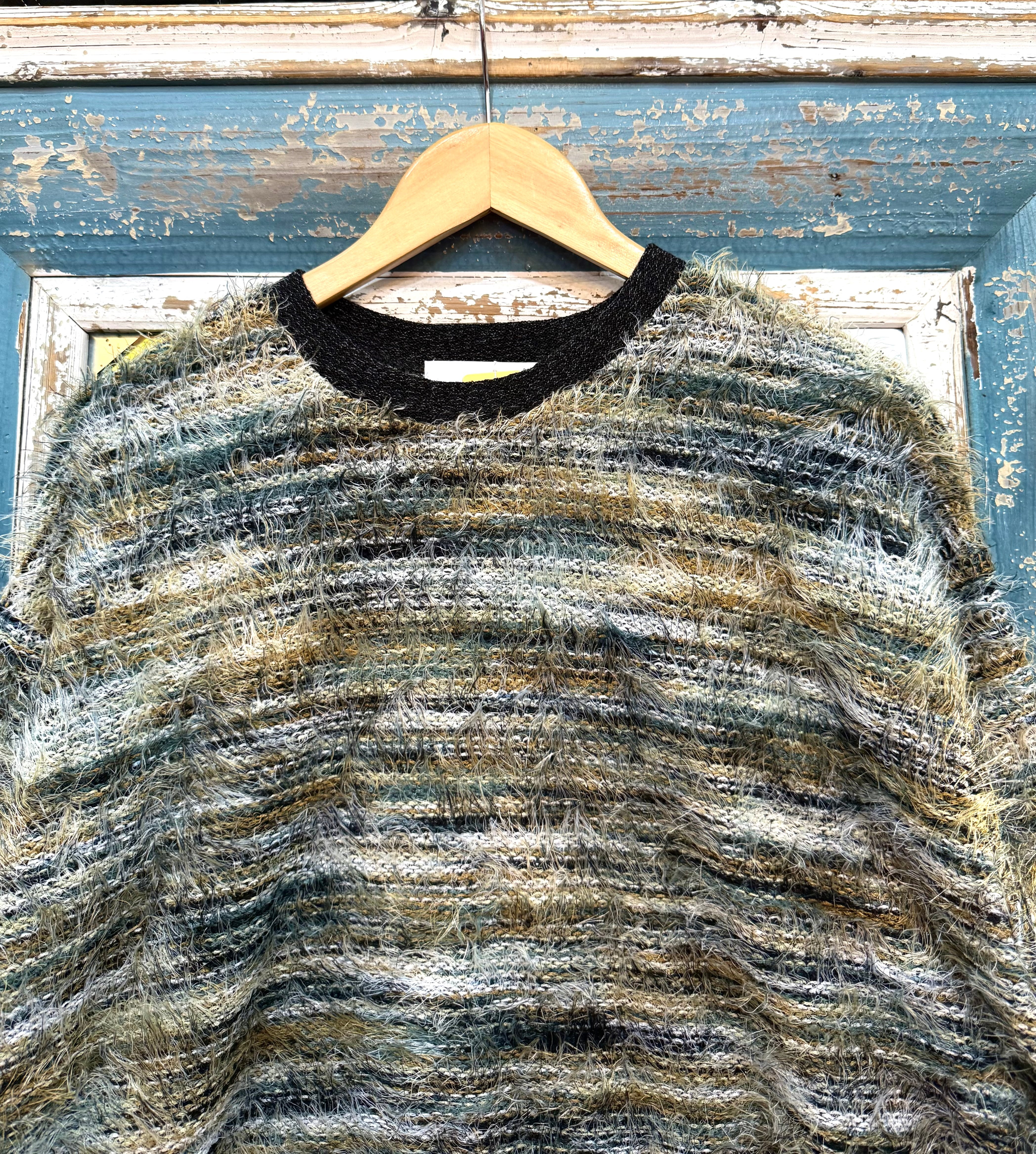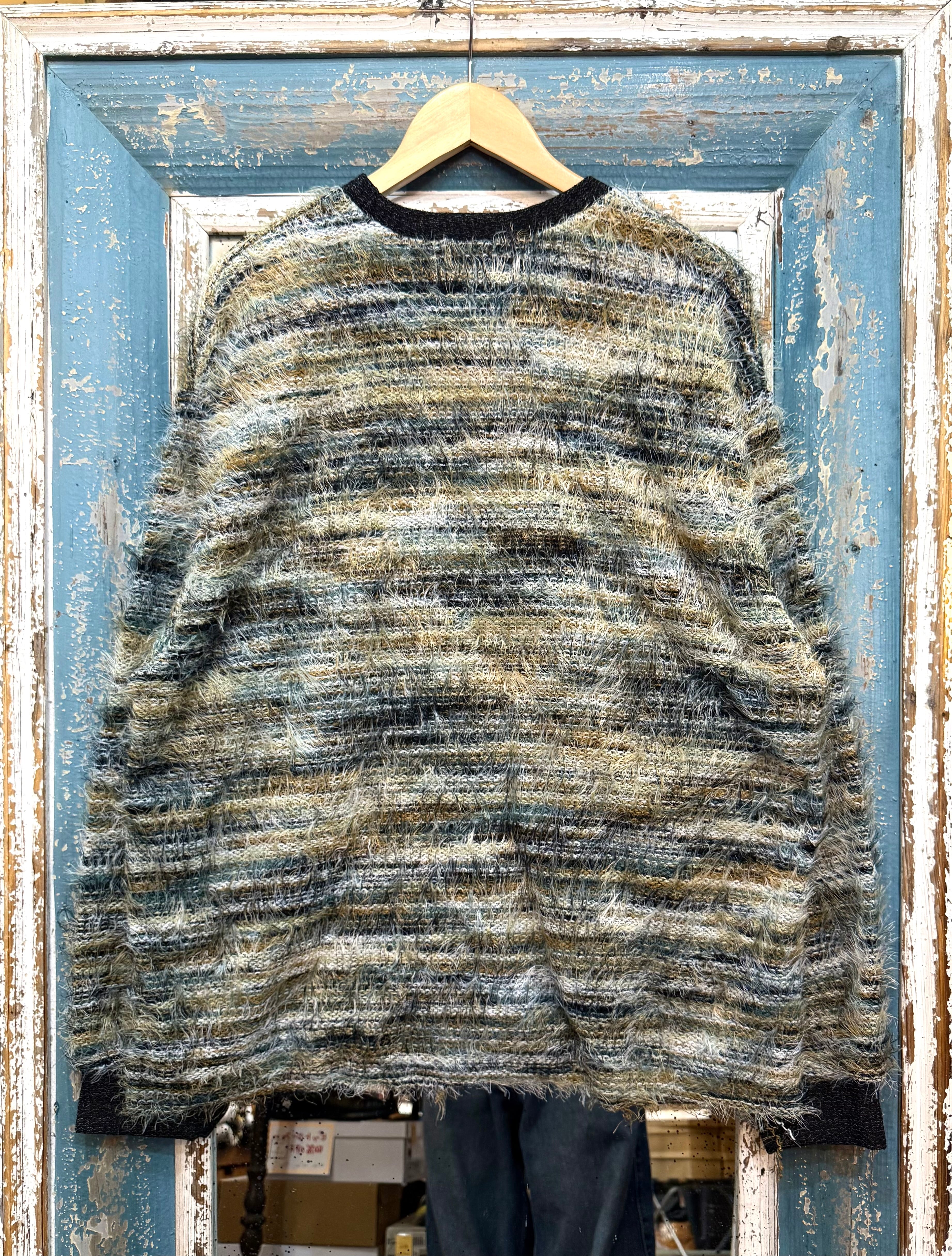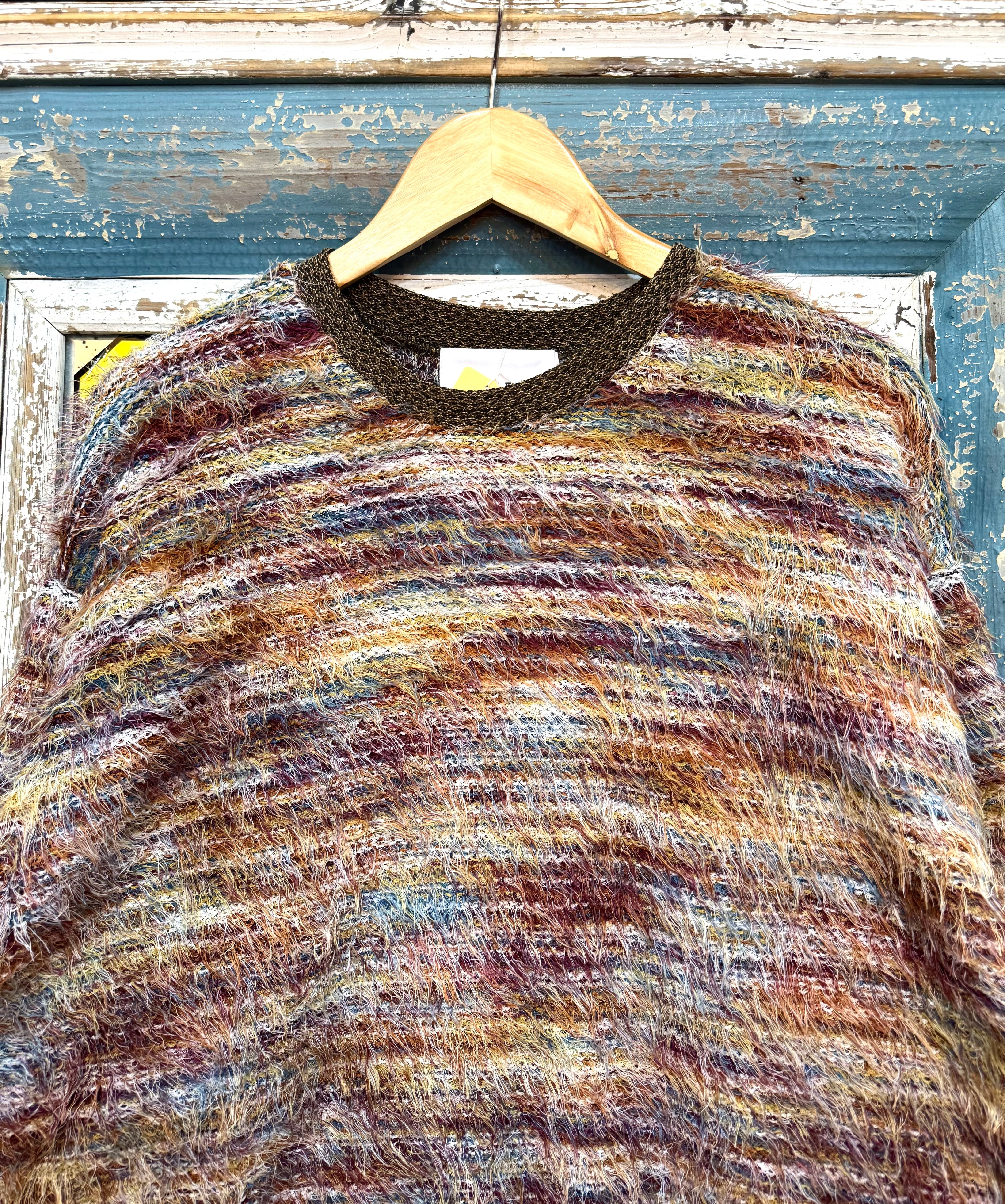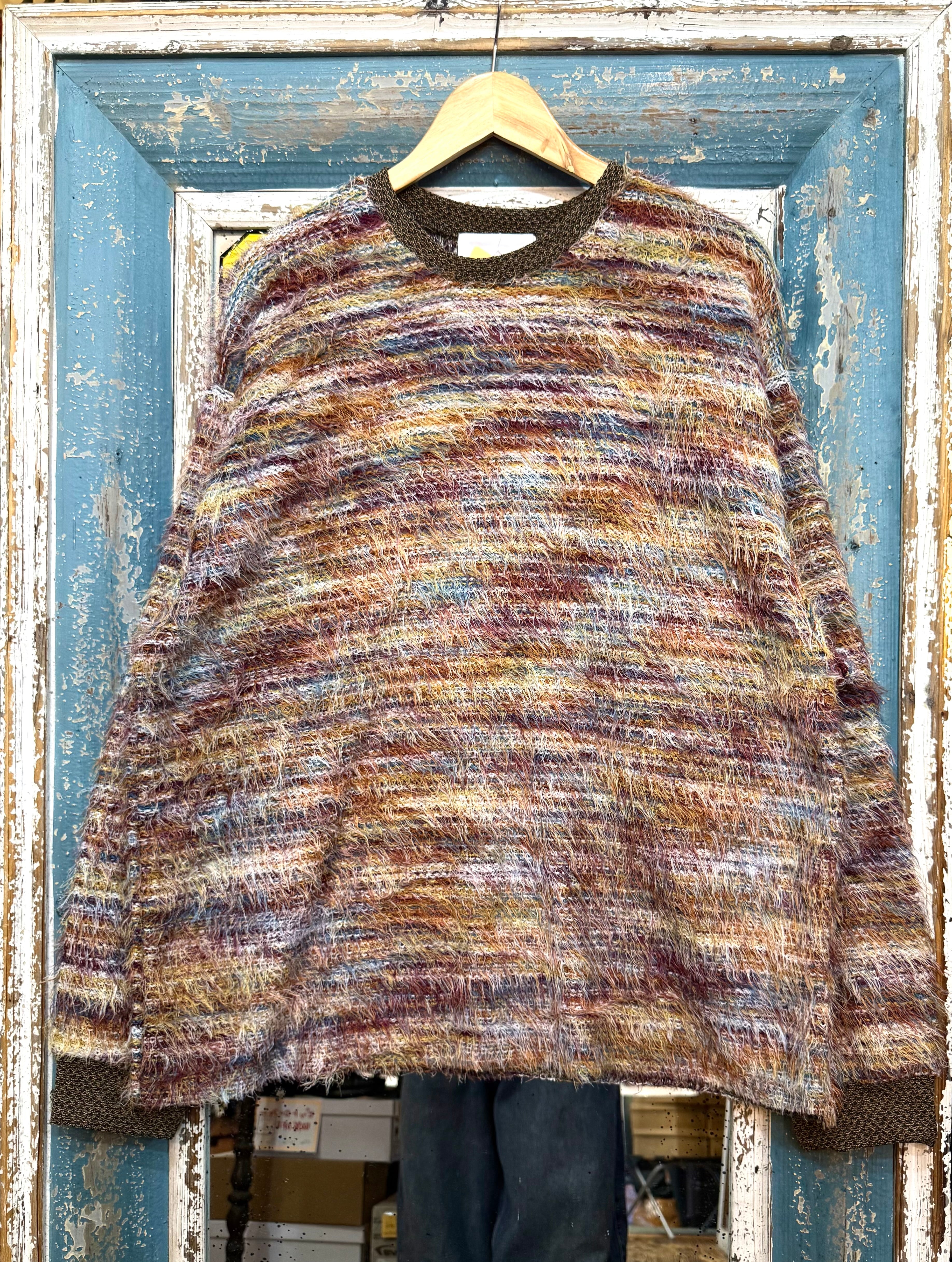 毛足の長いフェザーヤーンを使用した、温かみのあるスタイリッシュなブークレニットです。