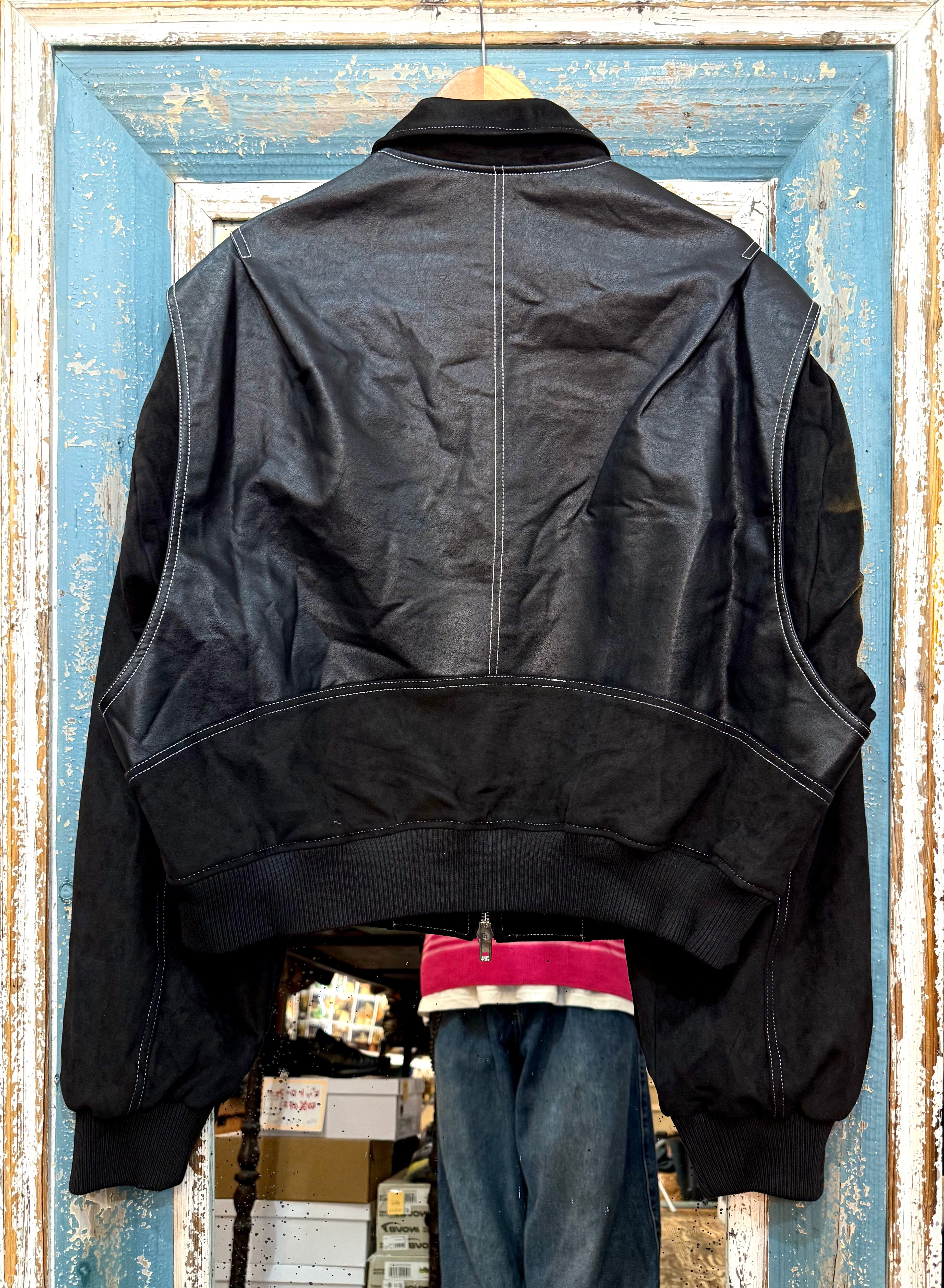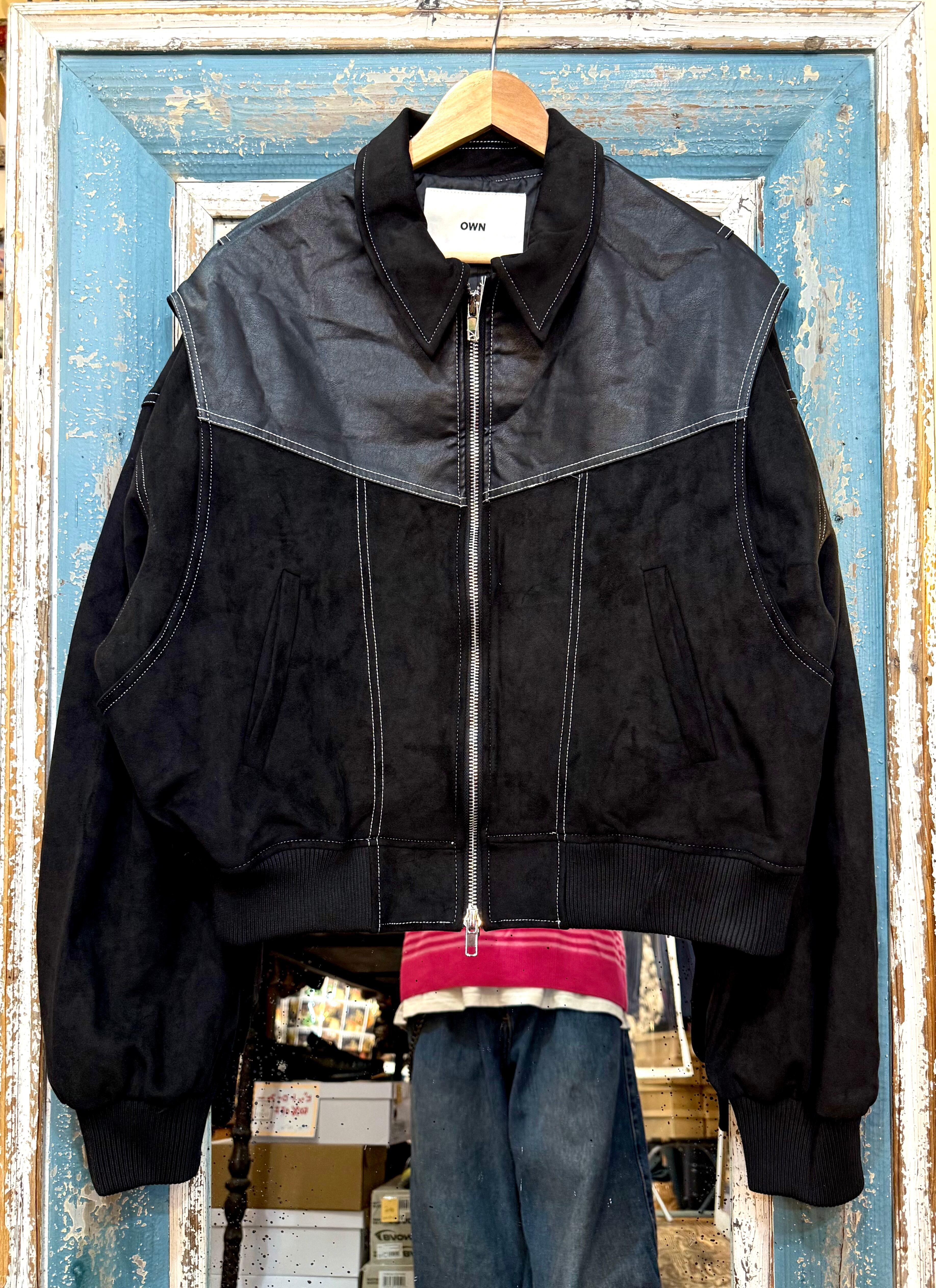 ユニークなデザインのウエスタンスタイルを楽しめる、スエードとフェイクレザーの切り替えが魅力のブルゾンです。