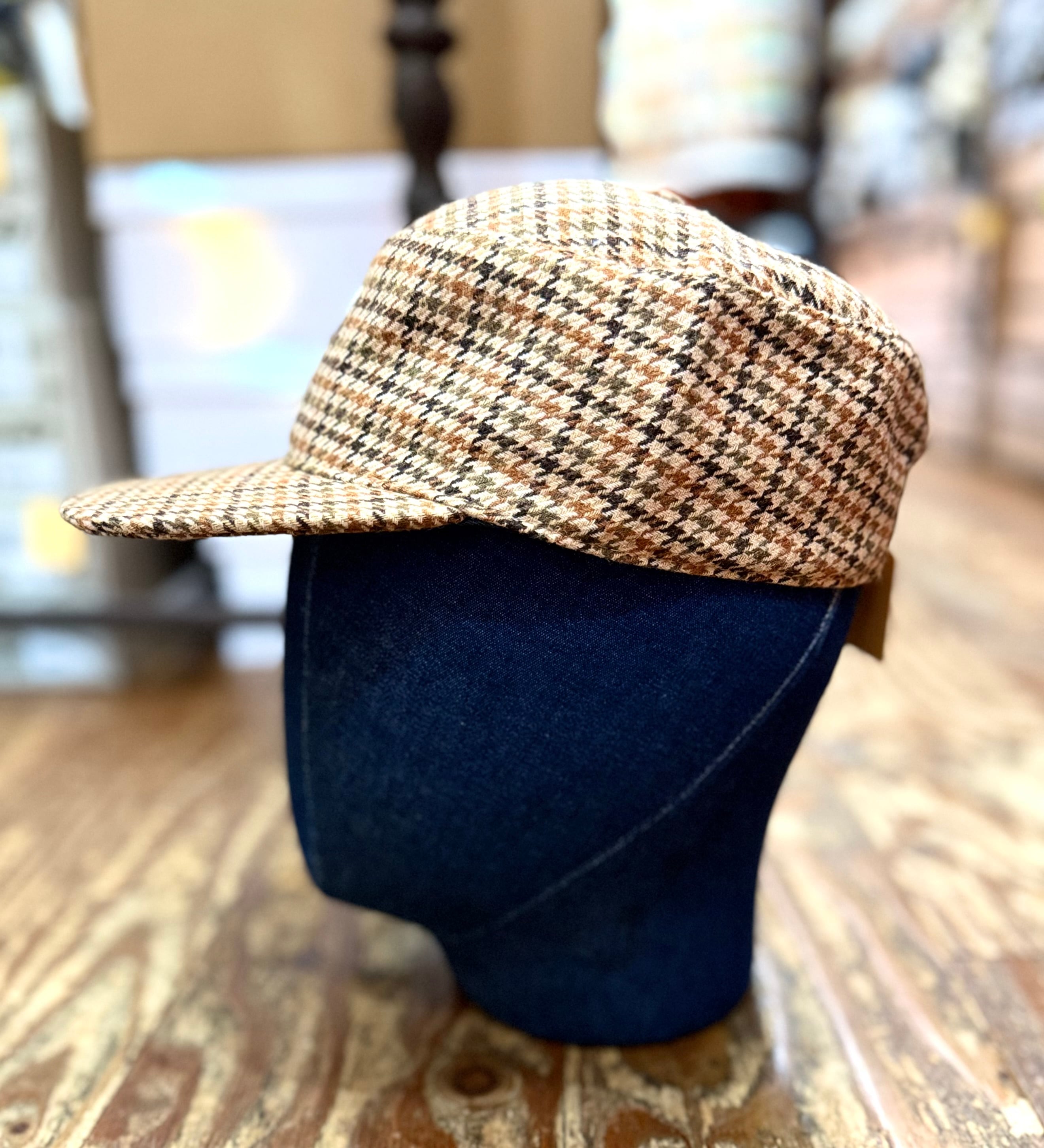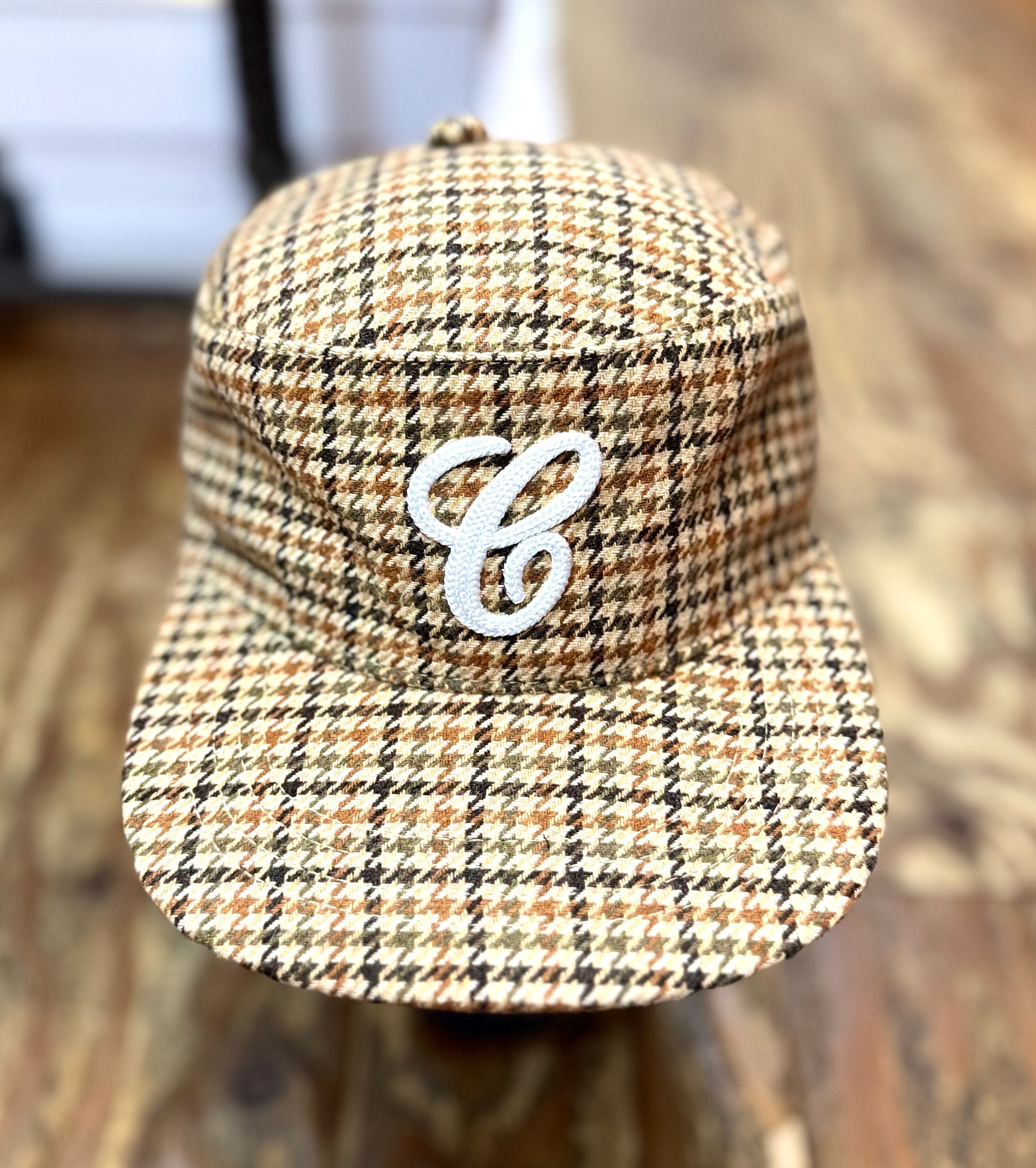今年のトレンドを反映したデザイン、平らなトップが特徴のフラットキャップです。