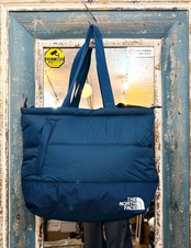アメリカより仕入れたノースフェイスのトートバッグ、NUPTSIは、独特なワタの入った素材感と、鮮やかなターコイズブルーが特徴のアイテムです。