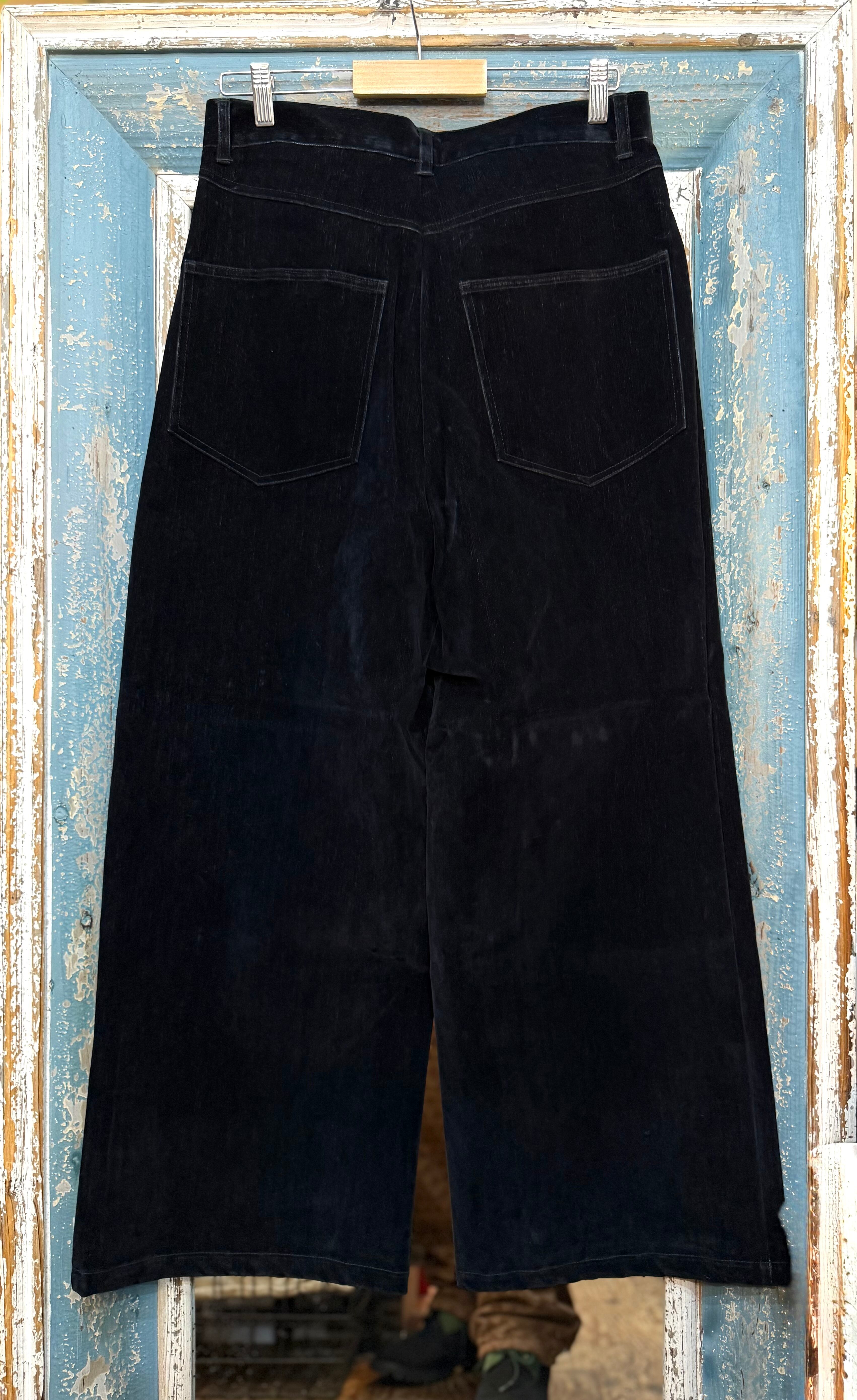 ■pointデニム素材にフロッキー加工を施すことで、上品な起毛感と温かみのある表情に仕上げた5ポケットパンツ。光の角度によって微妙にトーンが変化する、ベルベットのようなリッチな質感が魅力です。ストレート寄りのワイドシルエットで、脚のラインを拾わず美しい落ち感を演出。デニムのカジュアルさと、フロッキーの柔らかい高級感を兼ね備えた一本です。スウェットやニットとのリラックススタイルから、シャツやジャケットを合わせたきれいめスタルまで対応可能。秋冬のスタイリングをアップデートしてくれる、大人のニュアンスパンツです。フロッキー加工による微起毛&深みのある色味。