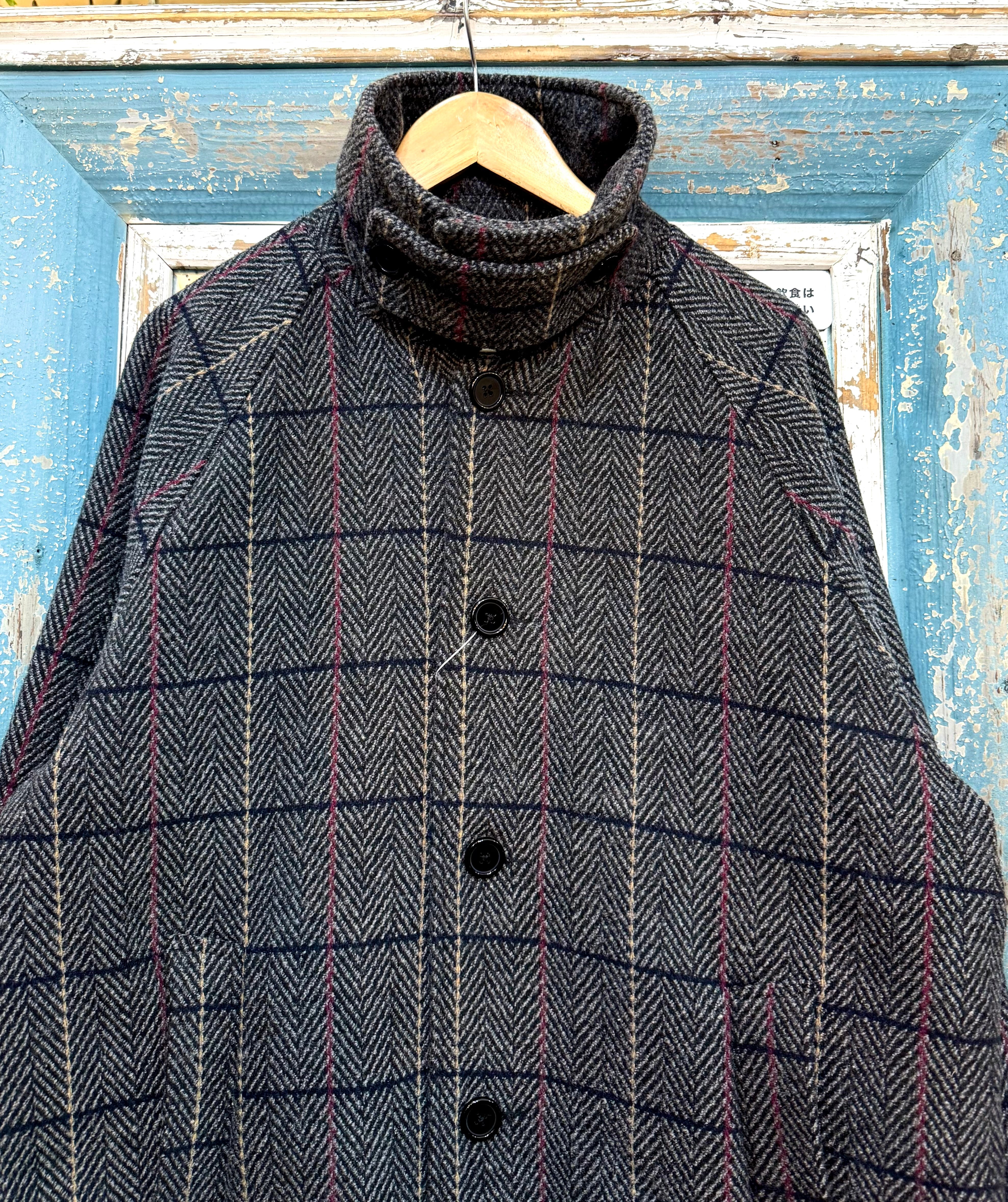 チェック柄はトーンを抑えた配色の中に、さりげなく走るレッドラインがアクセント。トラッドな印象を残しながらも、現代的なバランスで仕上げられた一着です。オンオフ問わず着用できる、秋冬の定番アウター。