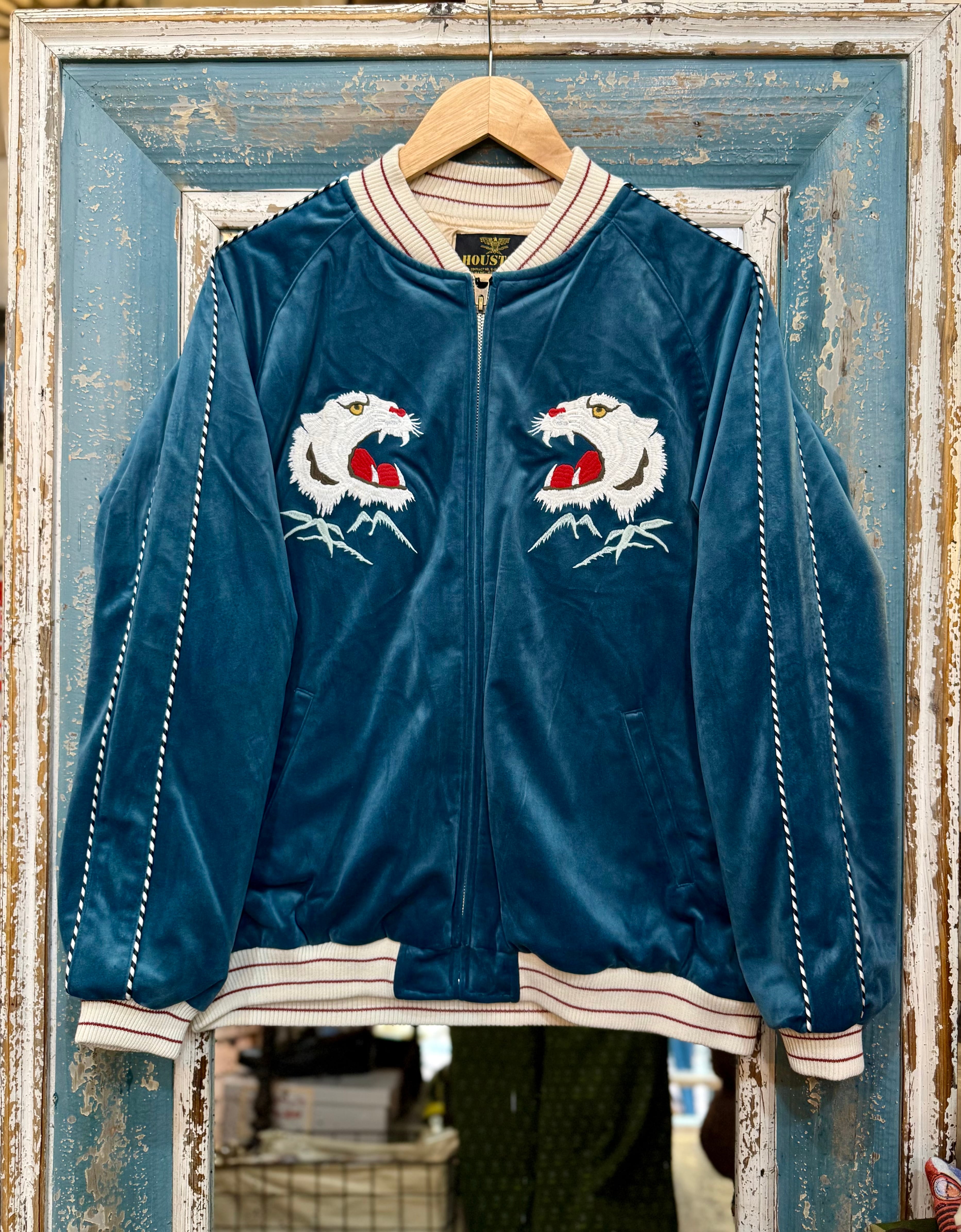 【HOUSTON】VELVETTEN SOUVENIR JACKET (TIGER) ブラック