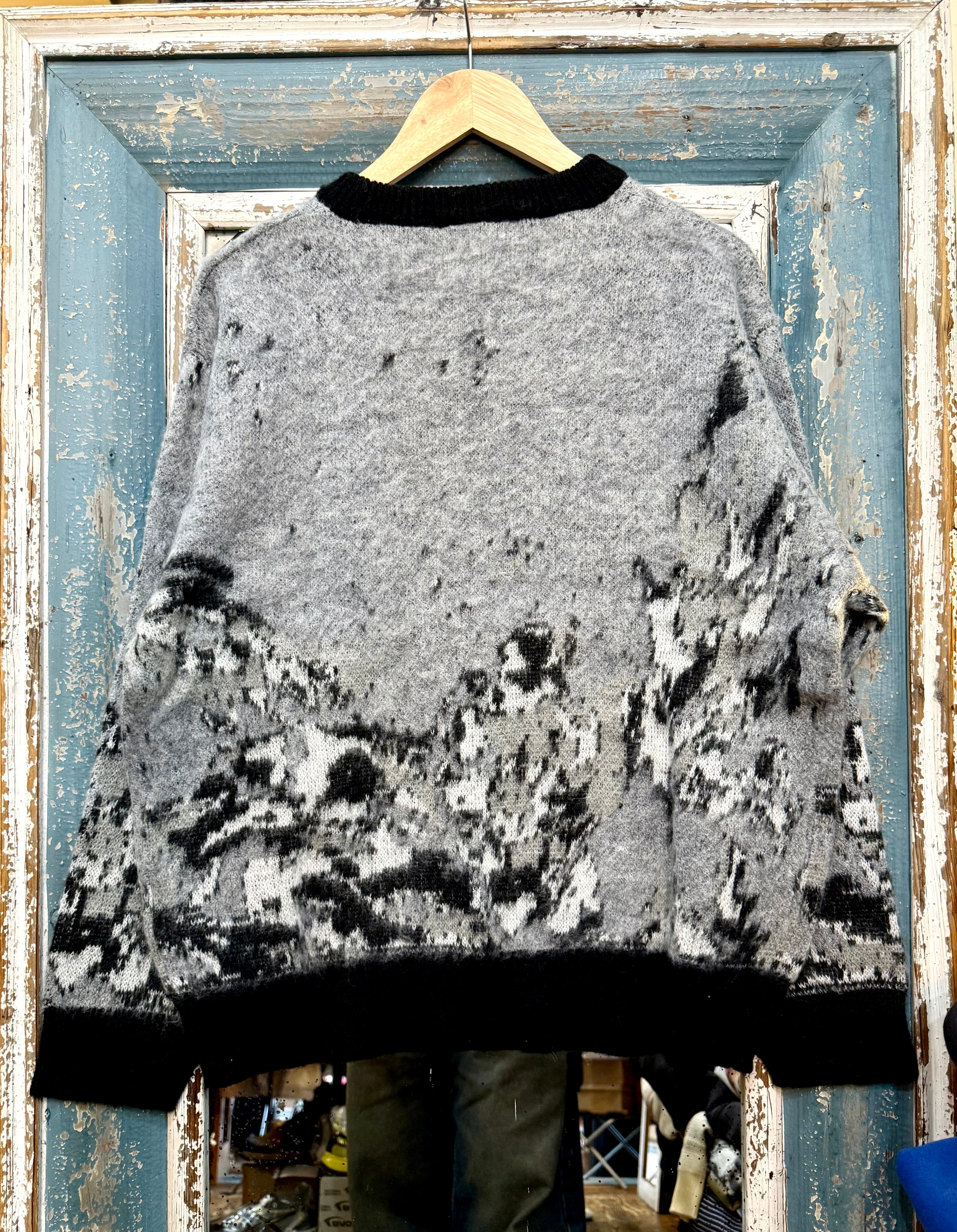 ゆったりとしたオーバーデザインで、独特な色柄表現がとてもおしゃれなセーターです◎きれい目コーデからカジュアルコーデまで様々な合わせ方が出来るデザインニット♪