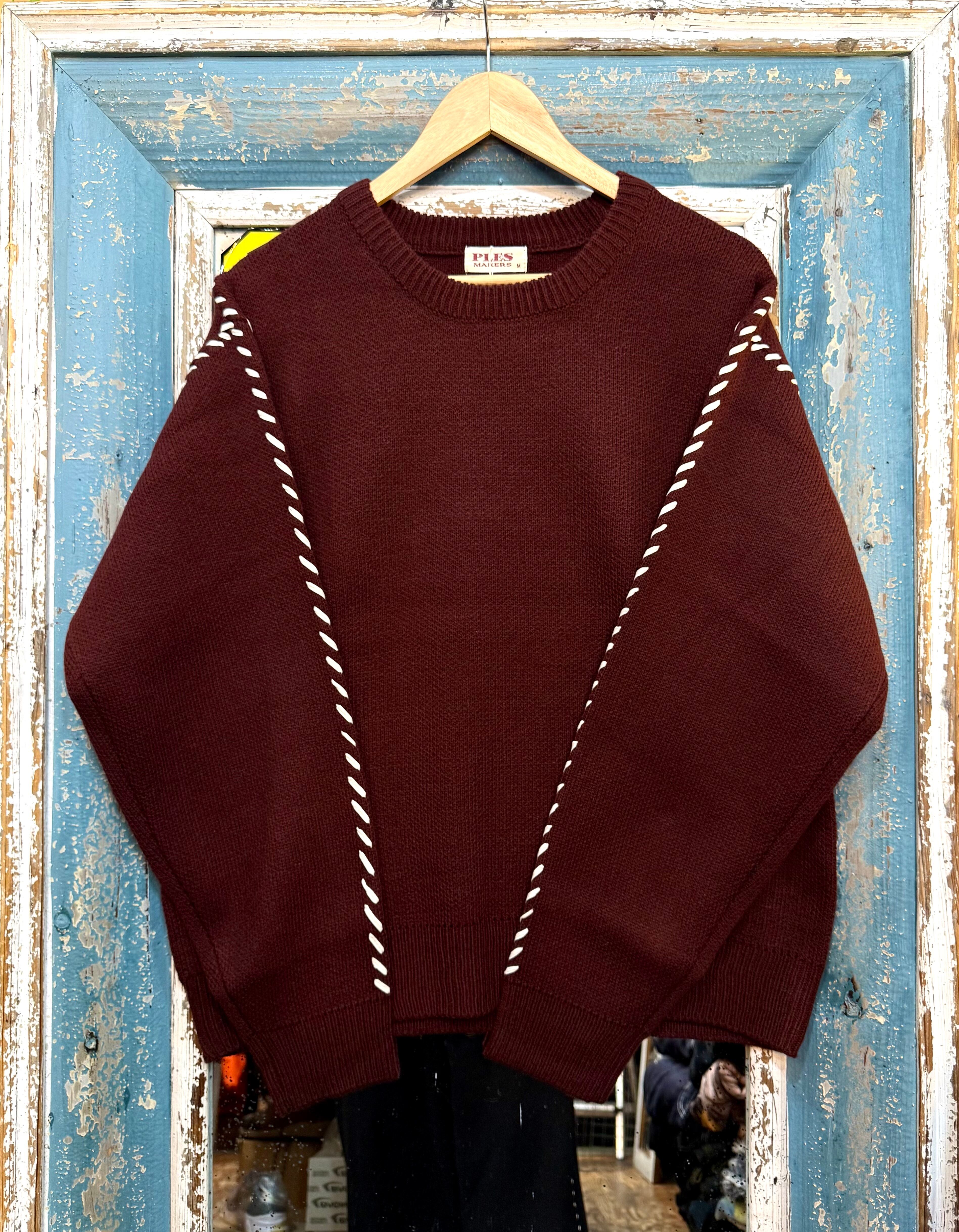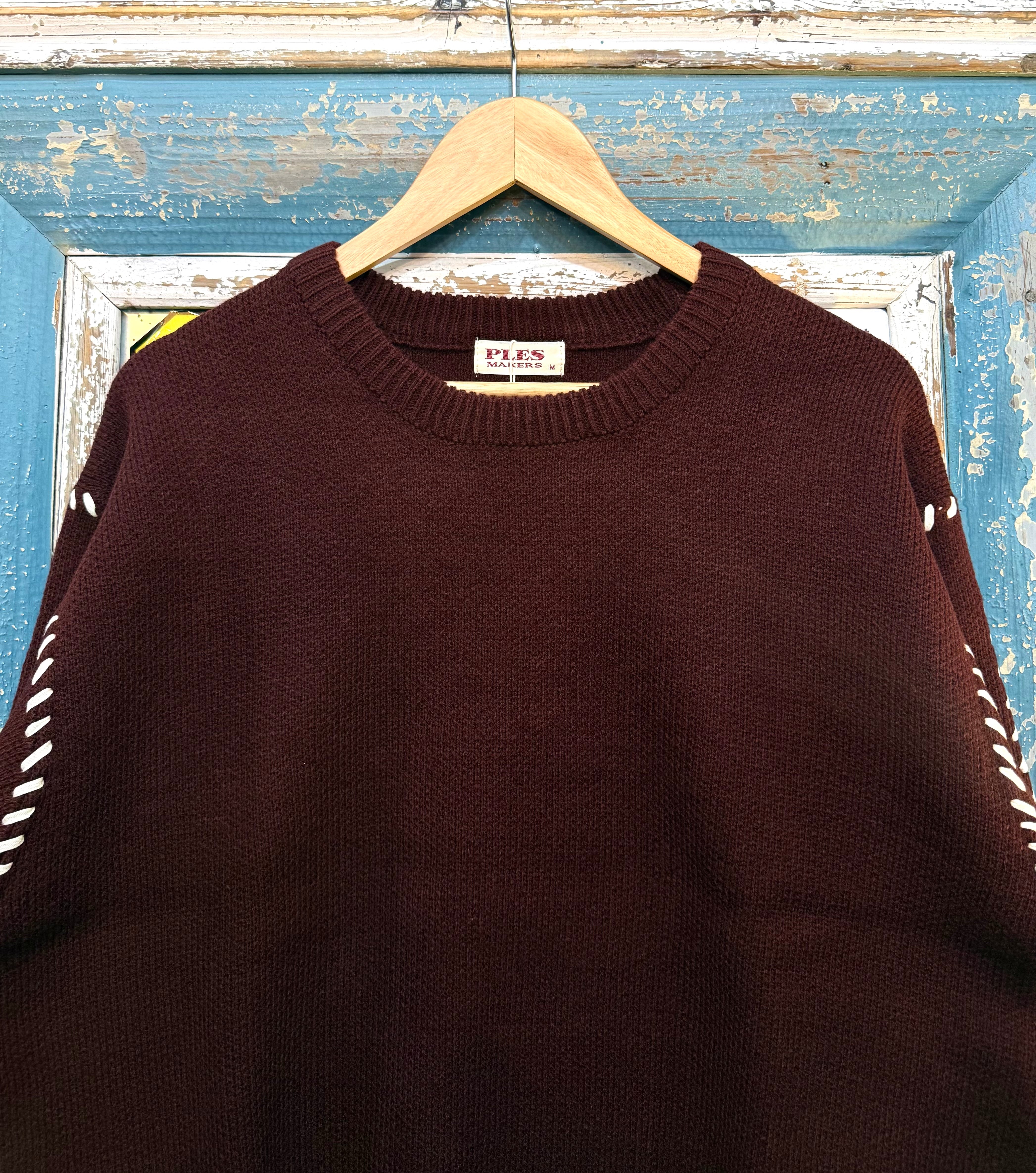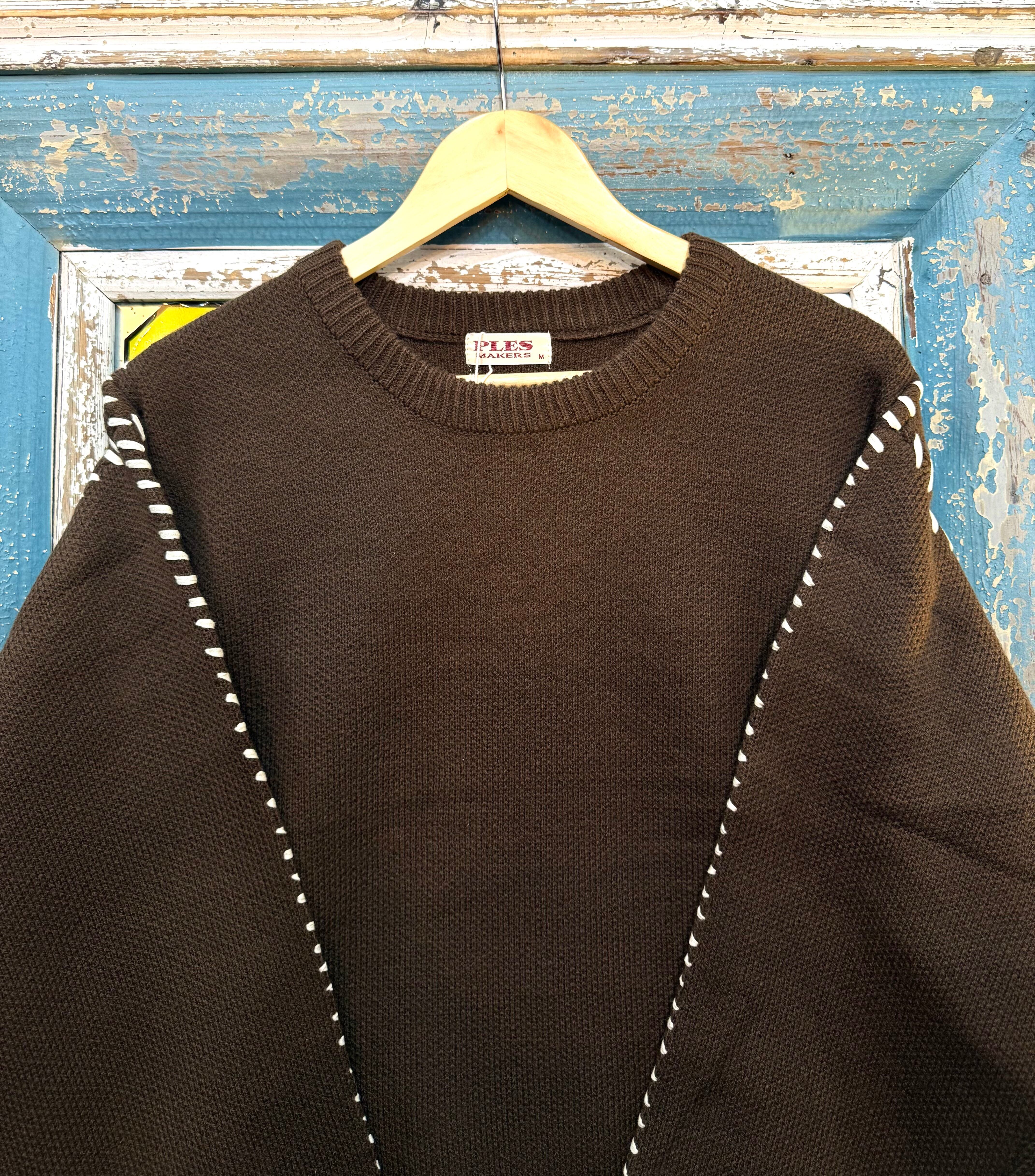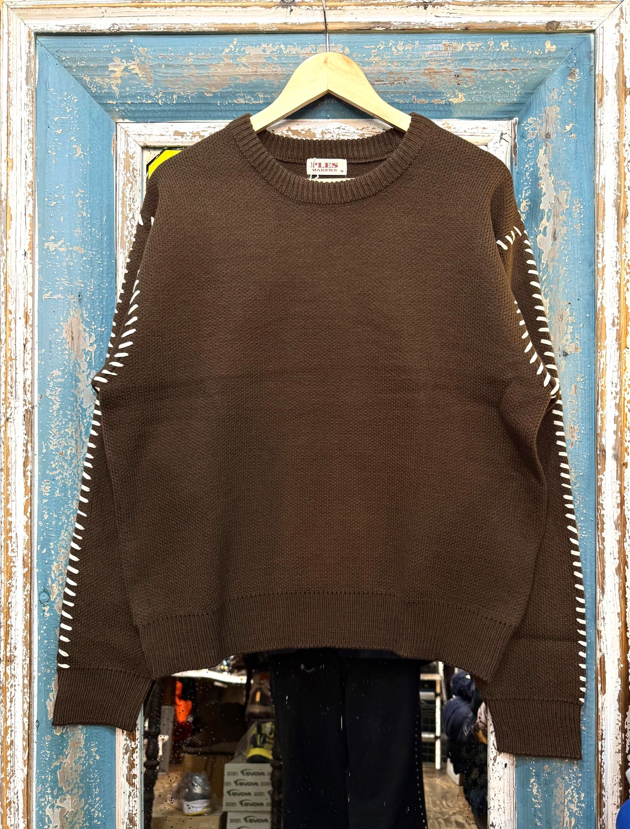 白糸のハンドステッチがアクセントとなり、シンプルでありながらも個性的な魅力を放つクルーネックニットです。絶妙なサイズ感は、今のファッションにぴったりフィットし、どんなスタイルにも合わせやすいので、ワードローブの定番アイテムとしてお楽しみいただけます。これ一枚でコーディネートが決まり、季節を問わず重宝すること間違いなしです!