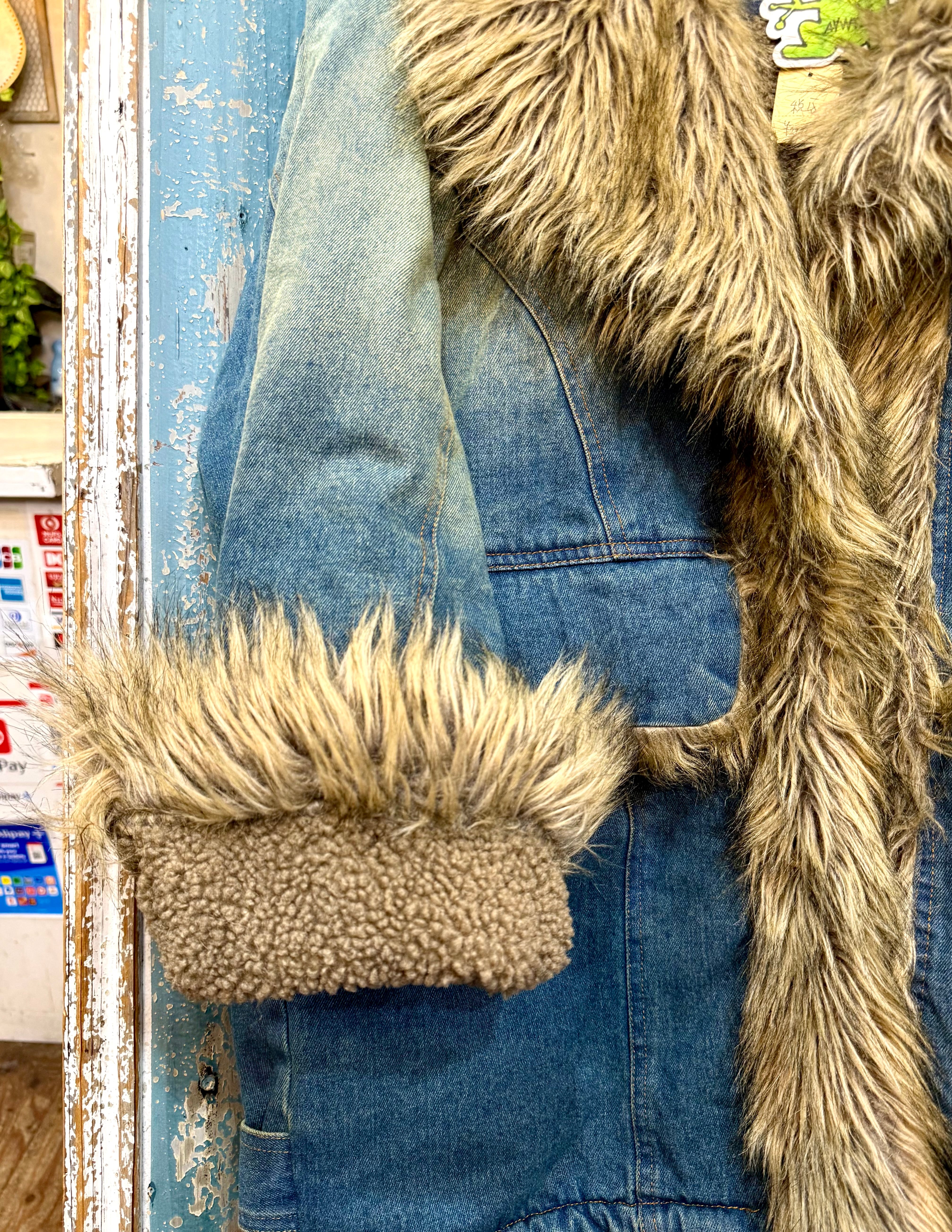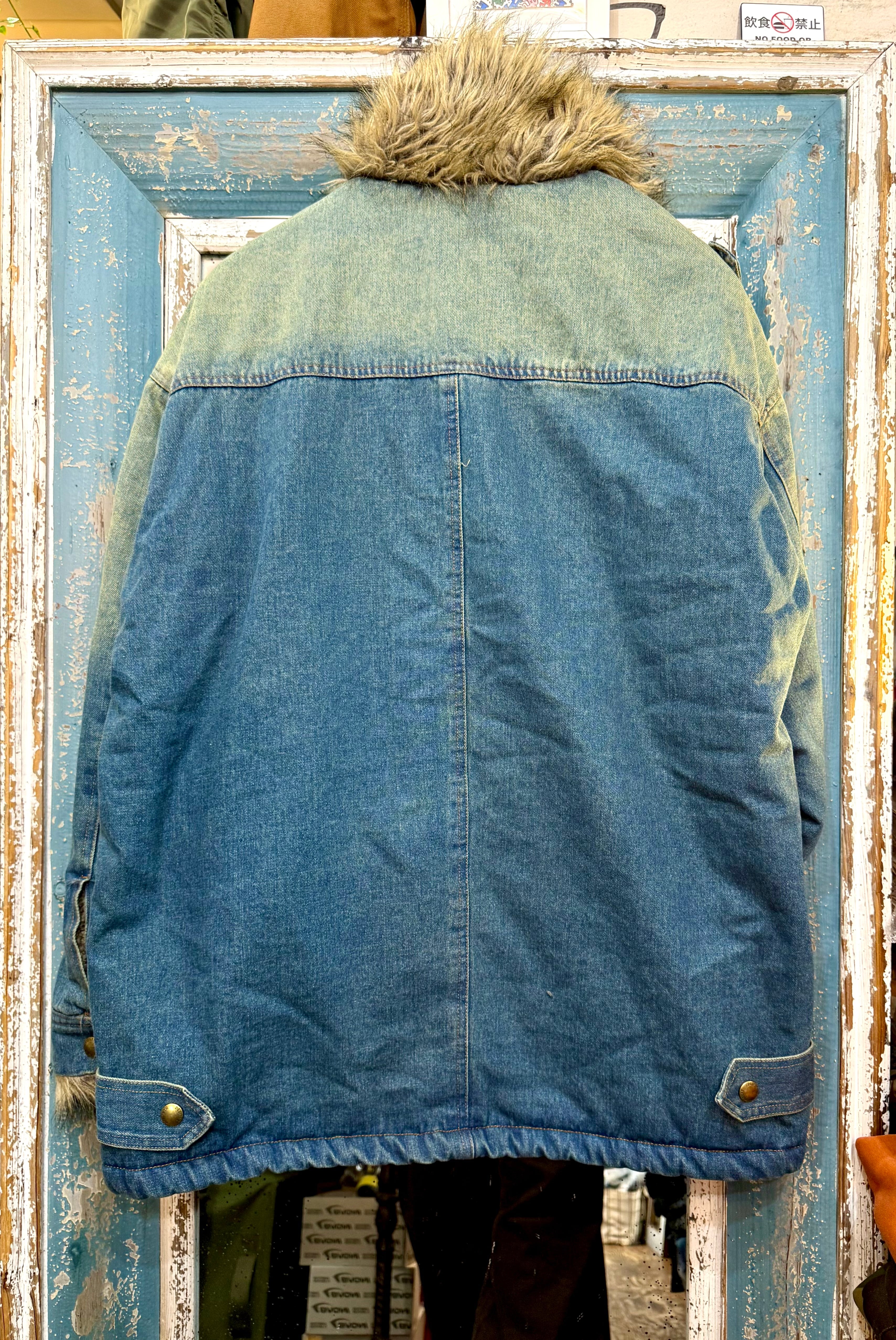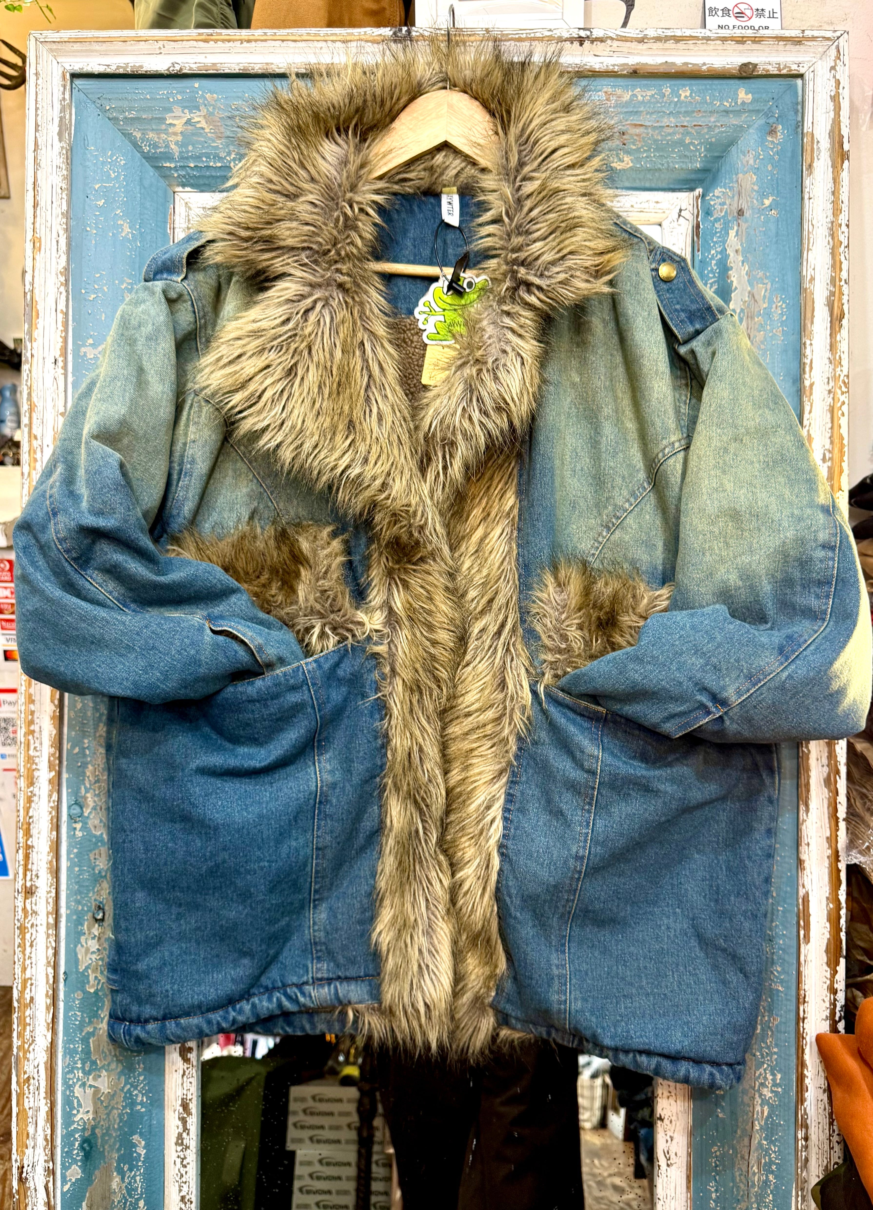 アメリカンヴィンテージ感あふれるデニムとファーのコートです。