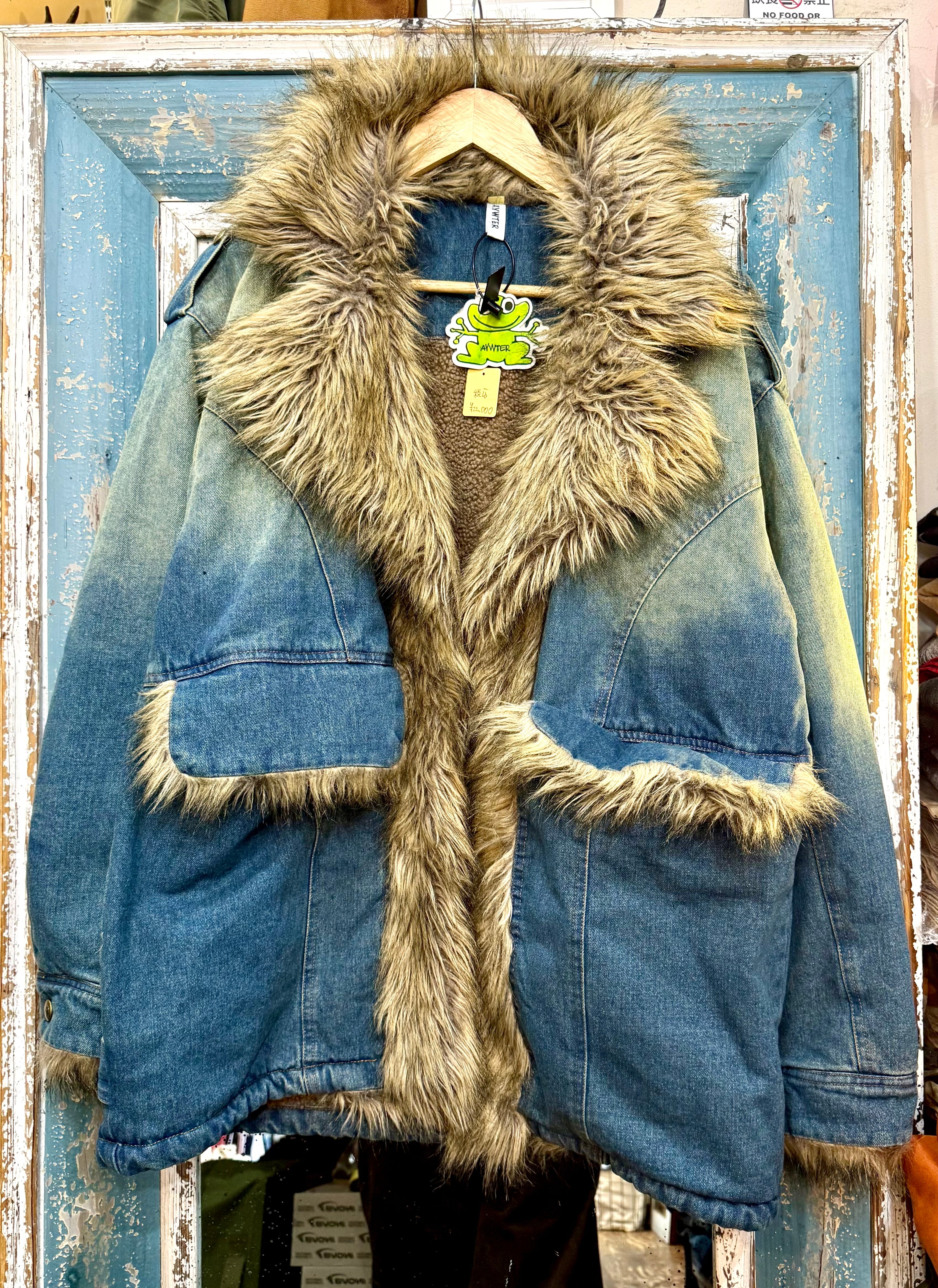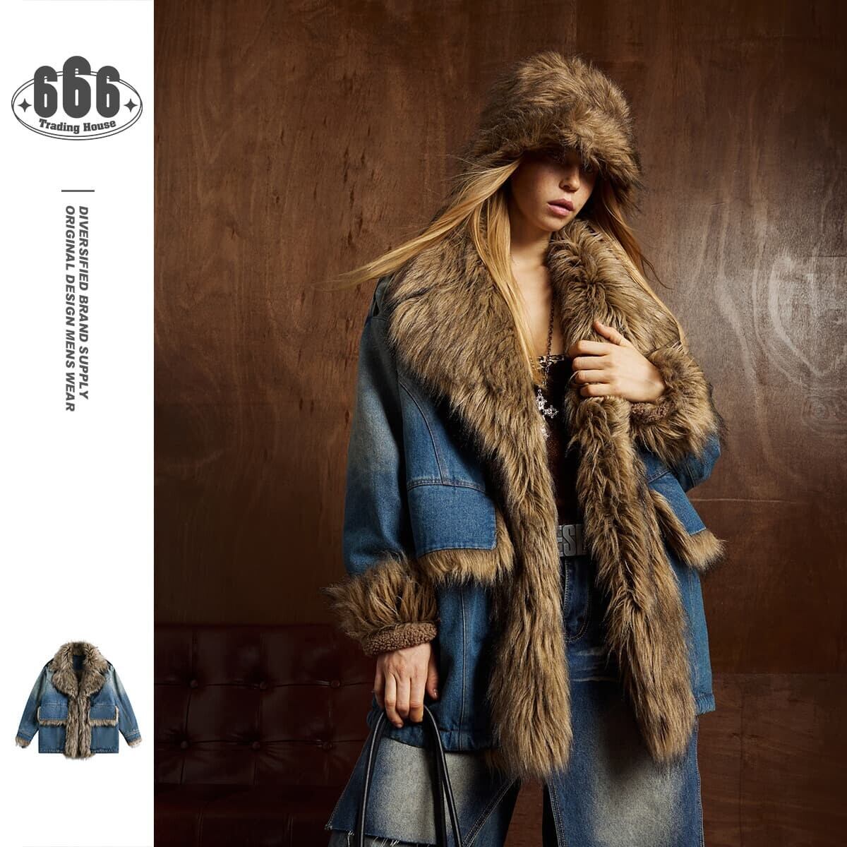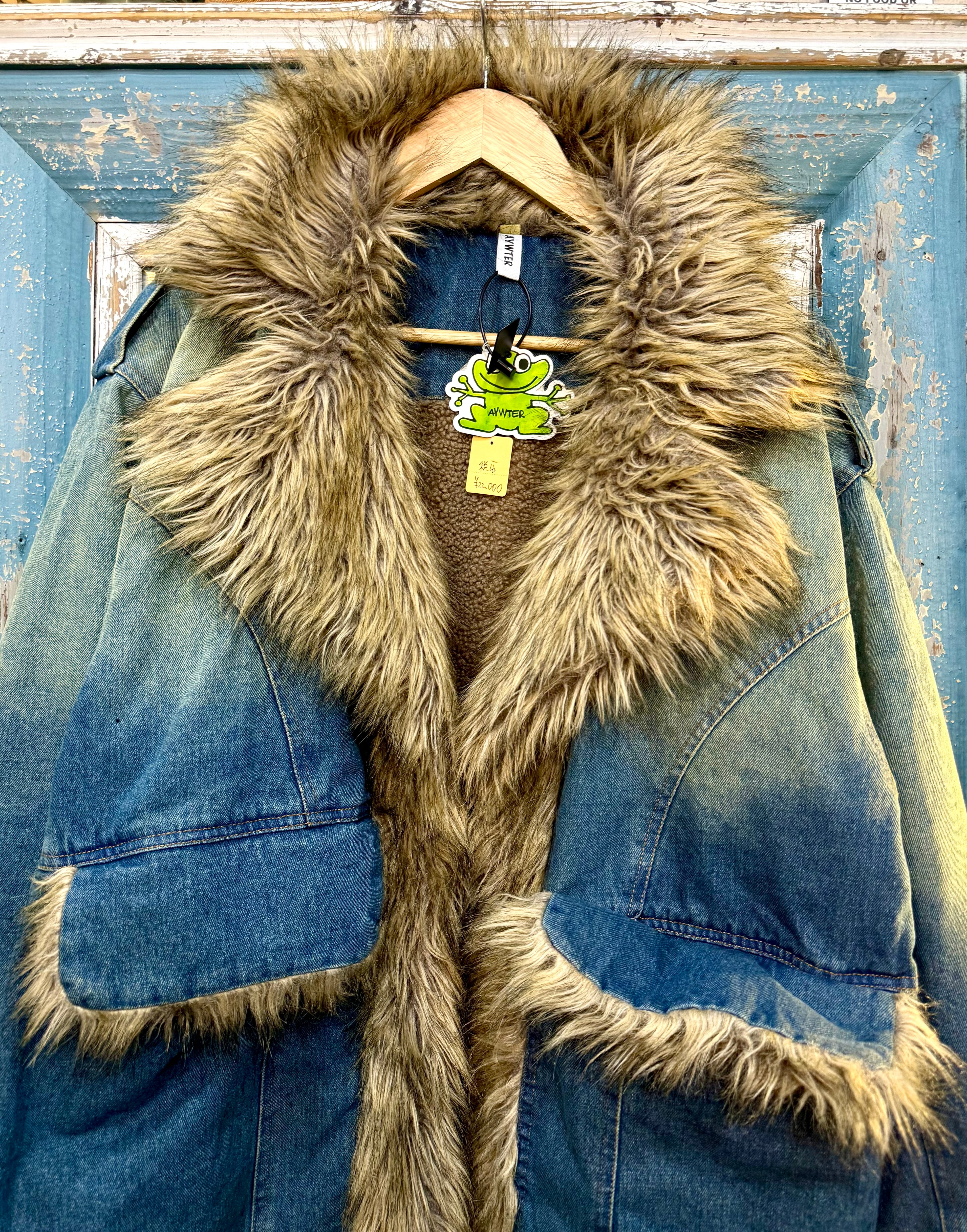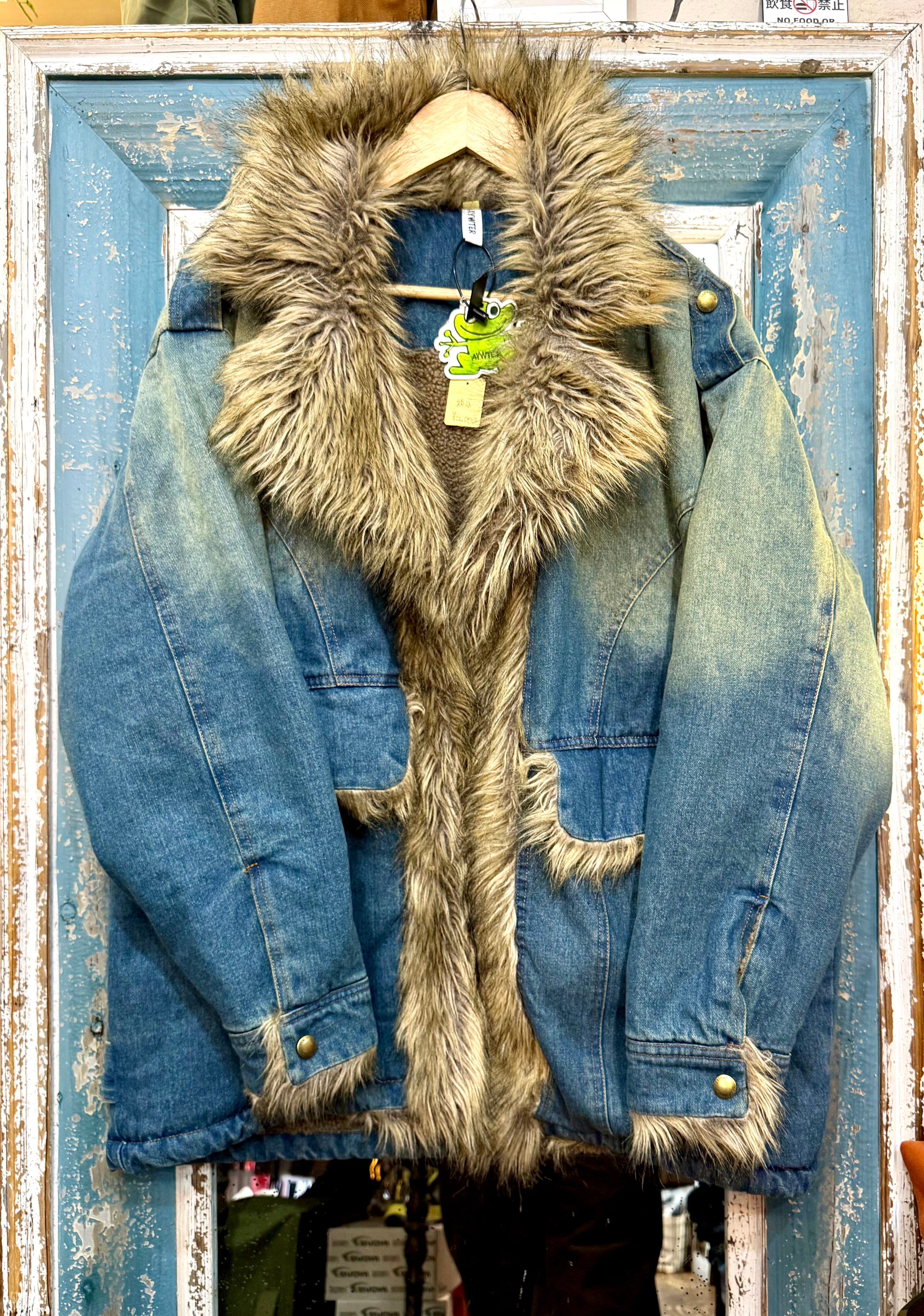 アメリカンヴィンテージ感あふれるデニムとファーのコートです。