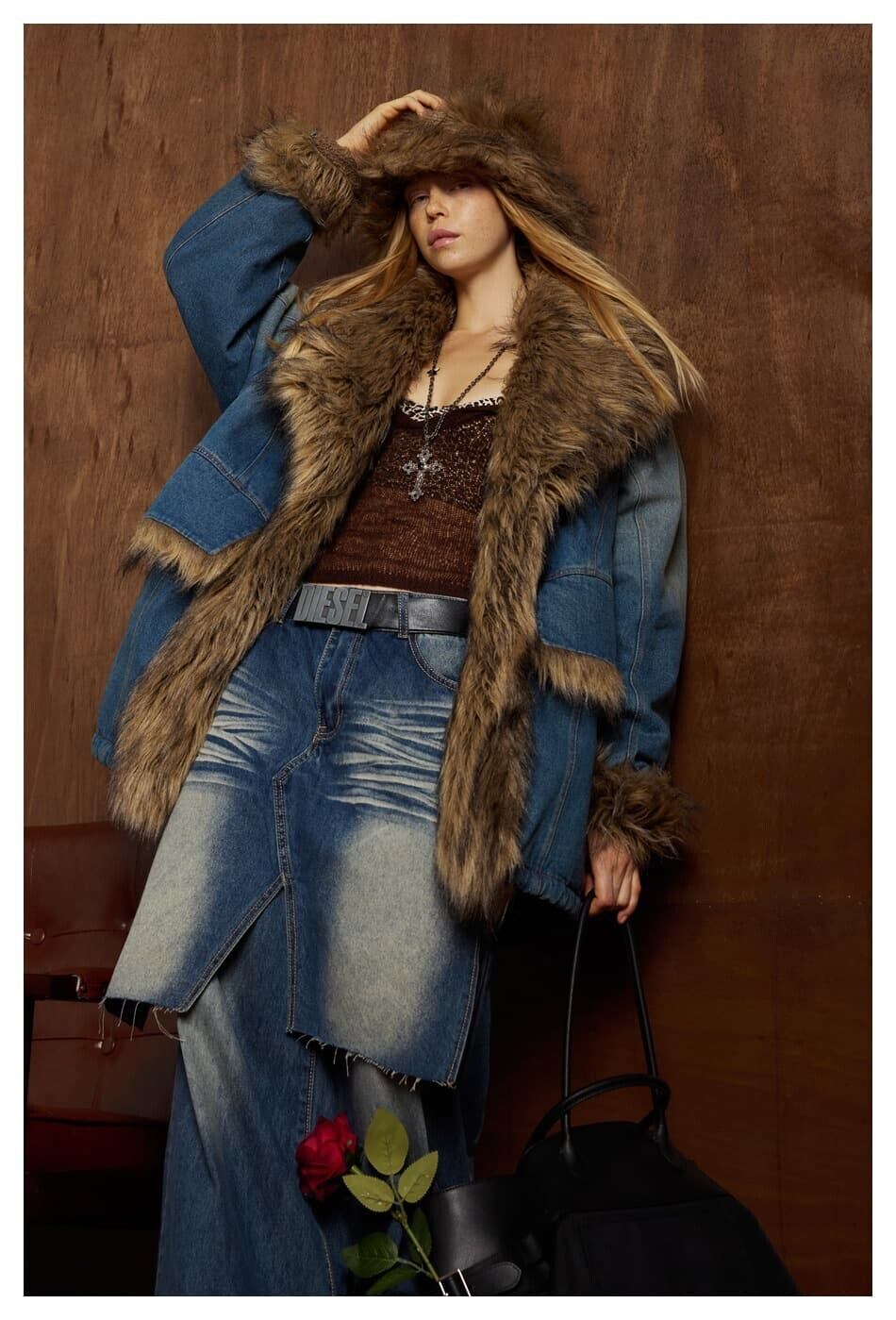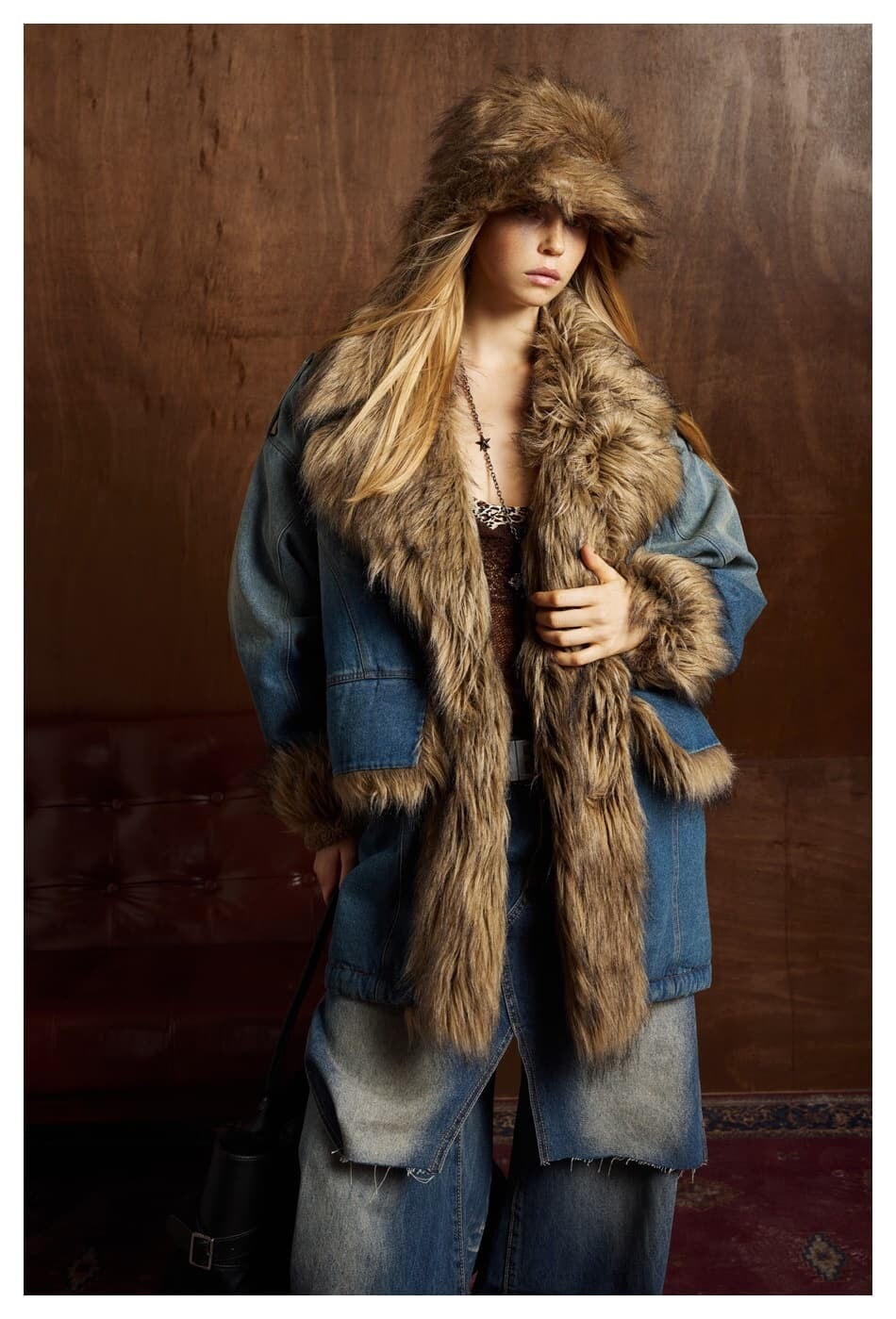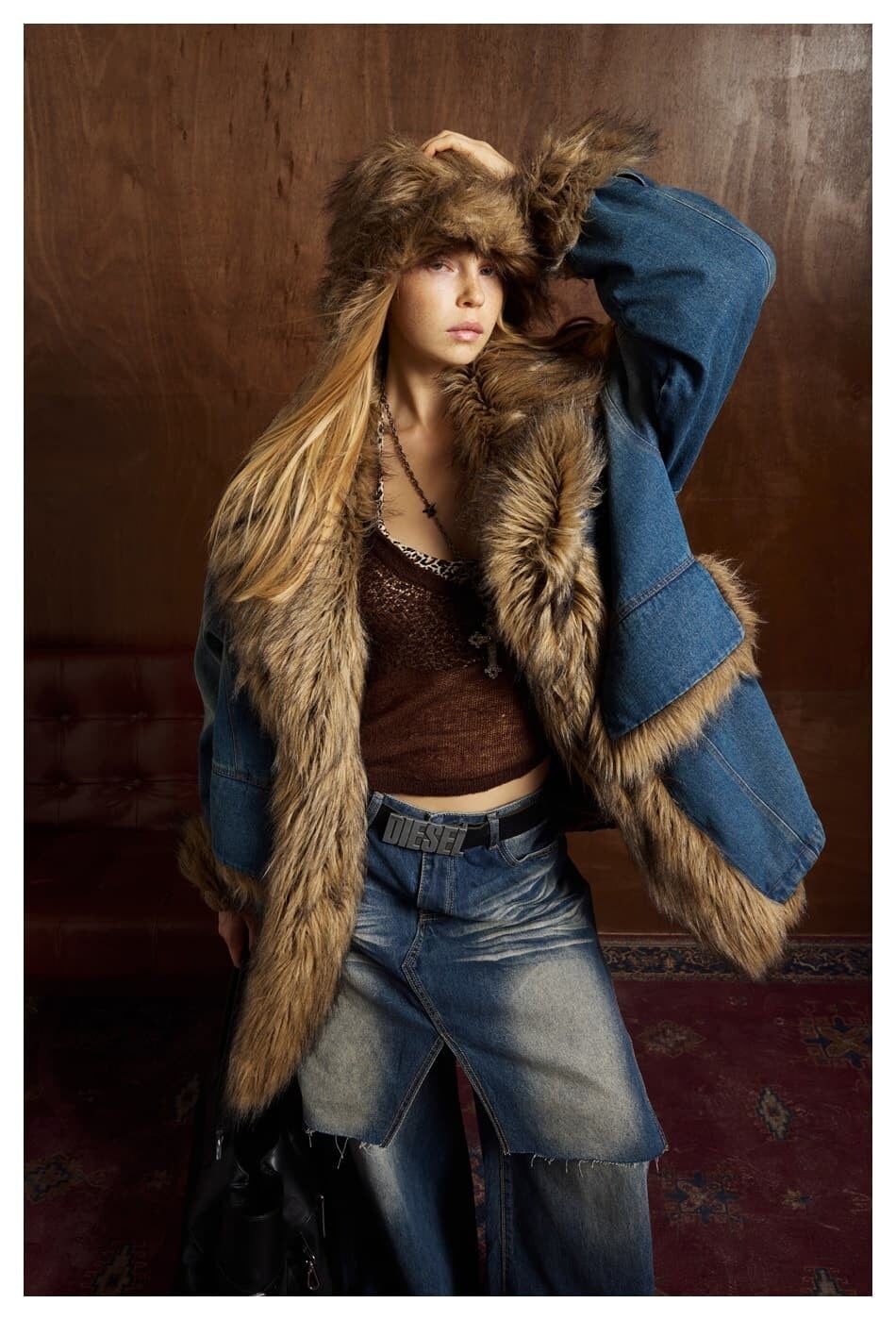 ウォッシュされたデニムと内側のファーの組み合わせがとてもクールです!