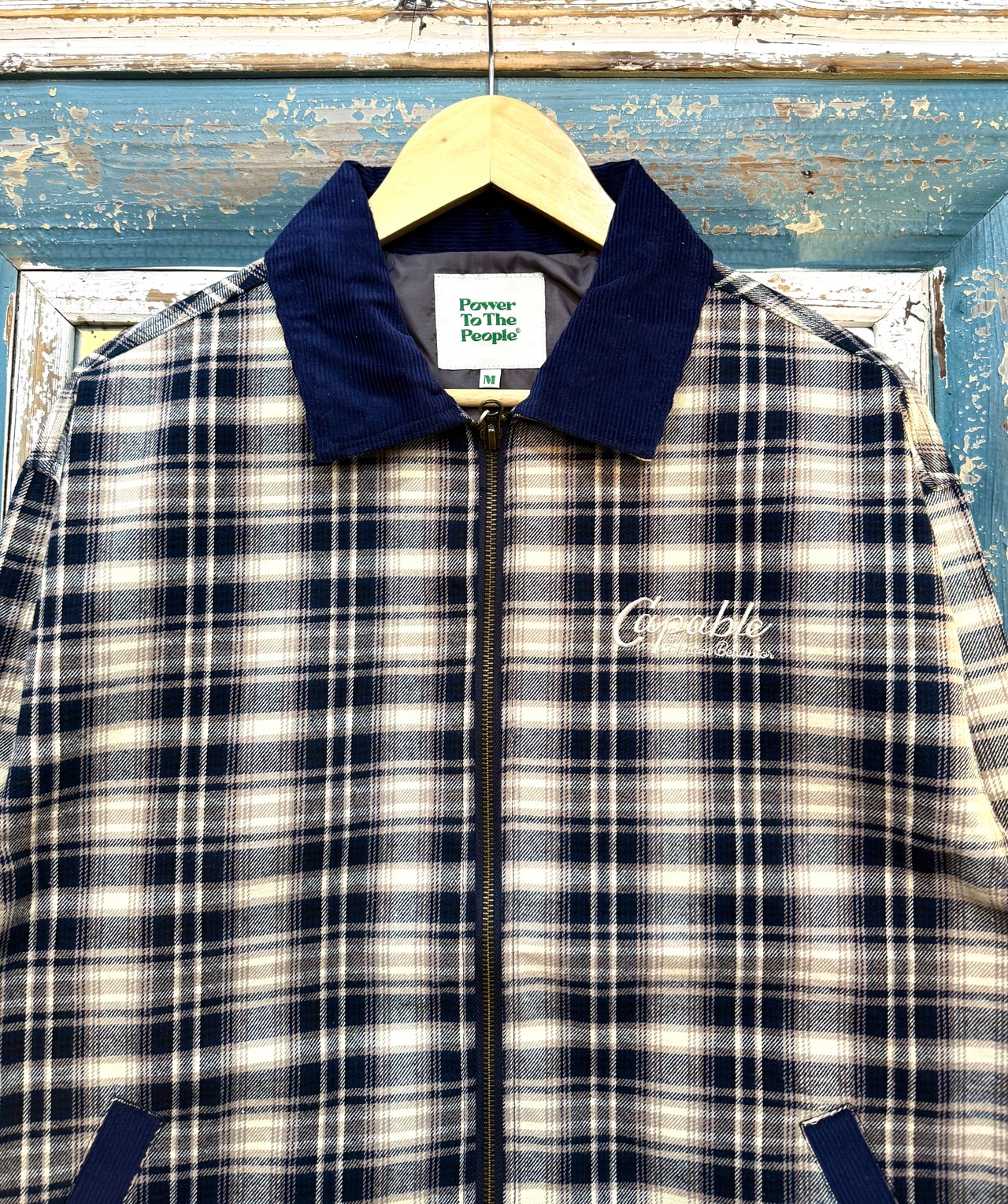 総柄チェックと襟コーデュロイが春コーデのトレンドにハマる軽アウターです