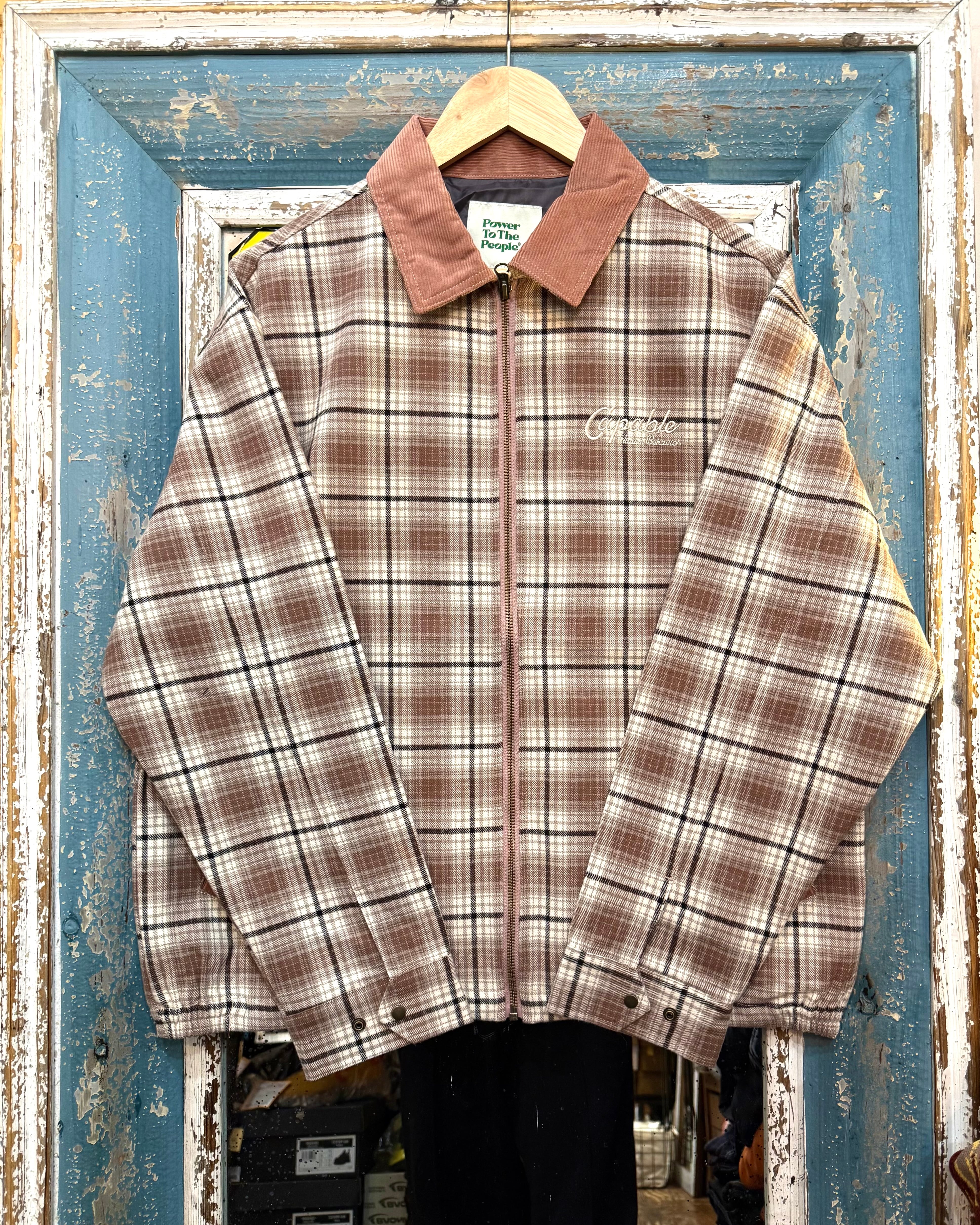 総柄チェックと襟コーデュロイが春コーデのトレンドにハマる軽アウター