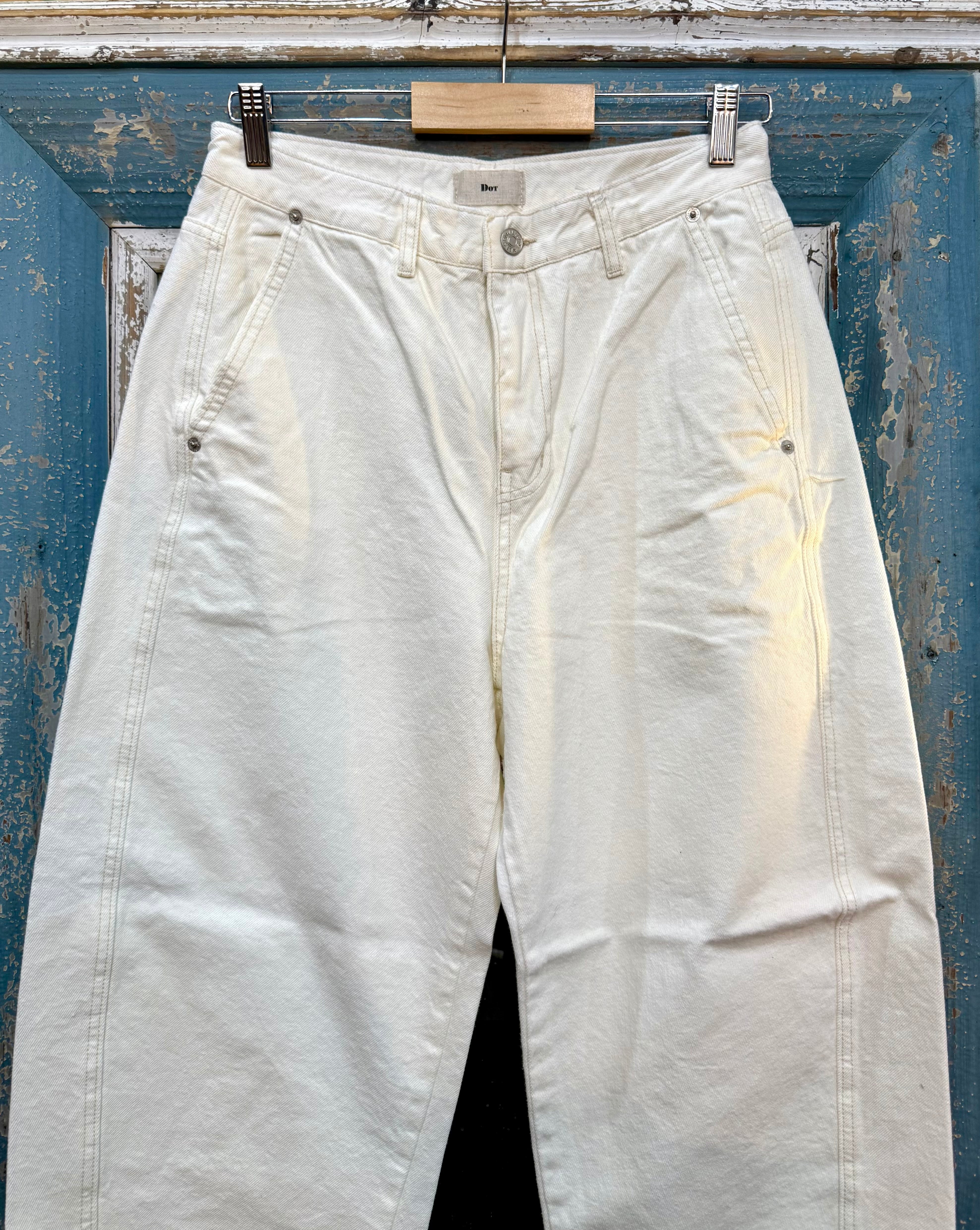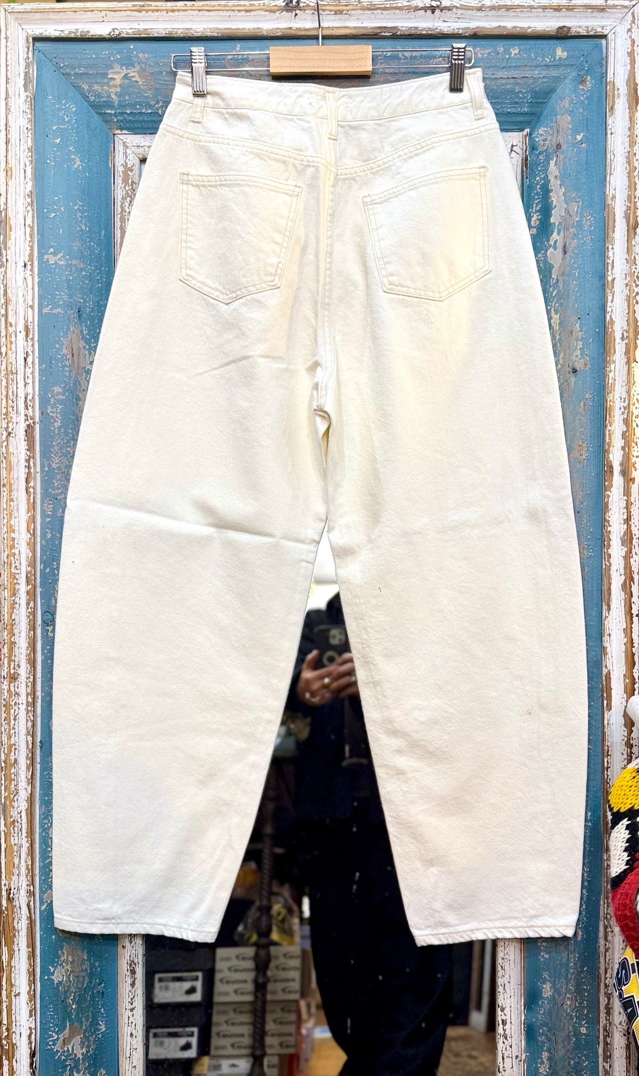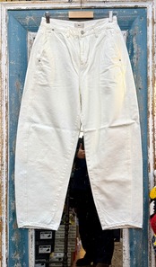 流行のカーブデニムが、今年のトレンドカラーであるホワイトで新登場!ワイドに立体カットされたデザインにより、美しいシルエットが際立ち、スタイリッシュな印象を与えます。短めのトップとの相性が抜群で、コーディネートの幅を広げ、さまざまなシーンで活躍するアイテムです。