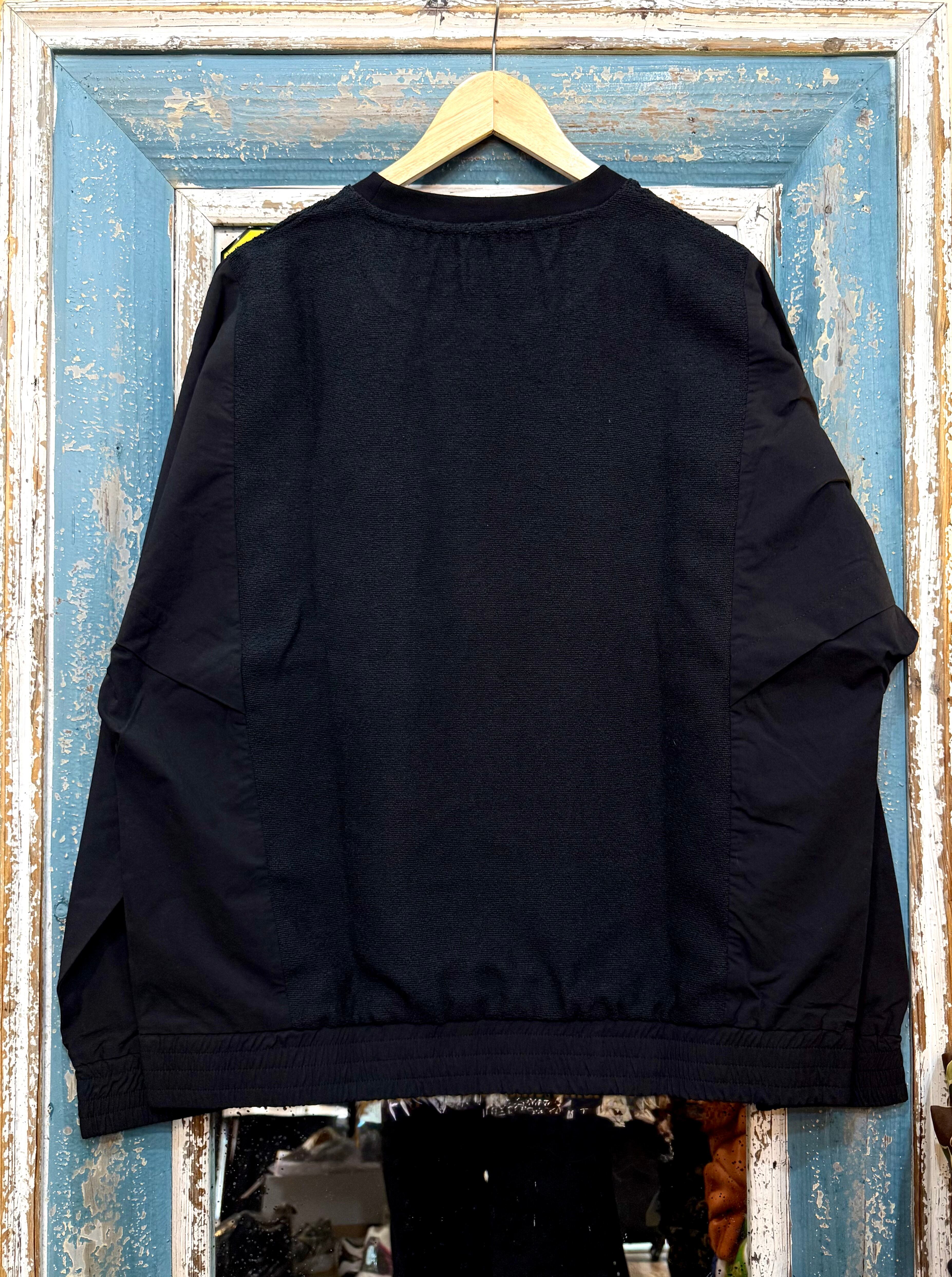 フロント部分にはブークレ(ループヤーン)素材を使用し、ふっくらとした質感と柔らかいタッチが特徴。袖とバックには軽量ナイロン素材を切り替え、動きやすく、シワになりにくい機能性を持たせています。異素材のコントラストがスタイルに奥行きを与え、季節感を引き立てくれます