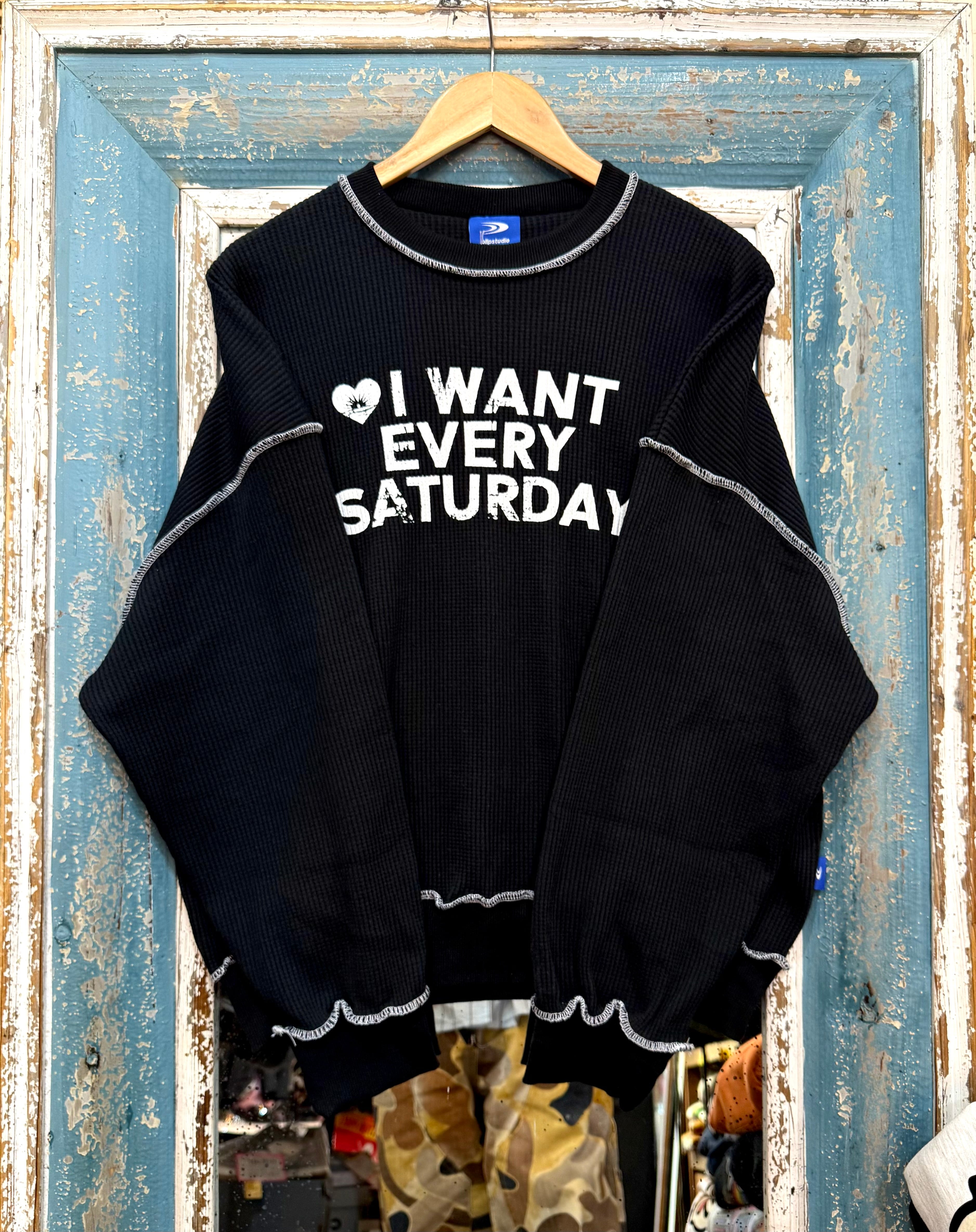 厚手のサーマル生地を使用した、短丈のトレーナー。サーマル特有の温かさと柔らかさが、心地よい着心地を提供します。配色の縫い目がアクセントとなり、シンプルながらもおしゃれな印象を与えてくれます。
