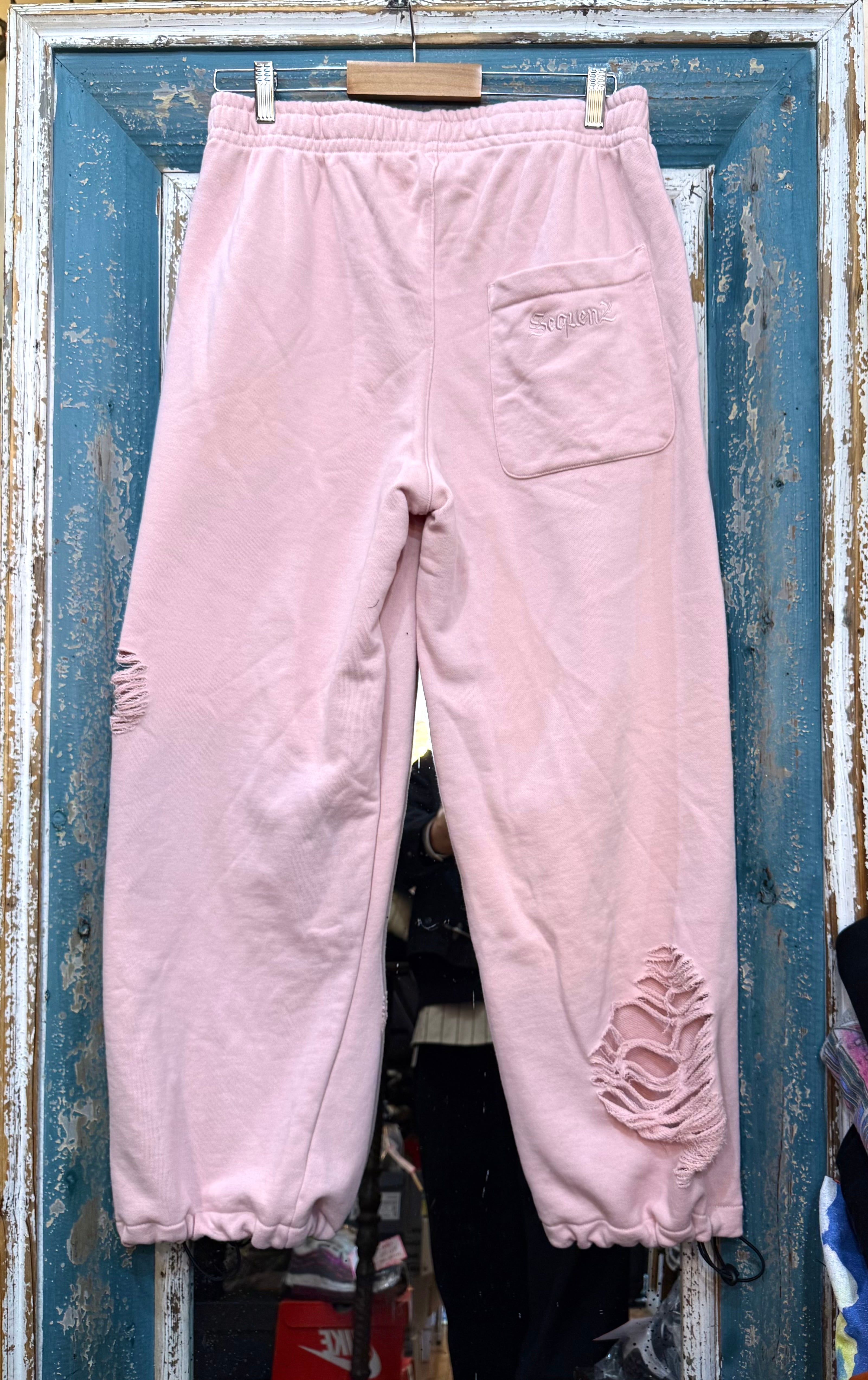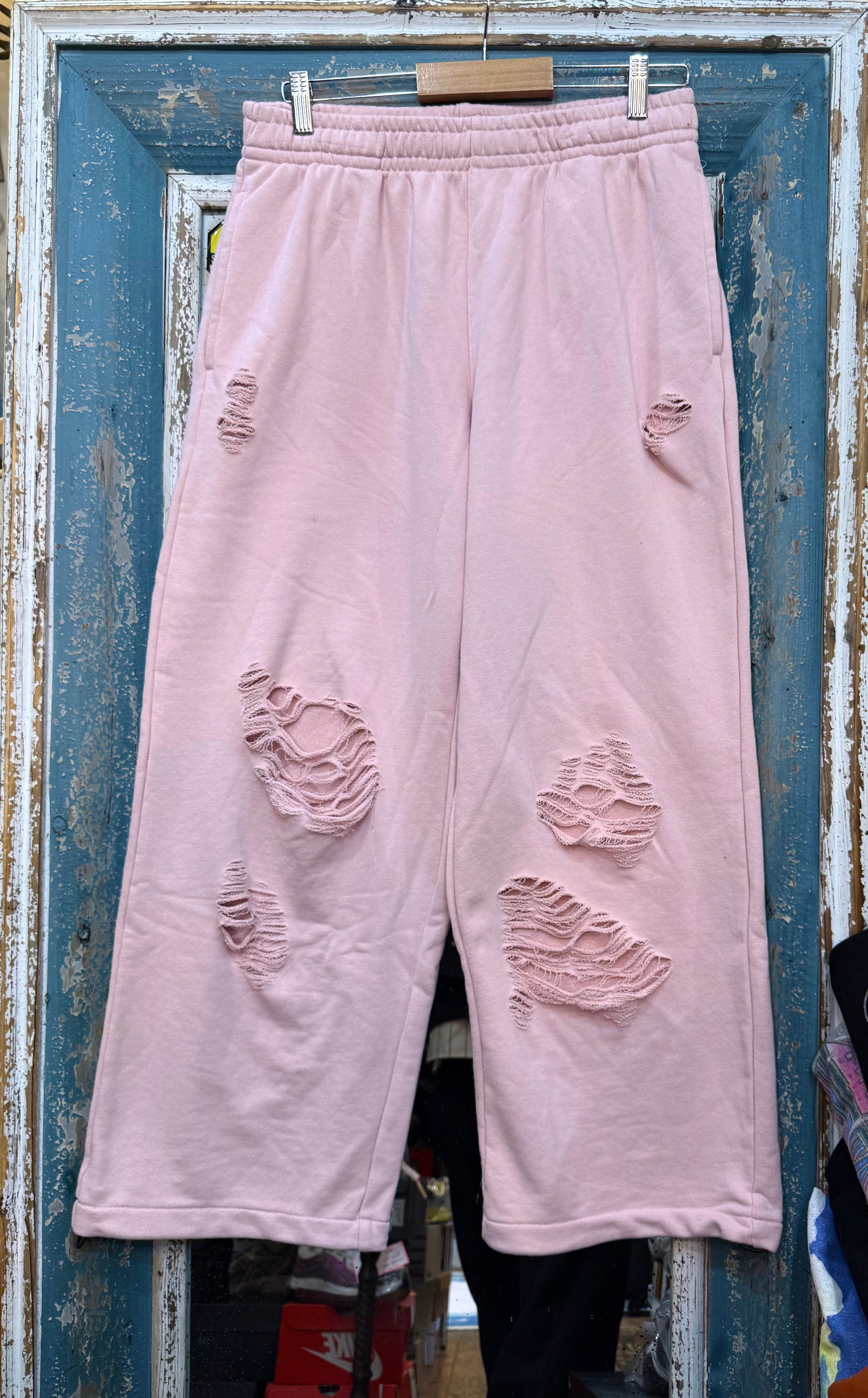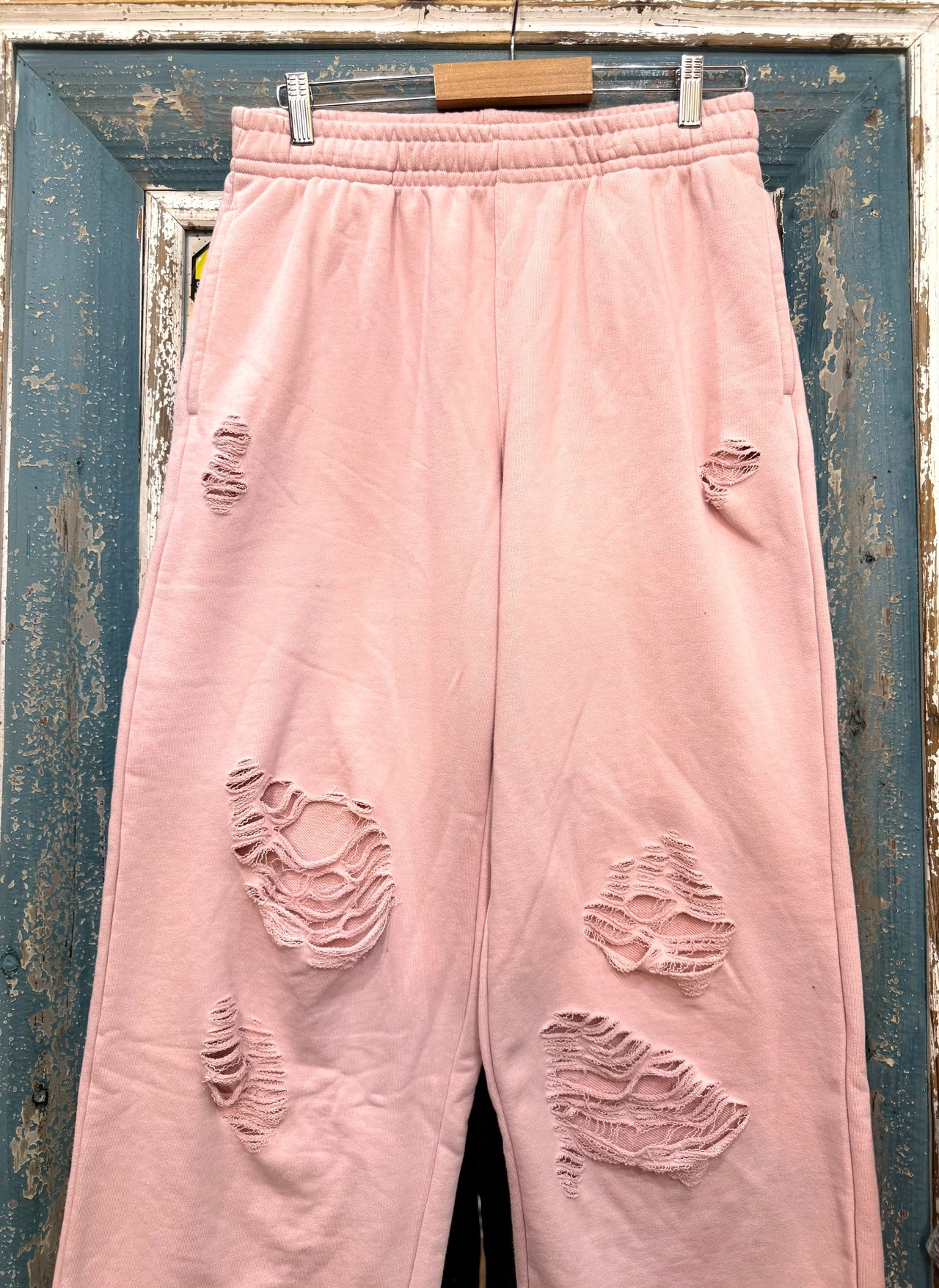 人気のワイドシルエットが特徴のダメージスウェットパンツが新たに登場!トレンドのピンクカラーが目を引き、カジュアルなコーディネートに華やかさをプラスします。ボリュームのある靴と合わせてサーマルをレイヤードすれば、こなれたスタイルが完成。友達とのお出かけやリラックスタイムなど、様々なシーンで活躍する一品です。ダメージ加工が施されたデザインは、個性的であなたを引き立てること間違いなしです!