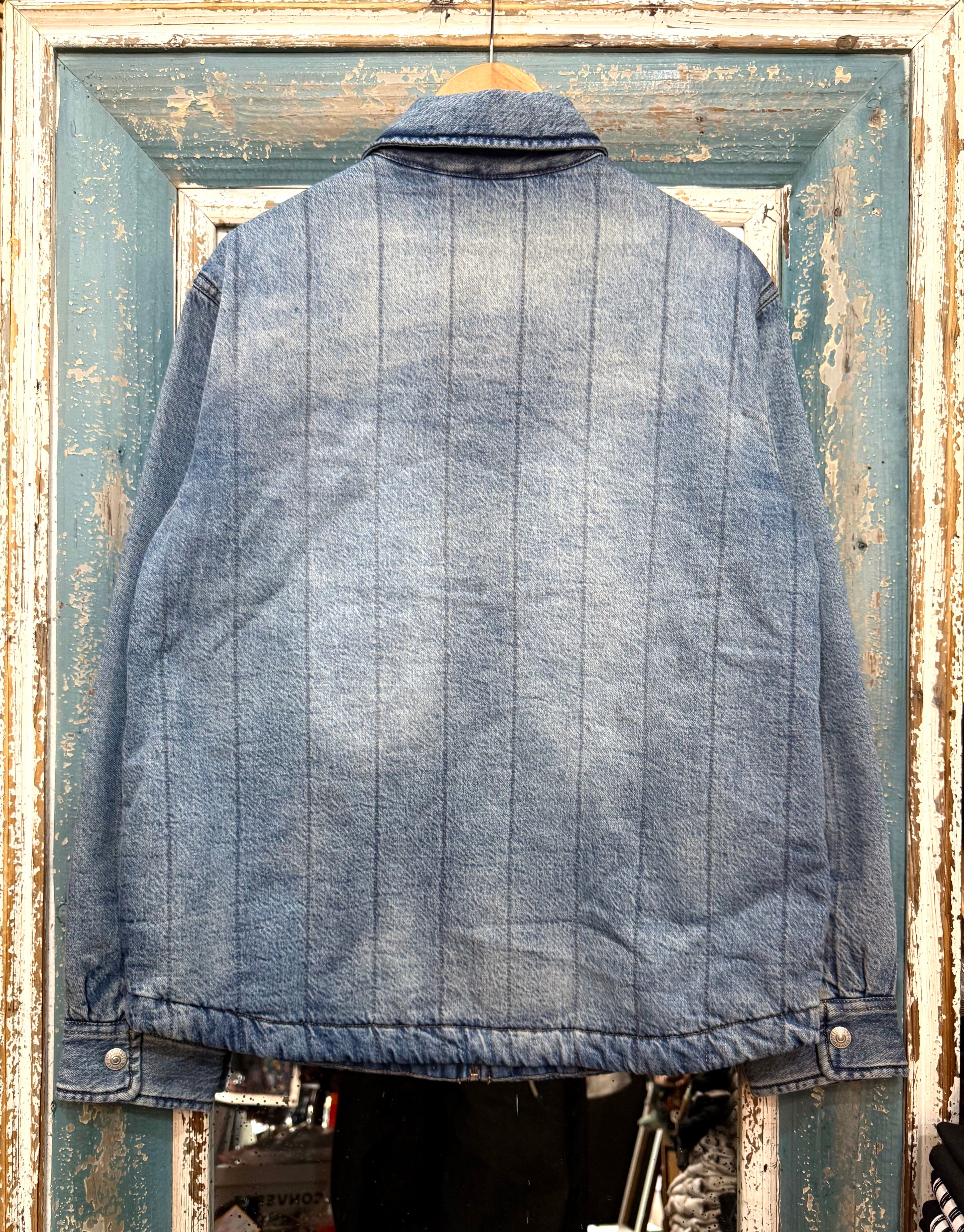 薄く中綿が施されたリーバイスのデニムジップジャケットは、キルティングのような生地感と絶妙なウォッシュ感を兼ね備えています。軽やかでありながら保温性もあり、秋冬のスタイルに華やかさを加えます。洗練された印象を与えるデザインは、カジュアルからキレイめスタイルまで幅広く対応可能です。どんなアイテムともマッチし、トレンド感溢れるコーディネートを演出します。