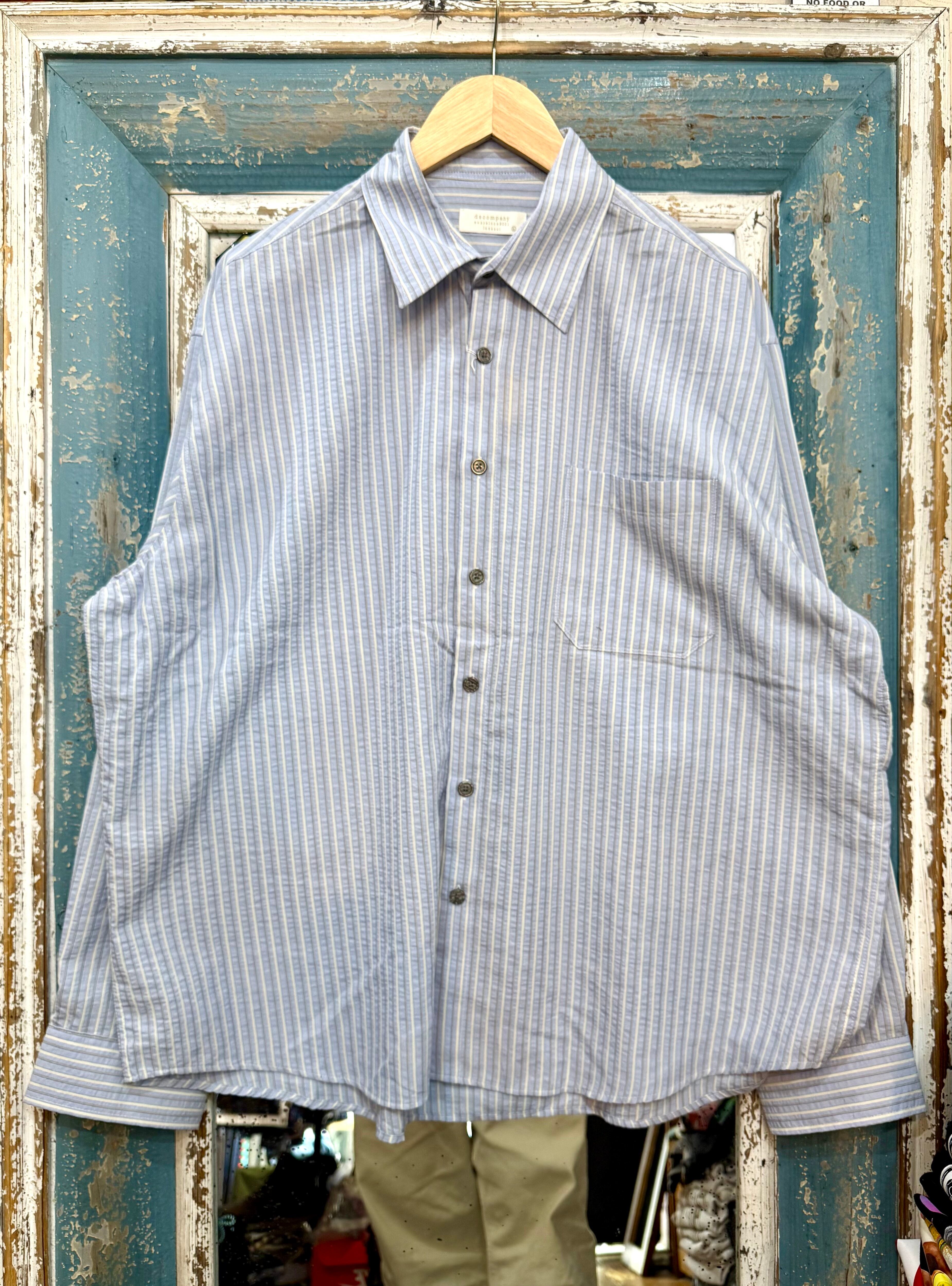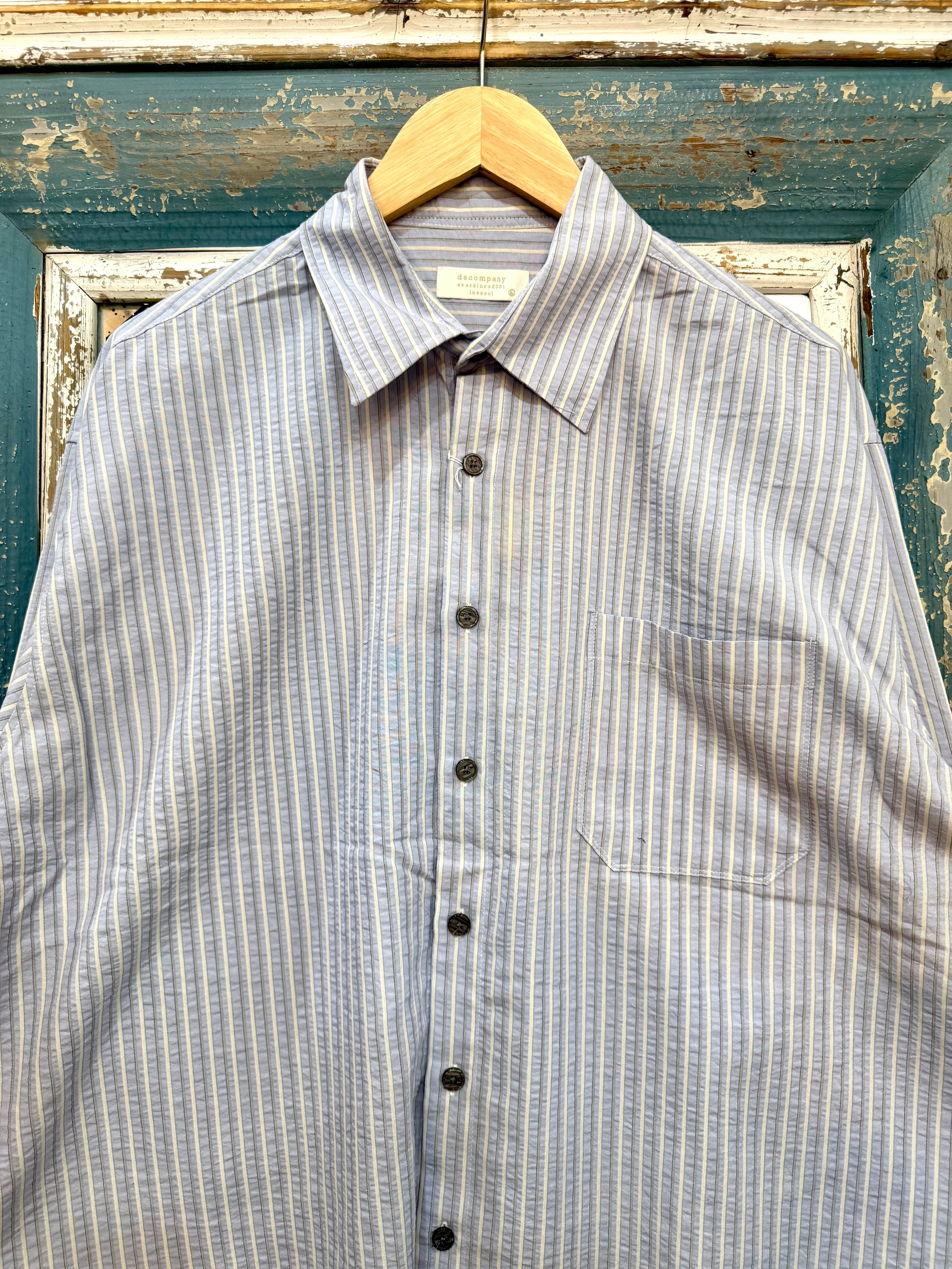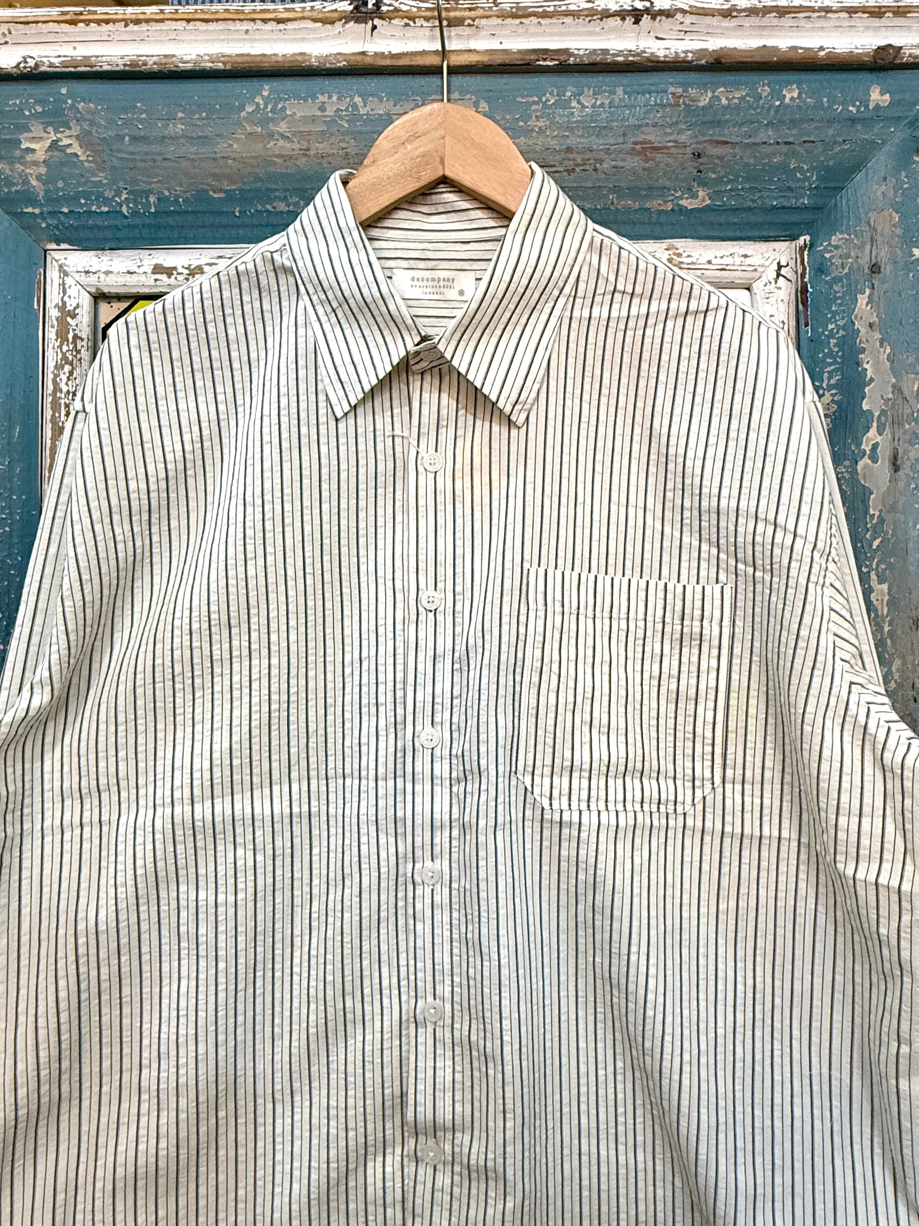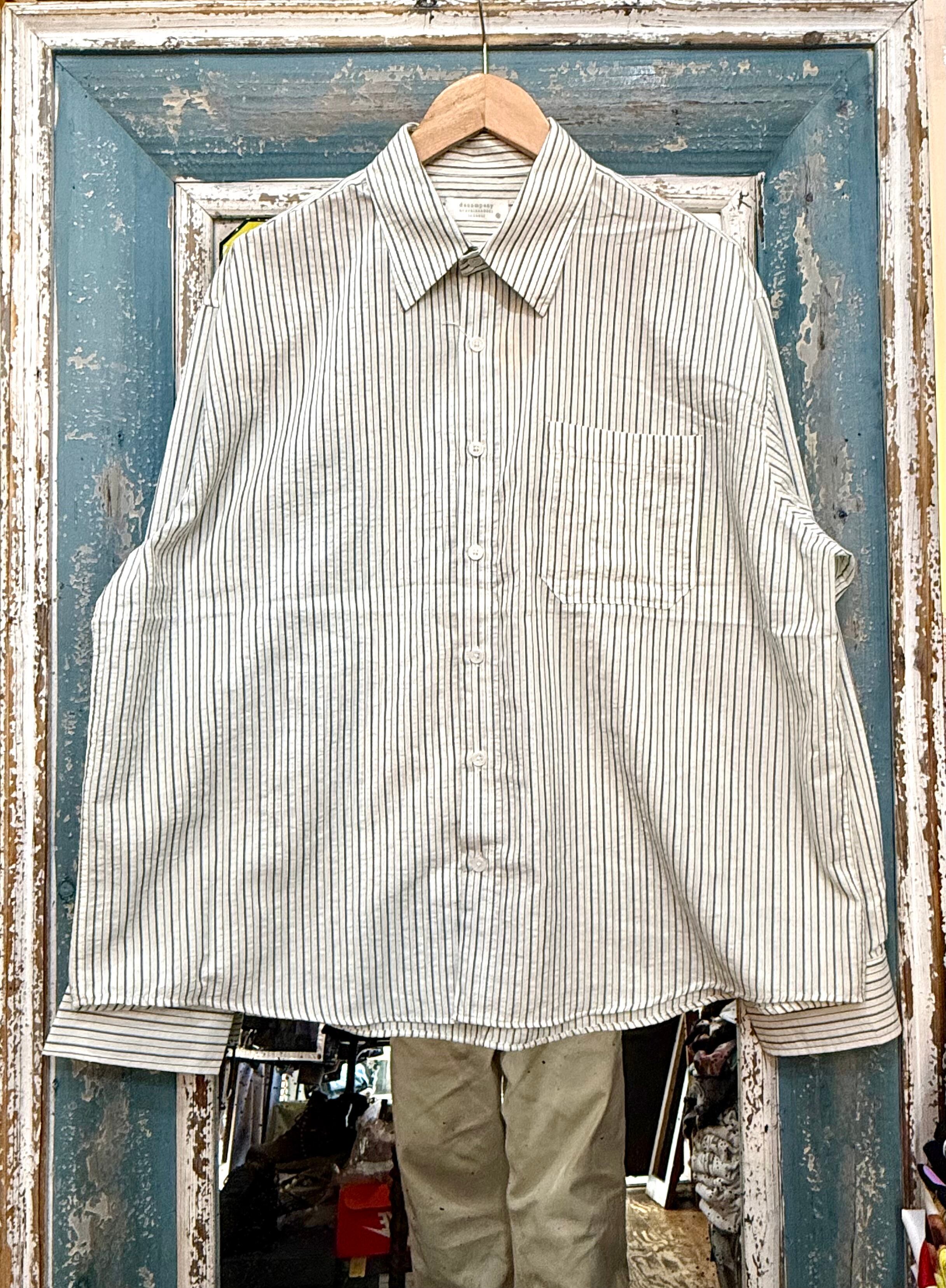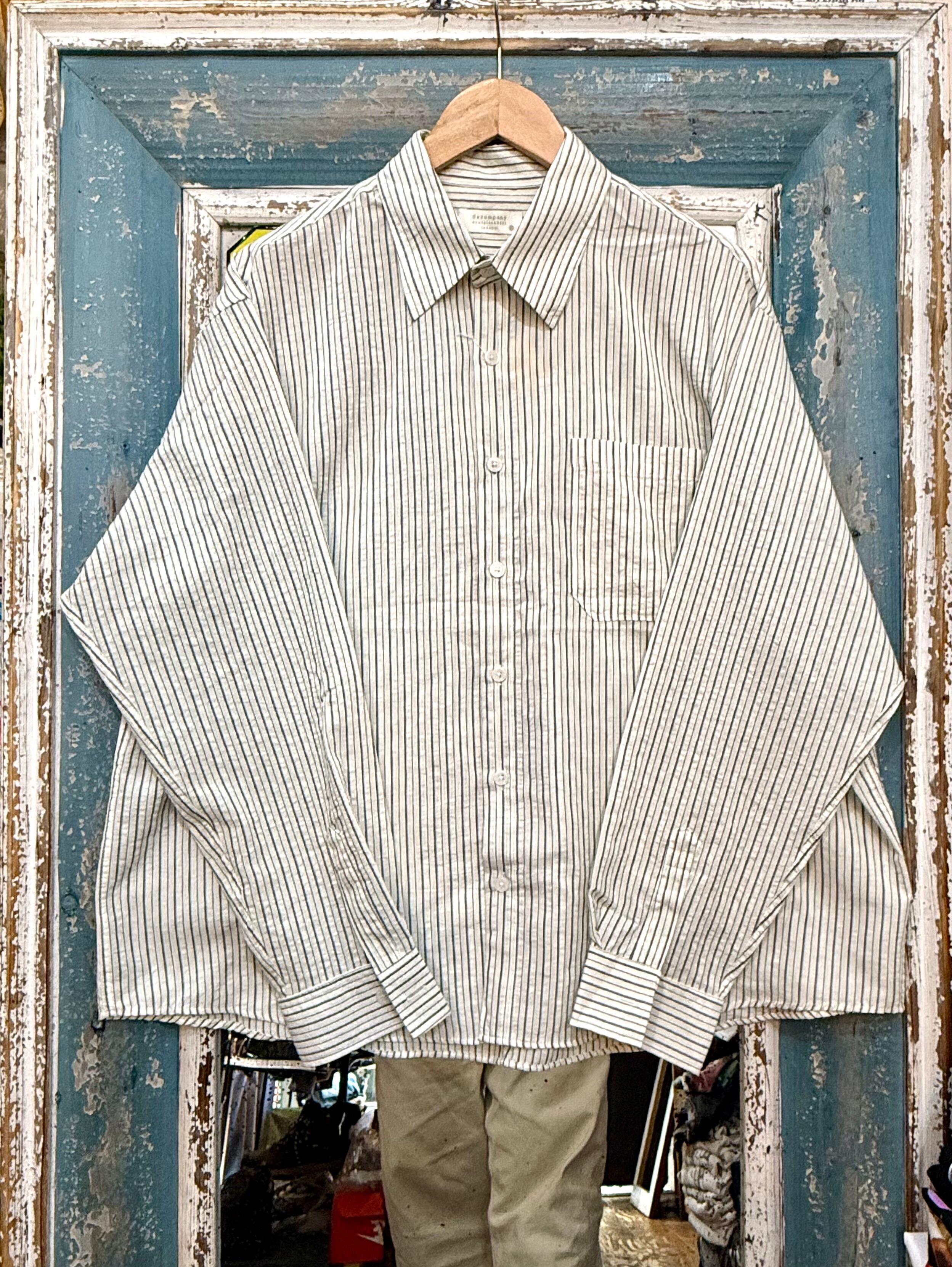 サッカー地のような生地に凹凸のある薄手のコットンストライプシャツは、ゆったりサイズで洗いざらしでも着こなせる魅力的なアイテムです。シンプルなデザインなので、デニムやチノパンと合わせることで、日常のカジュアルスタイルからおしゃれなコーディネートまで幅広く対応できること間違いなし!快適な着心地で、長時間の着用にも最適です。