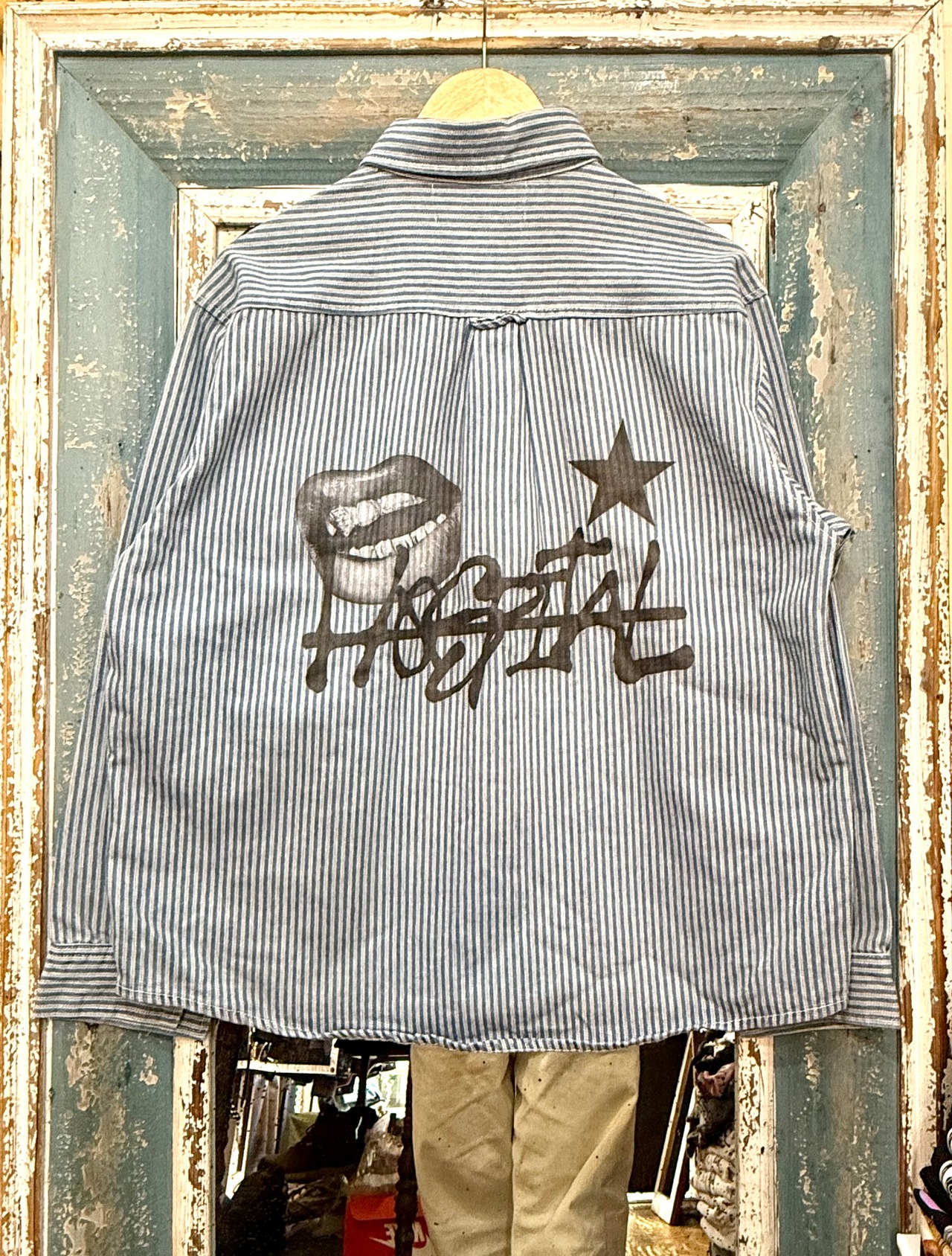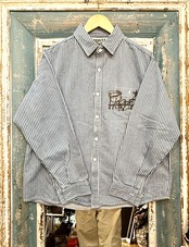しっかりとしたデニム生地を使用し、ストライプの織りが印象的なシャツです。胸とバックのプリントがアクセントとなり、おしゃれを引き立てるアイテムになっています。カジュアルなデニムと合わせやすく、デイリースタイルから特別な日まで幅広く活躍します。快適な着心地で、一日中楽しむことができる魅力的なデザインです。