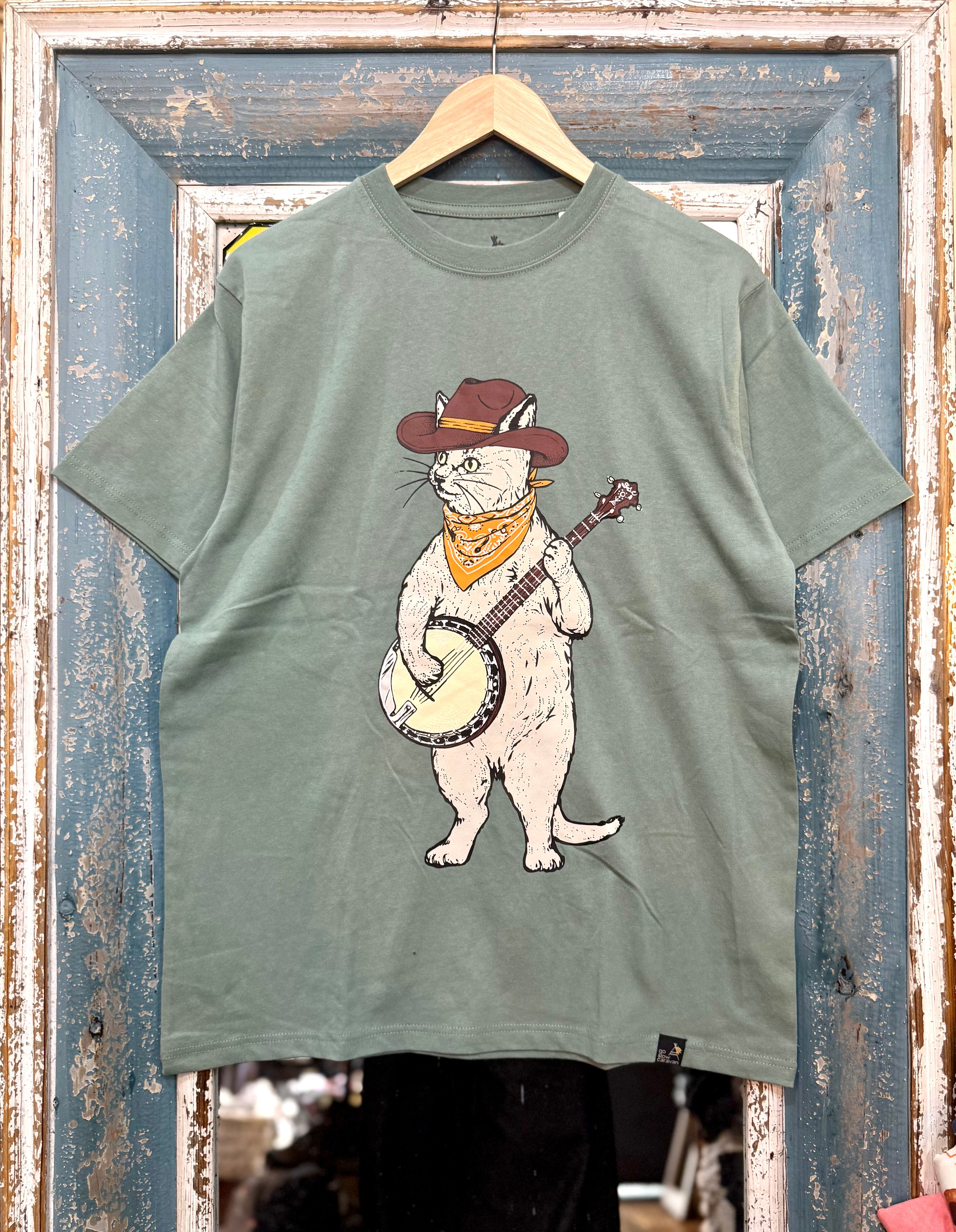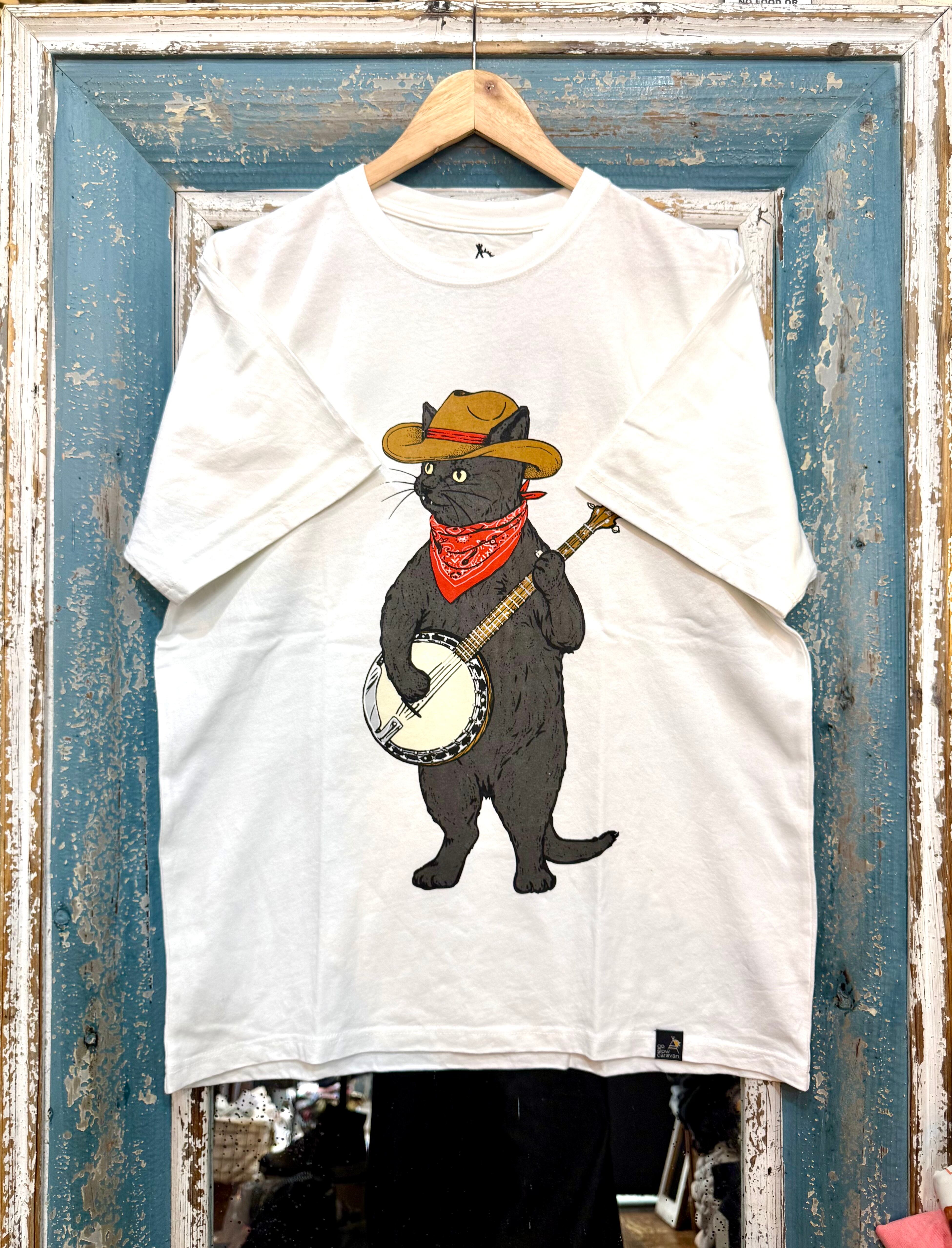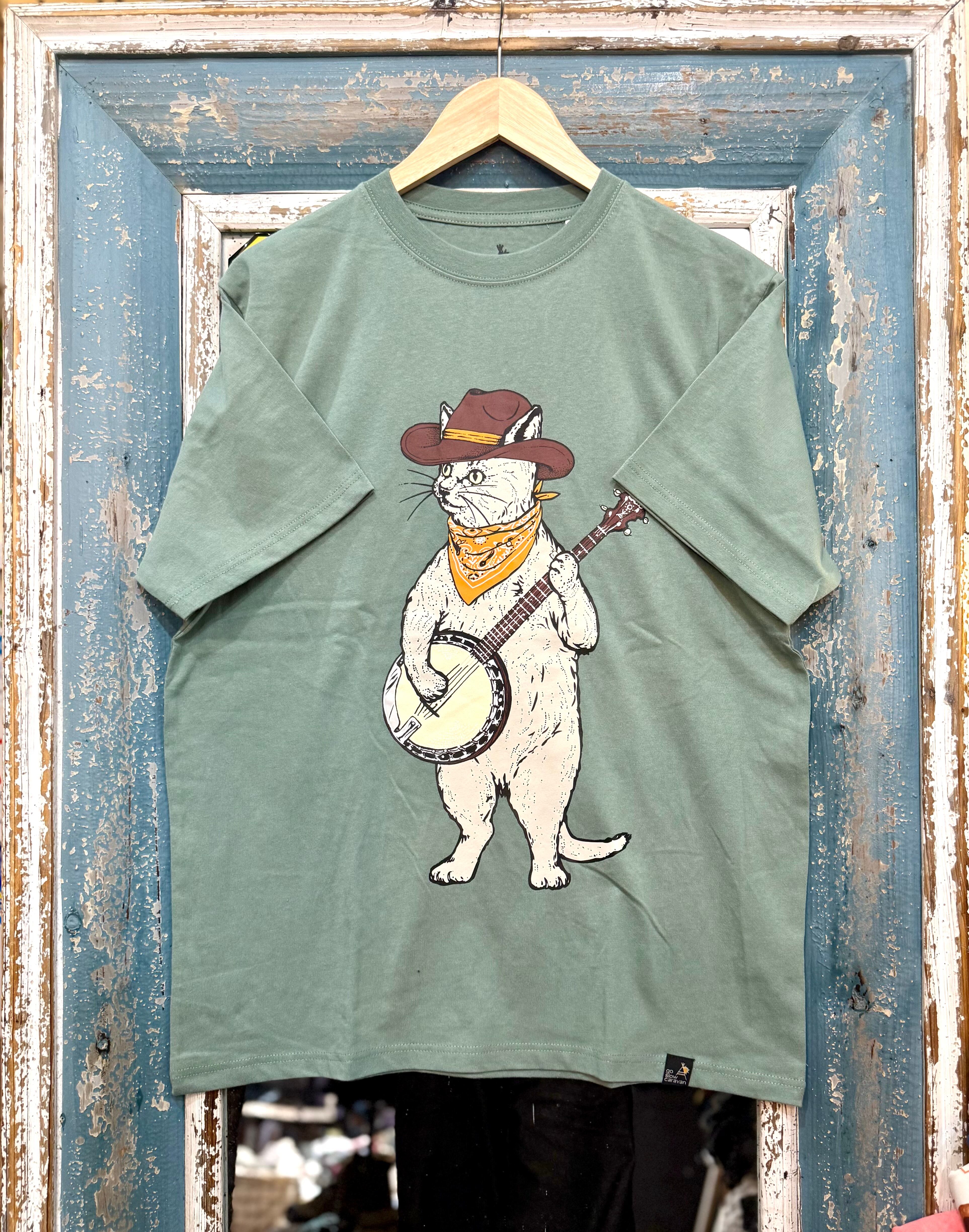 go slow caravan バンジョー猫プリントTシャツ