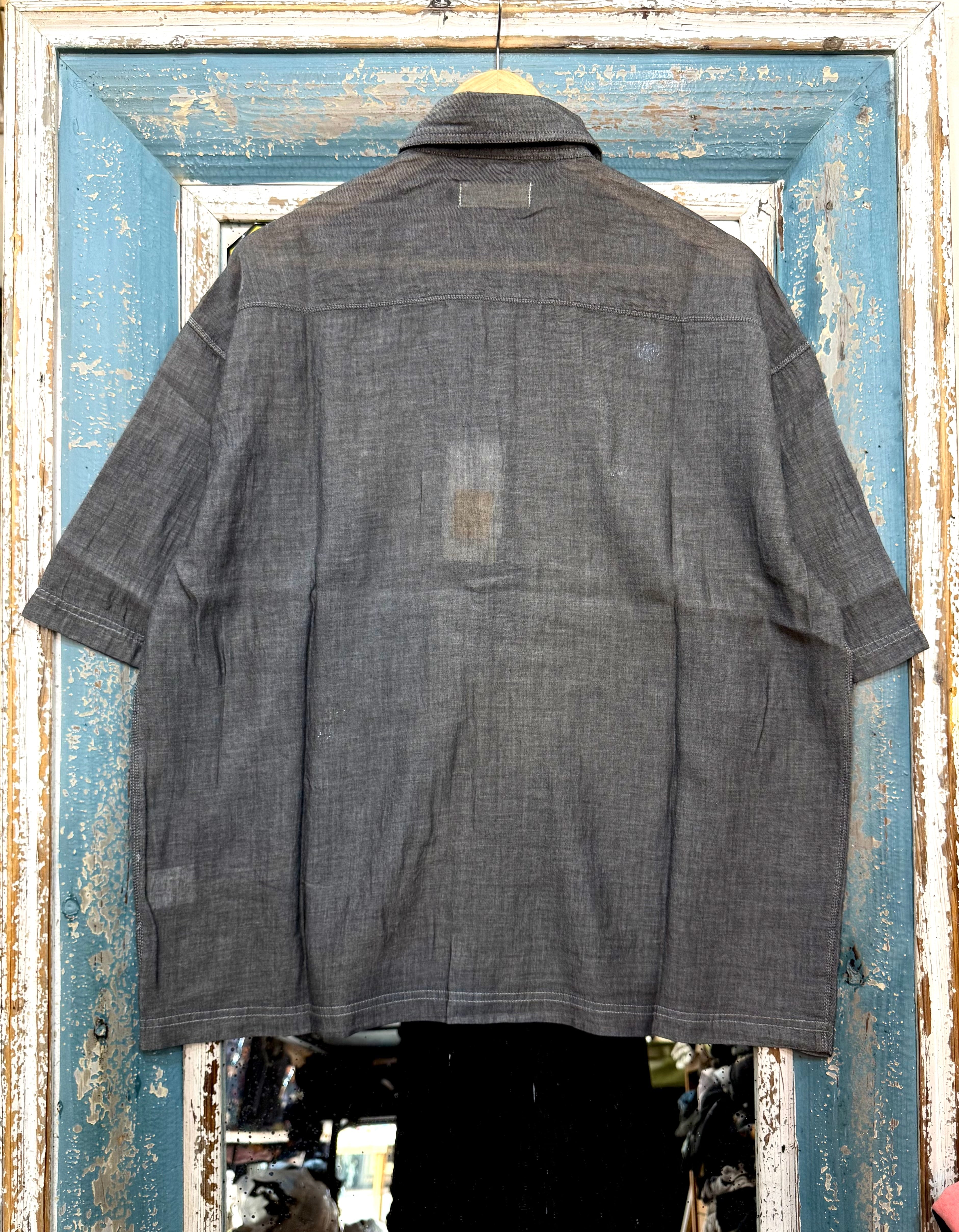 ■point・2.2ozの超軽量デニム素材・ほんのり透けるシアー感で清涼感アップ・トレンド感のあるオーバーサイズシルエット・着回しやすいレギュラーカラー仕様・羽織りとしても使える万能シャツ