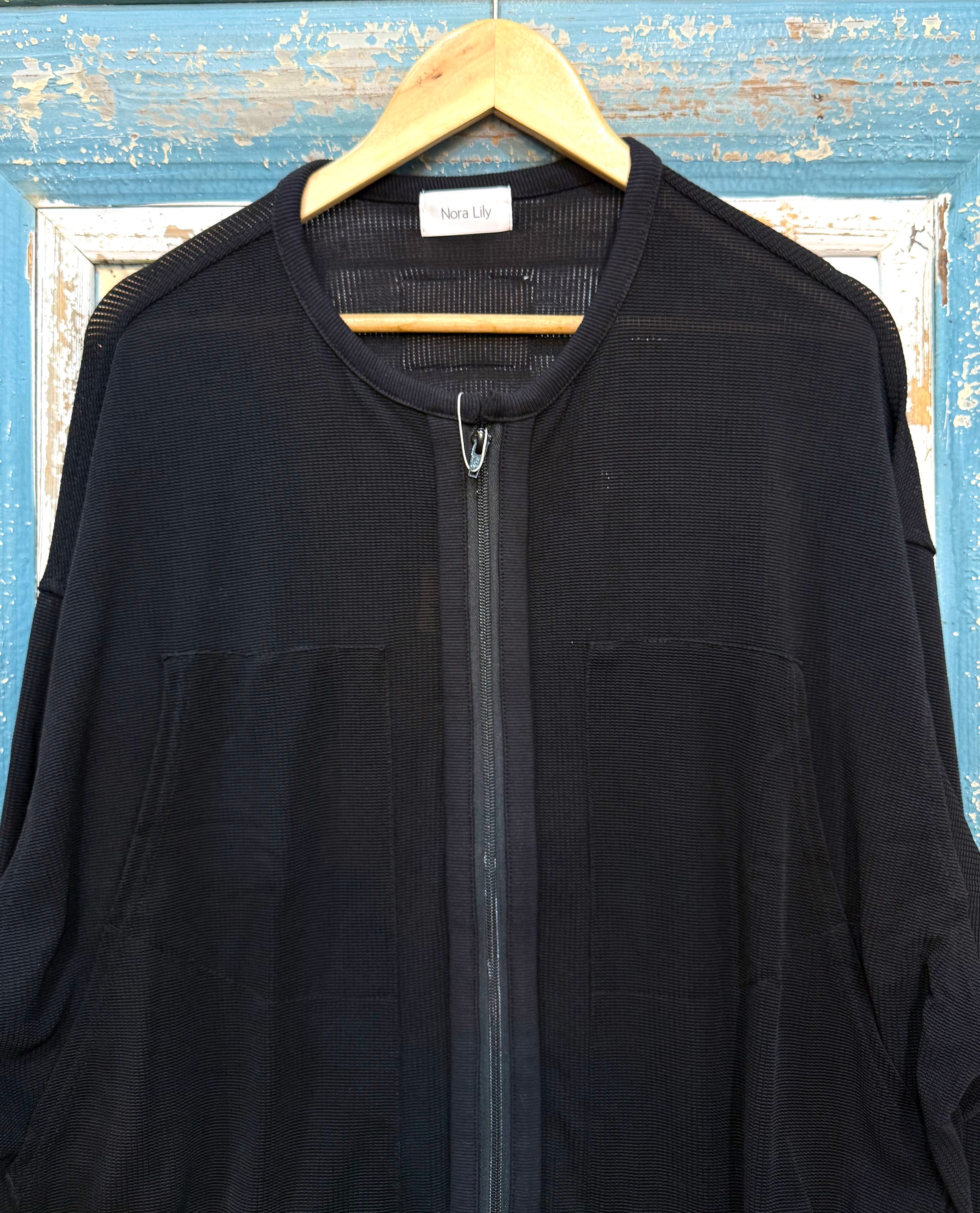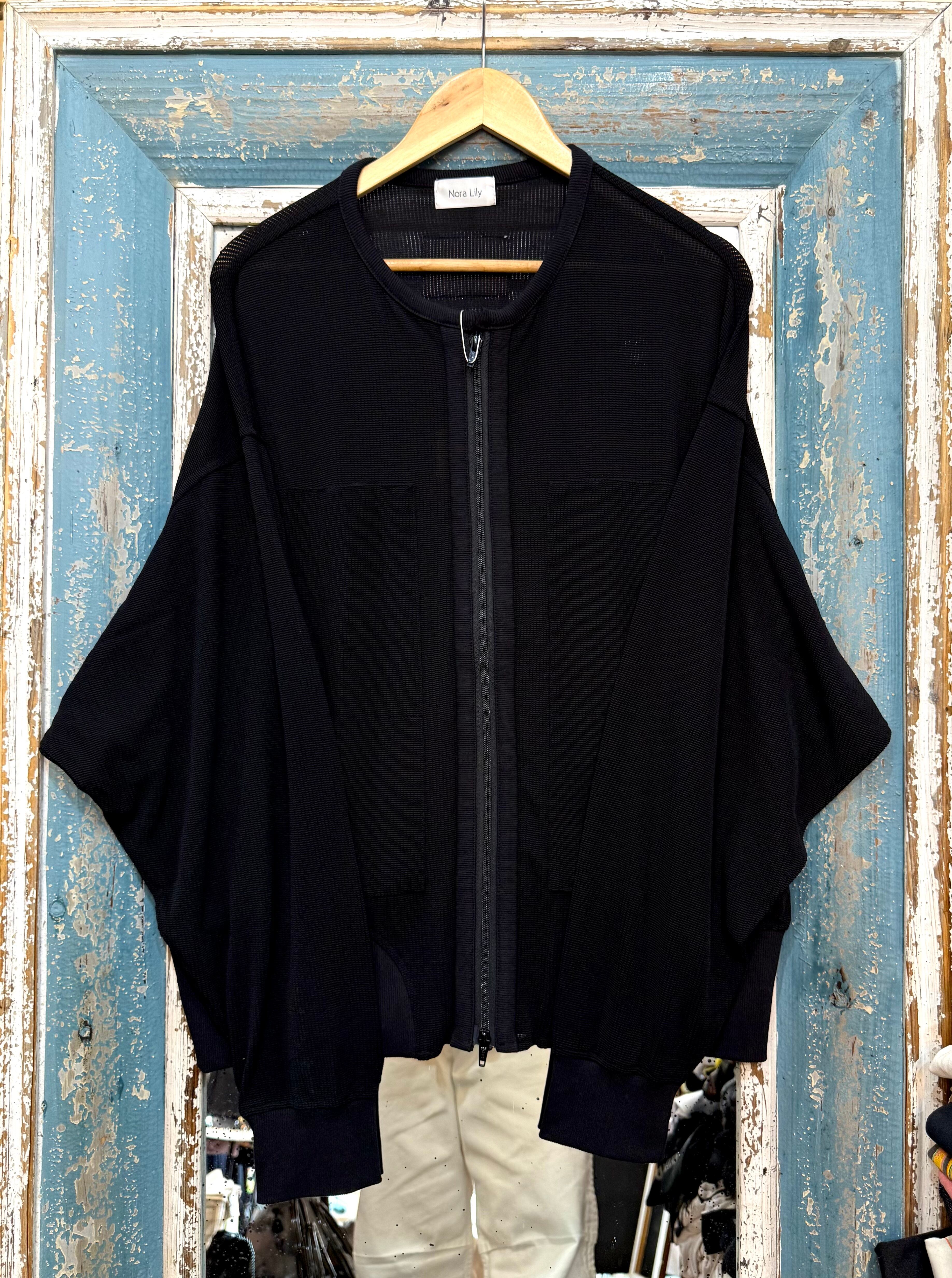 【Nora Lily】Shadow Mesh Crew Neck Zip Blouson