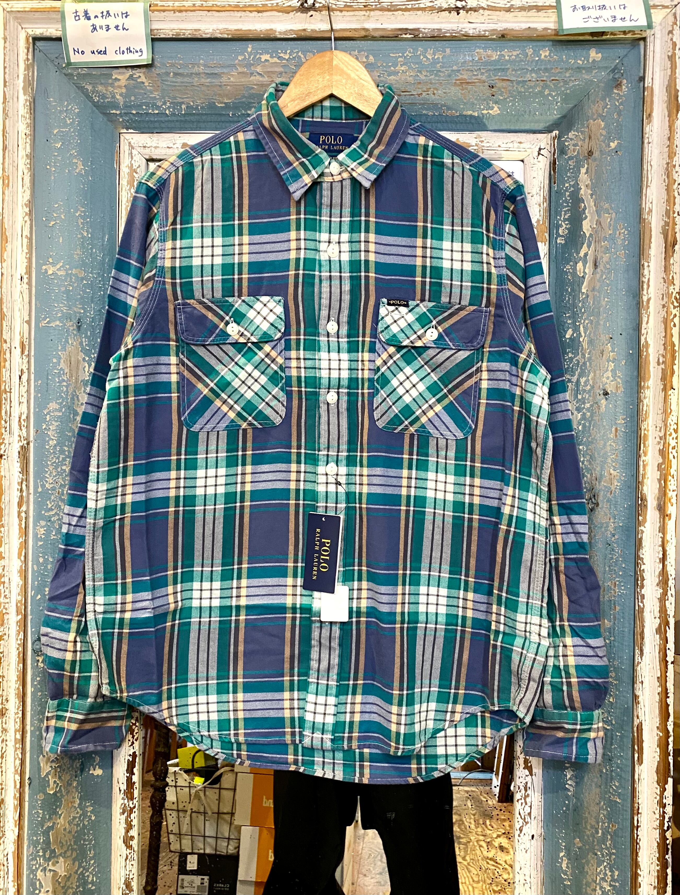 ウォッシュされた風合いと、グリーンベースのアメリカンなチェックが格好良いシャツです。