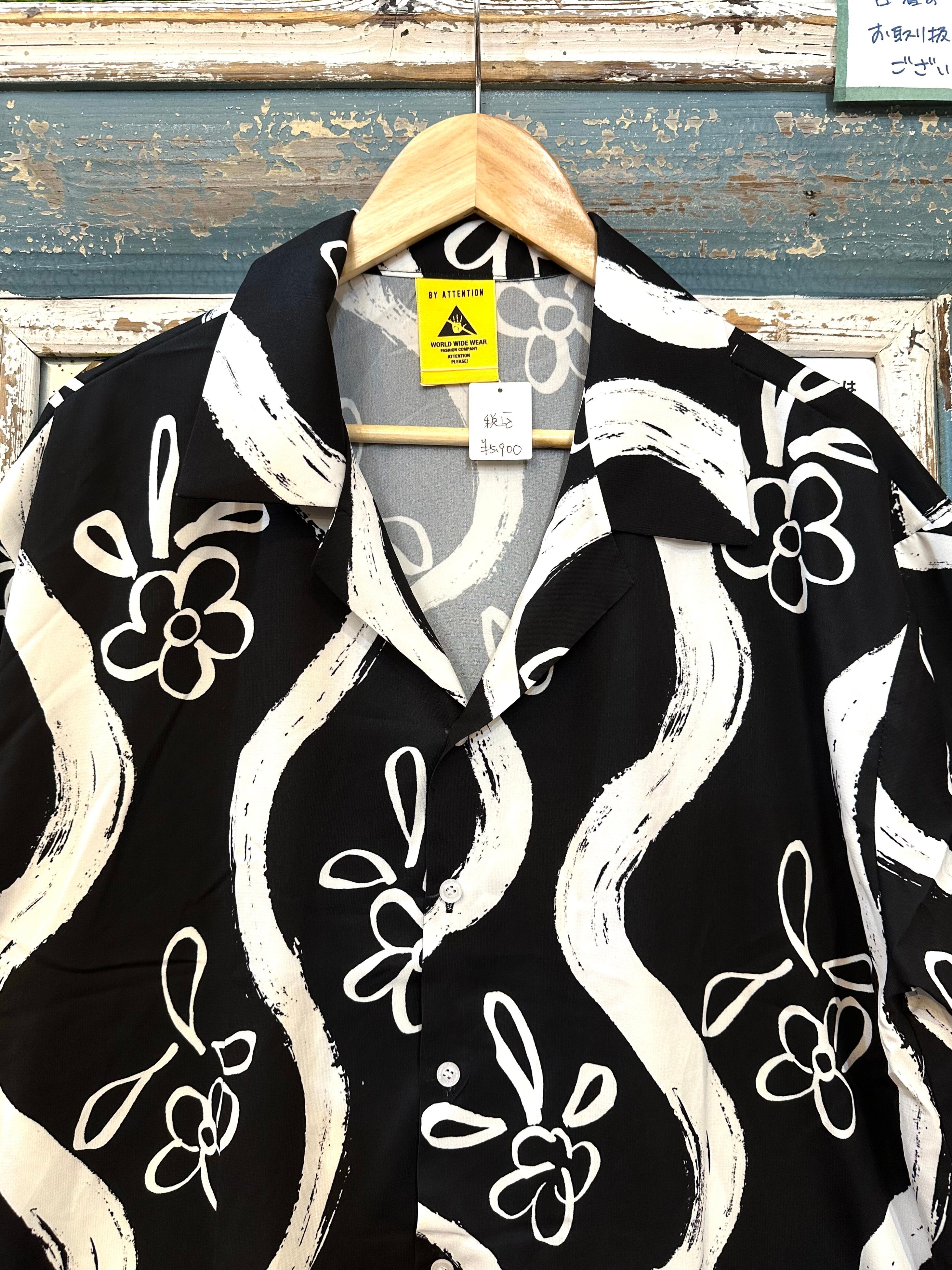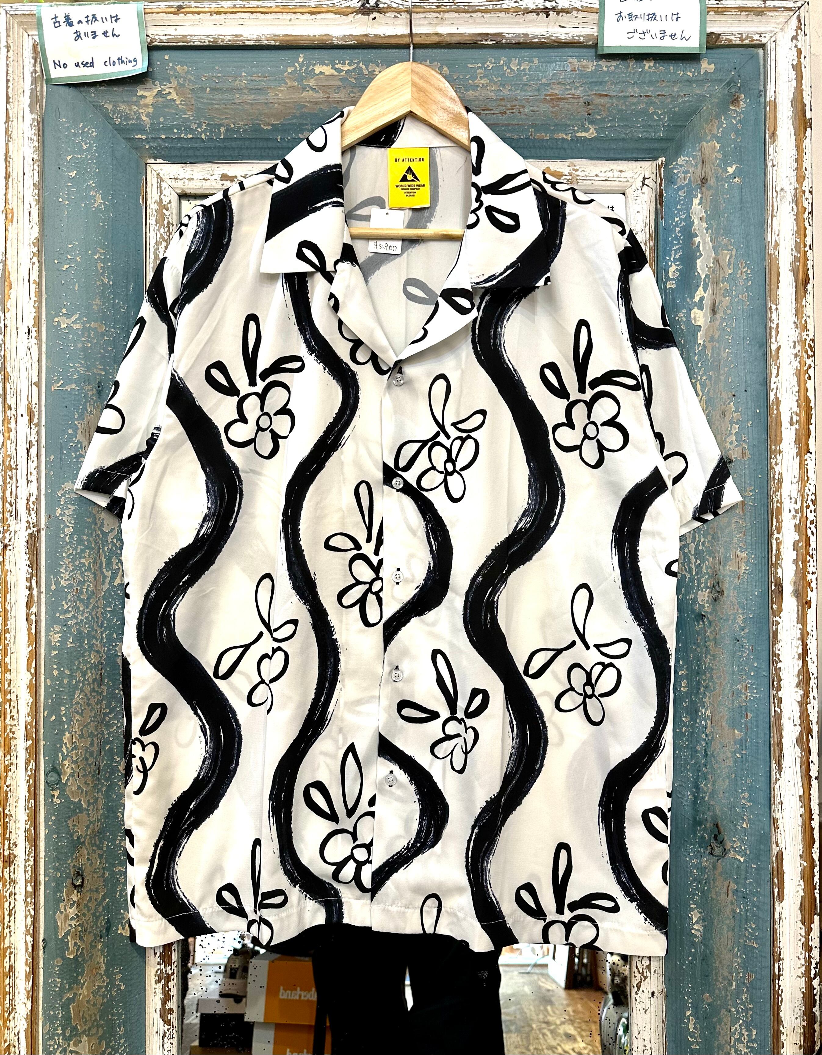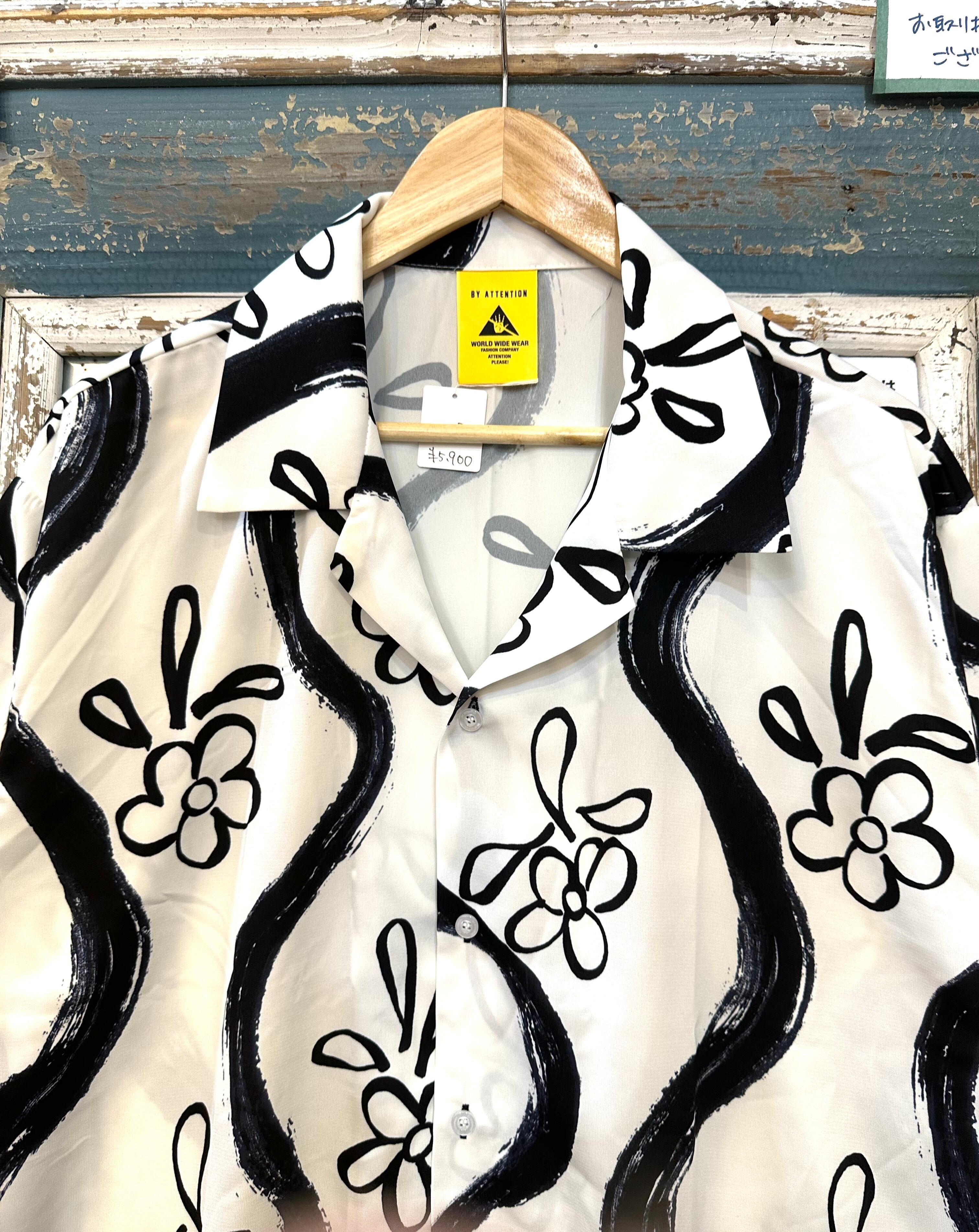 手描き風プリント 半袖シャツ
