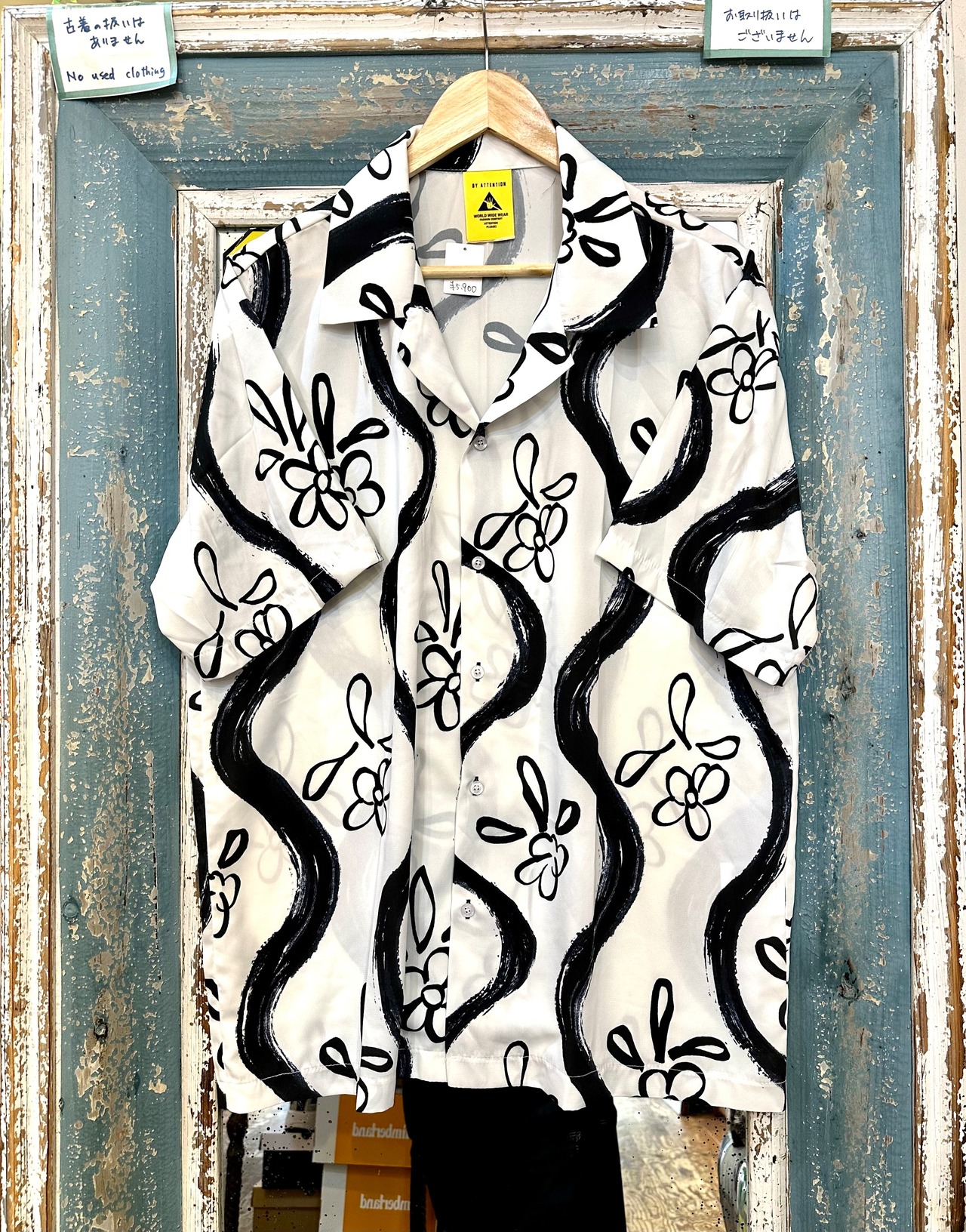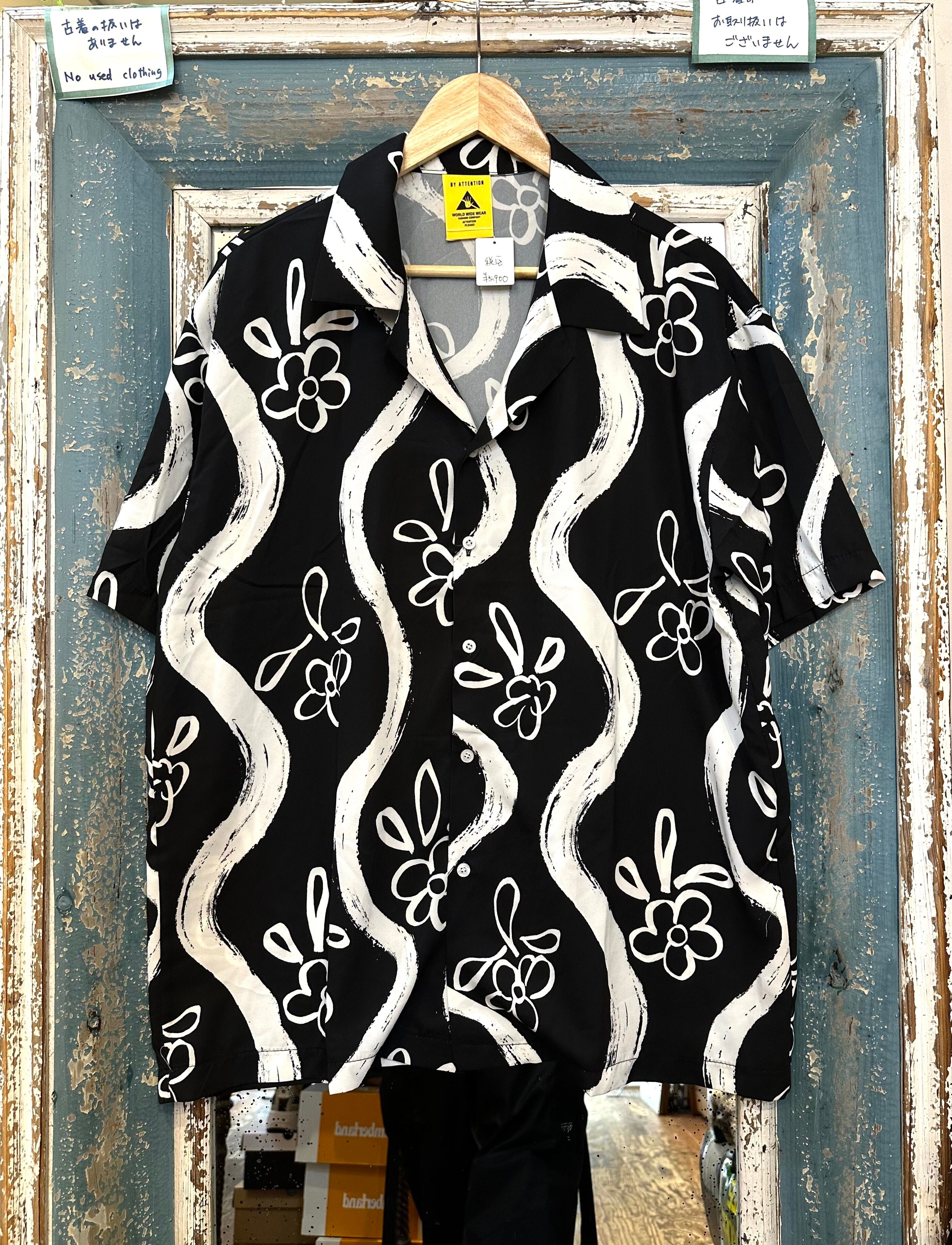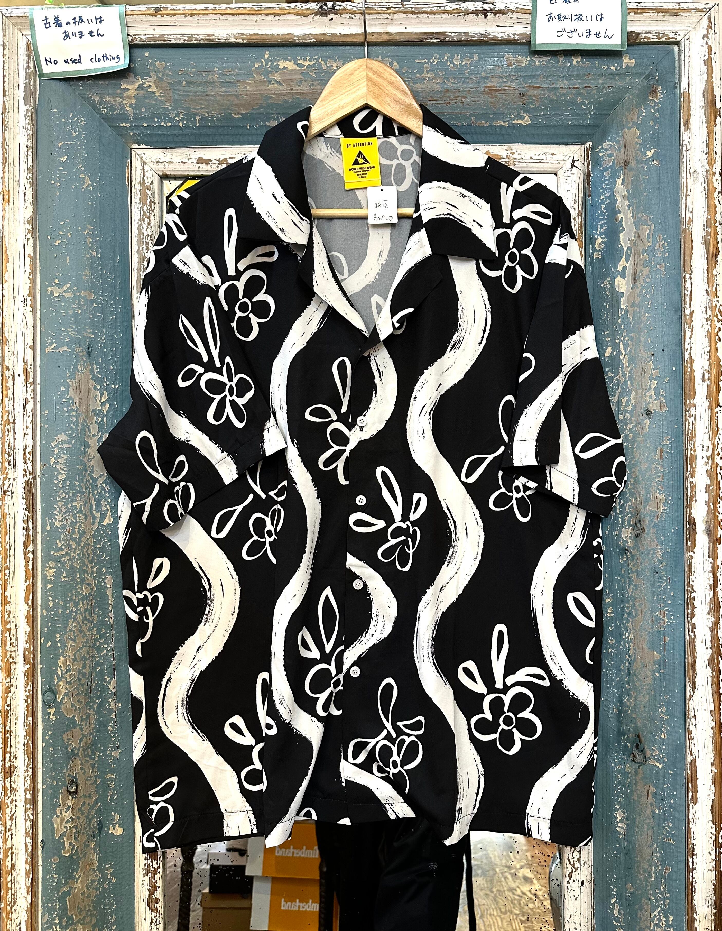 手描き風プリント 半袖シャツ