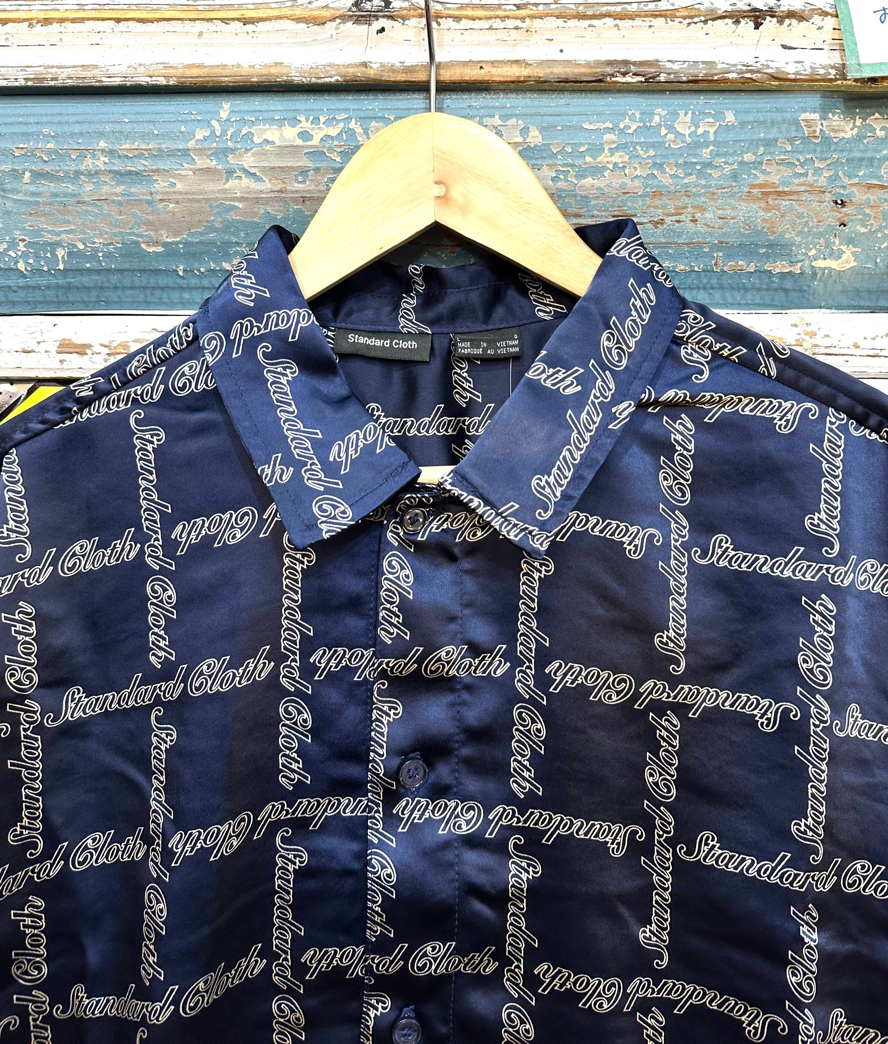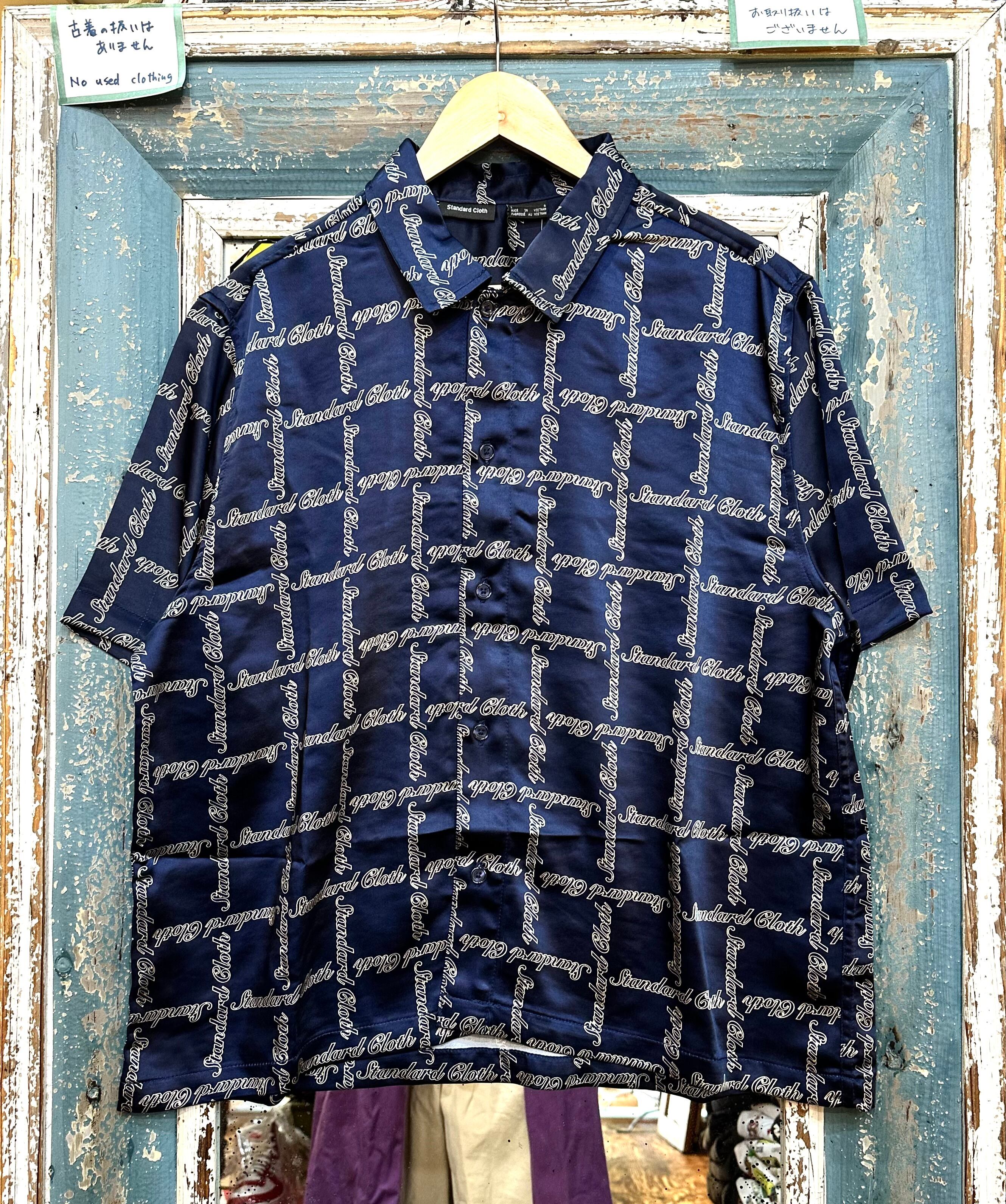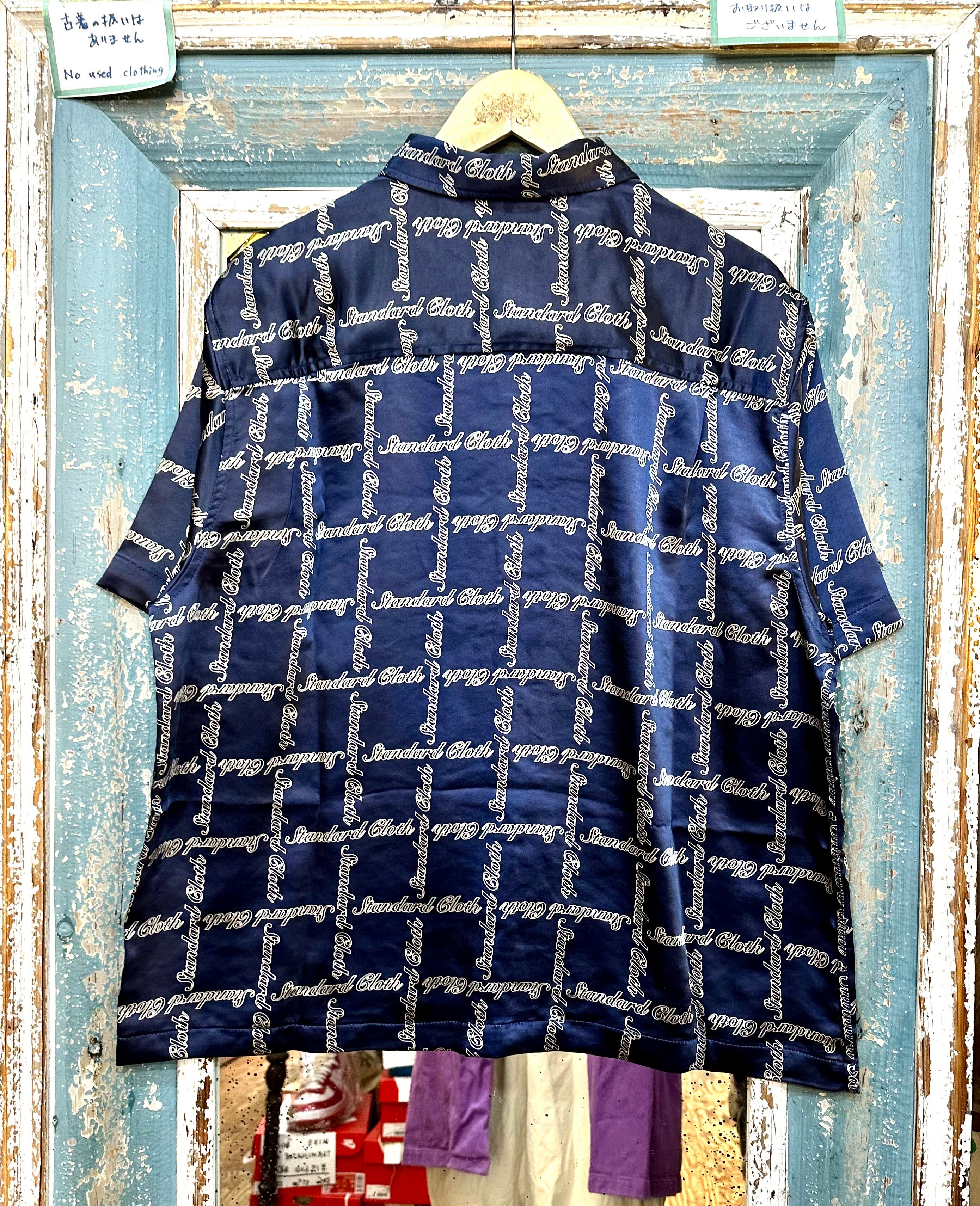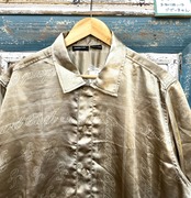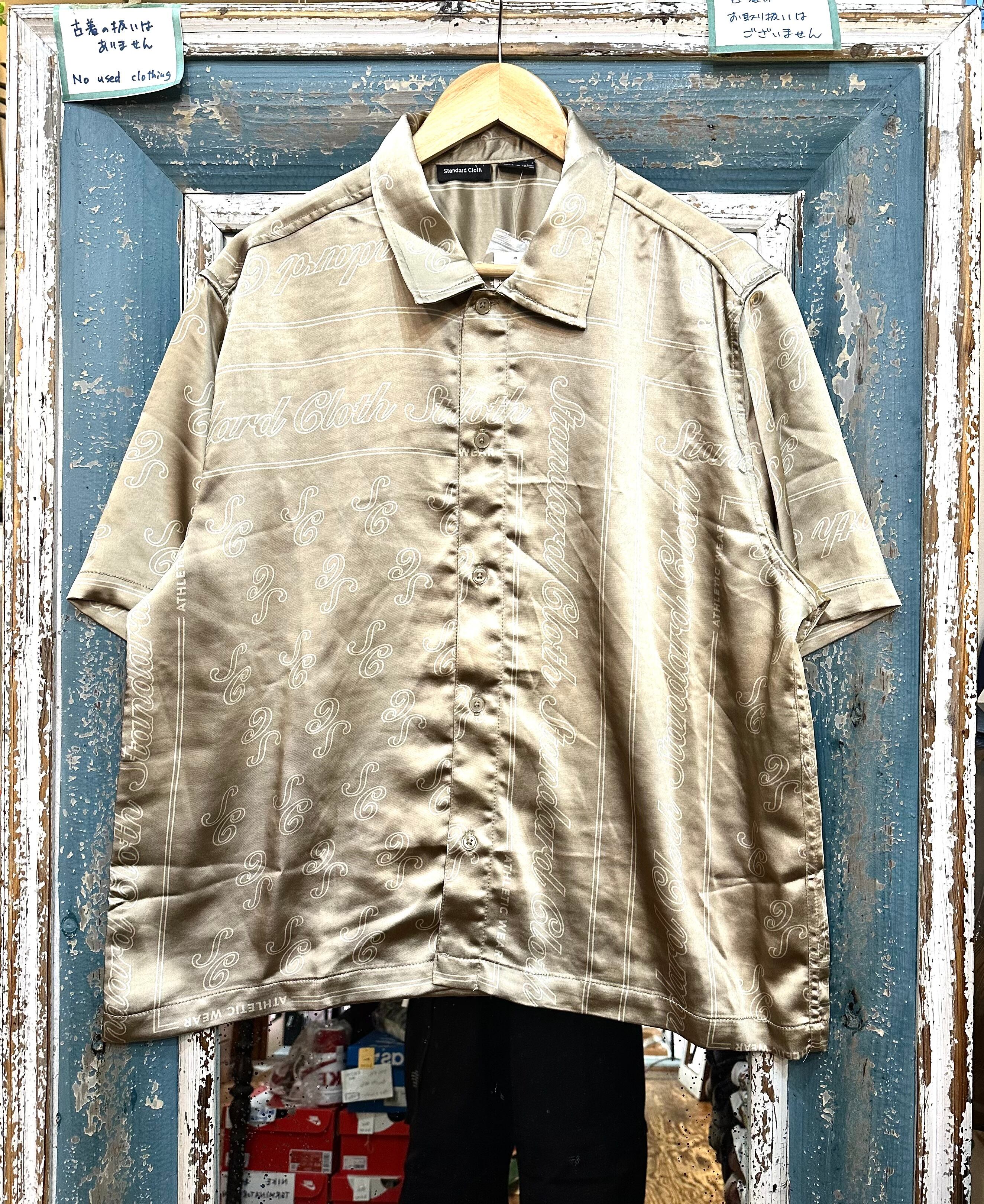 光沢のあるサテン地に柄の入った半袖シャツです。