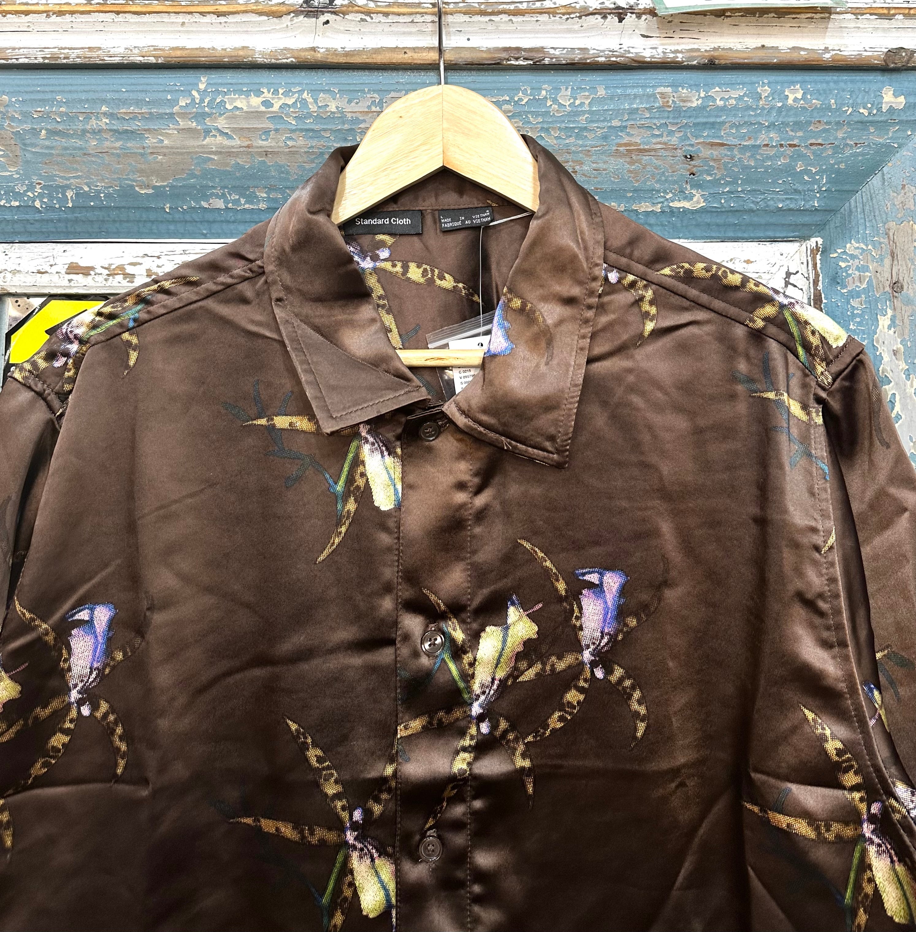 サテン 柄シャツ ショート丈