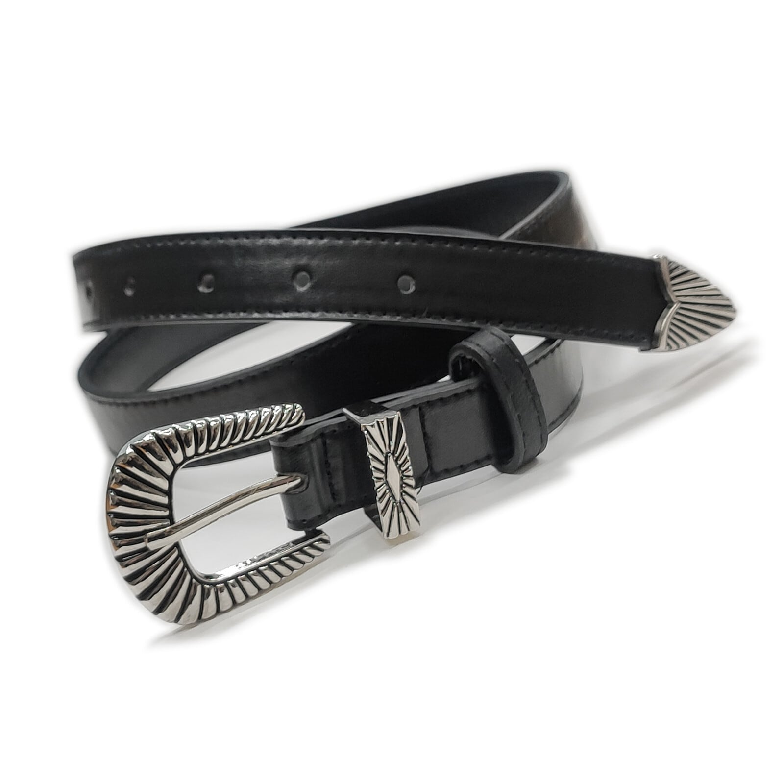 存在感のあるバックルとシルバーカラーのパーツが目を引く3点尾錠が美しいウエスタンバックルベルトシリーズ。