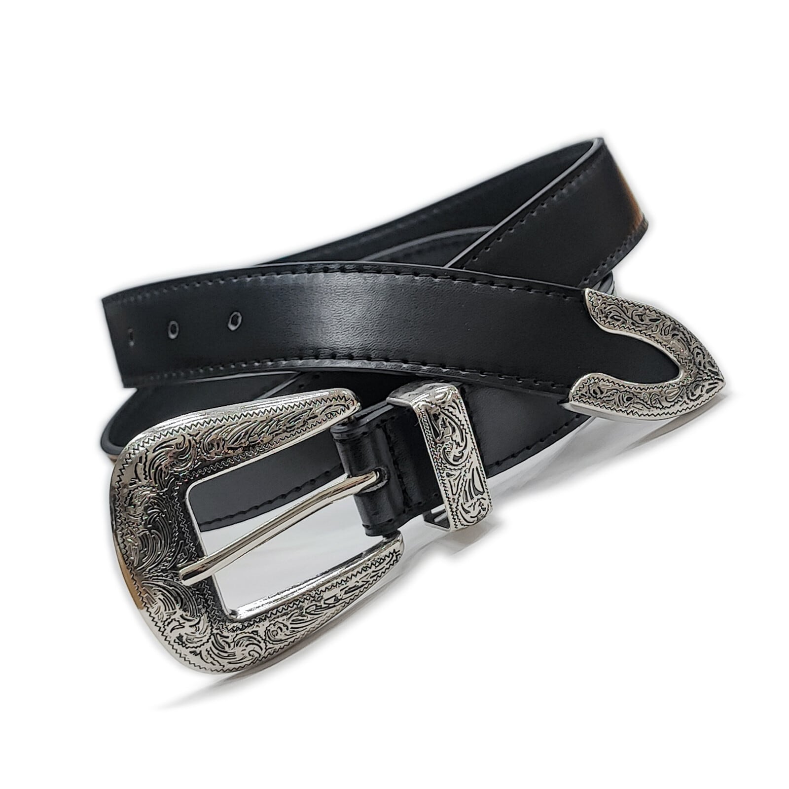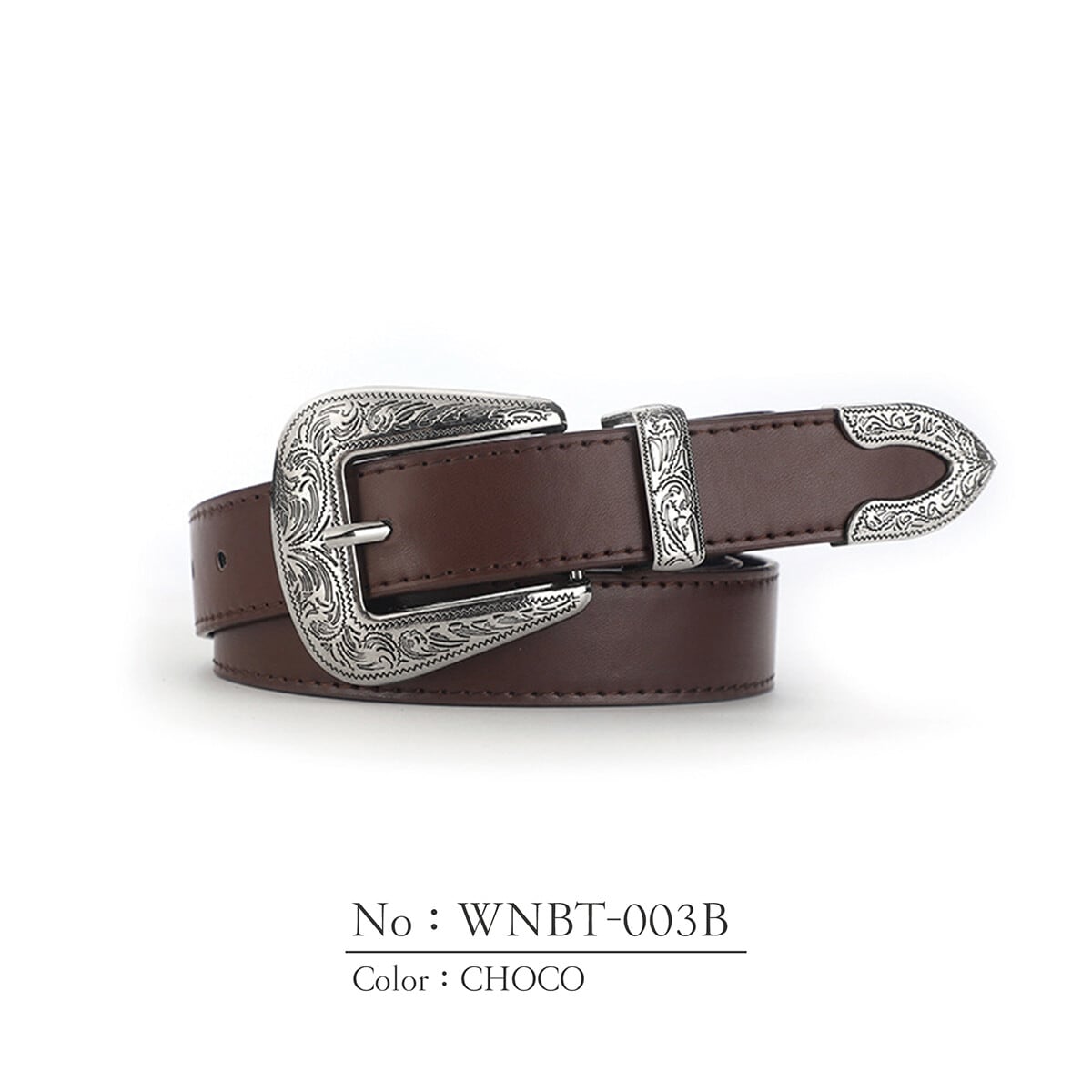 存在感のある大きめのバックルとシルバーカラーのパーツが目を引く3点尾錠が美しいウエスタンバックルベルトシリーズ。