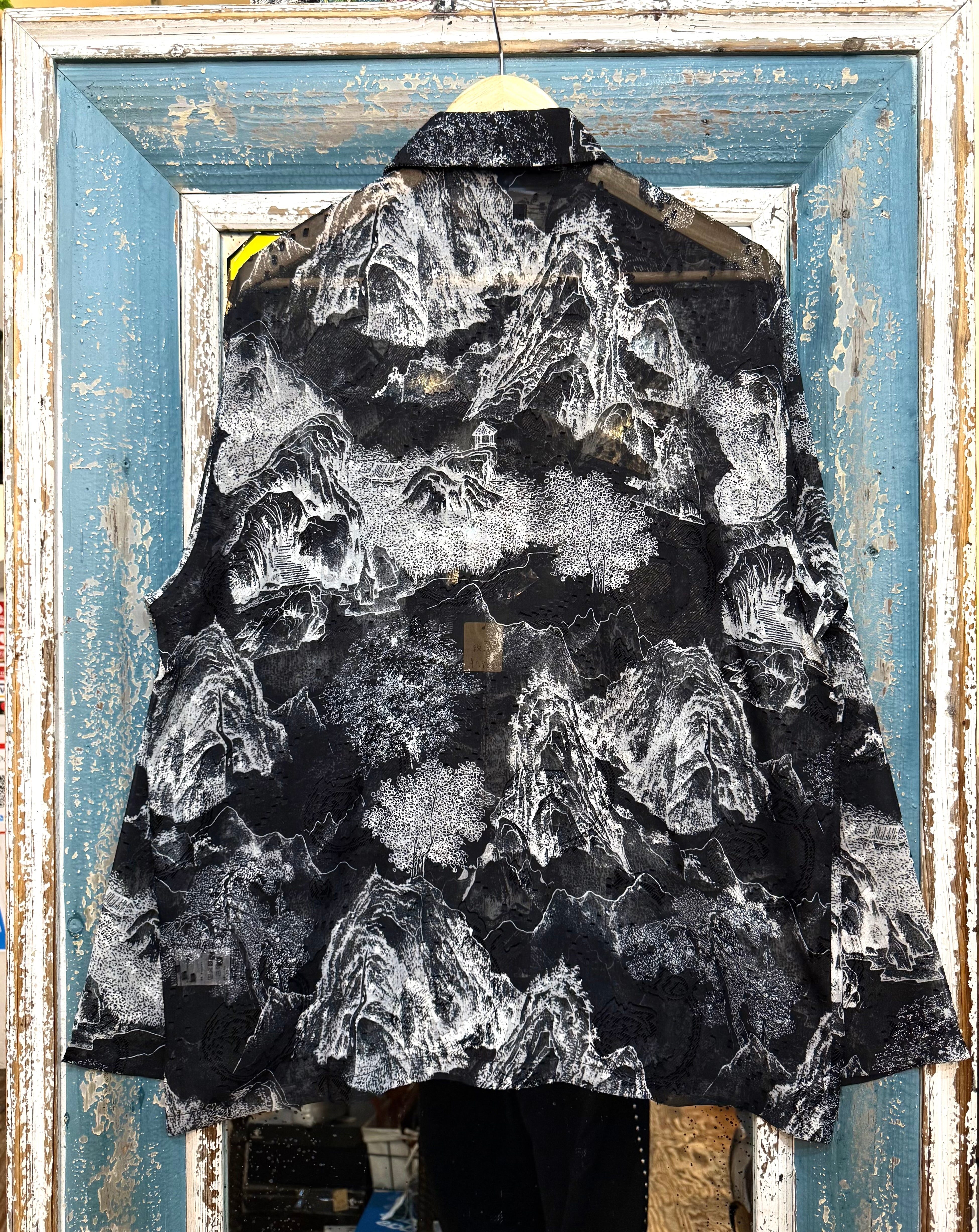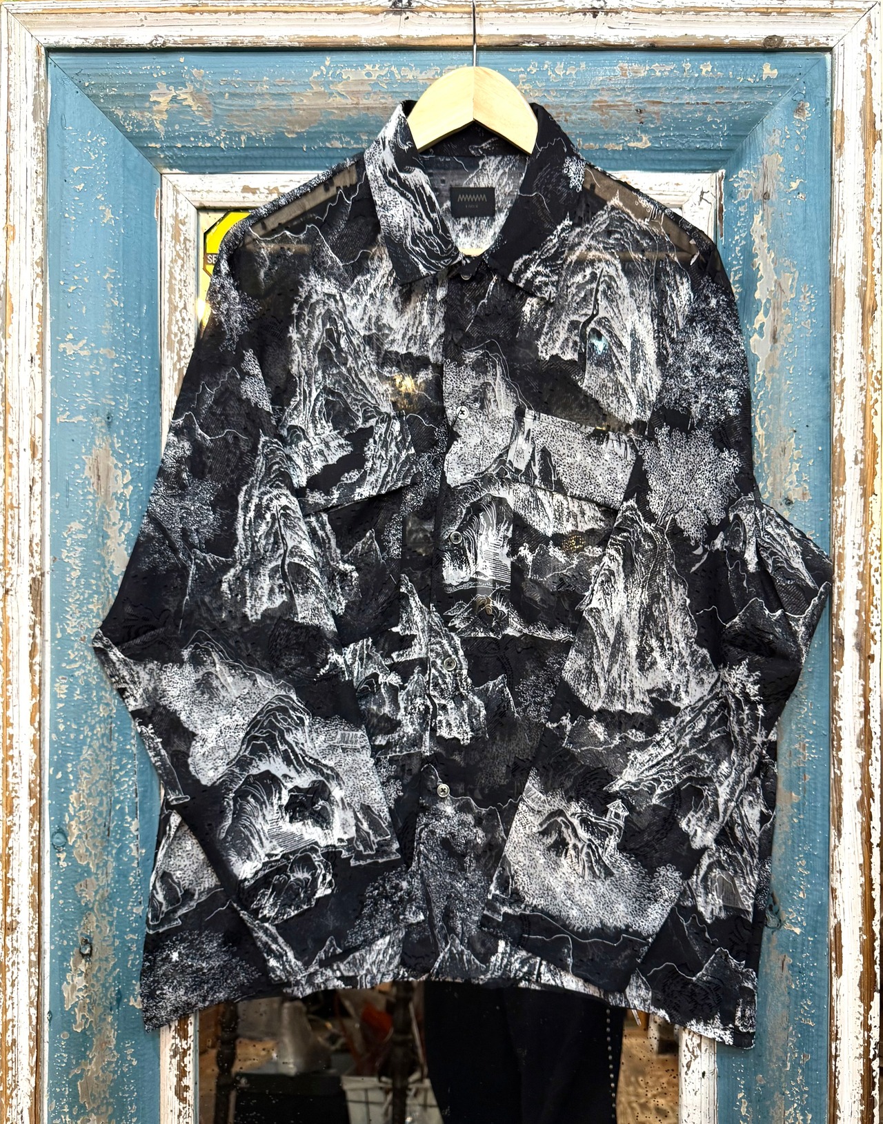 トレンドのシアー素材を使用したランドスケープ柄シャツ。